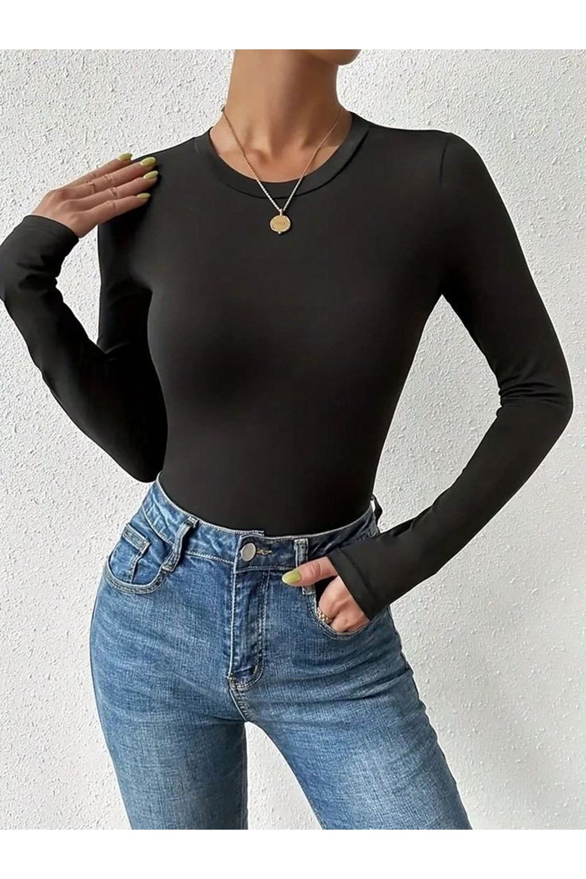 Kadın Uzun Kollu Bisiklet Yaka Süprem Bluz