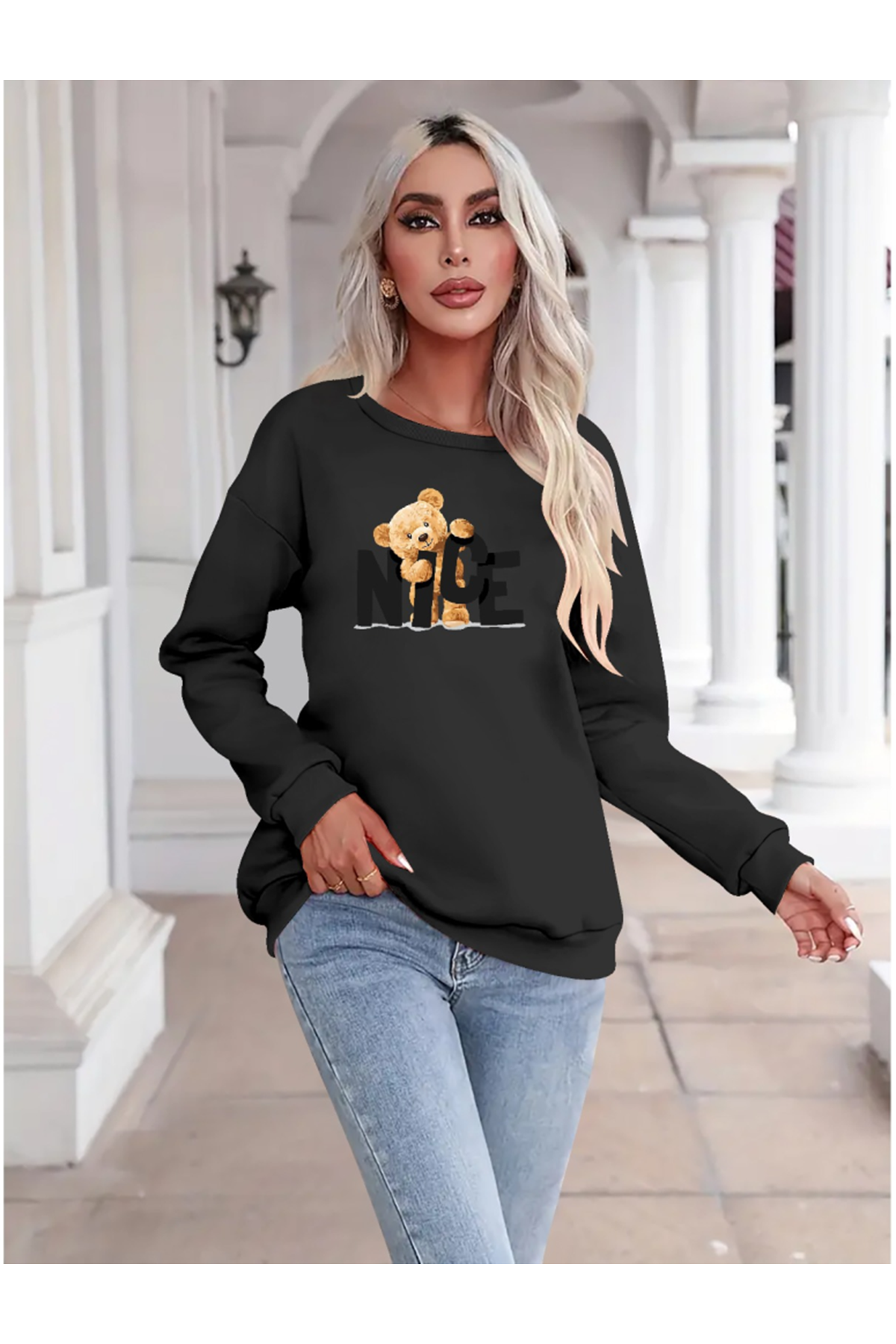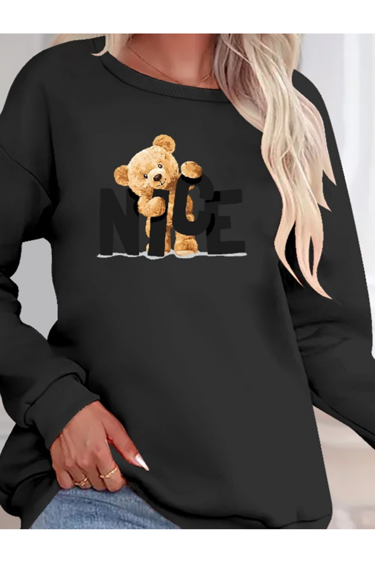 Kadın Uzun Kollu Bisiklet Yaka Viskon Iki Iplik Bluz