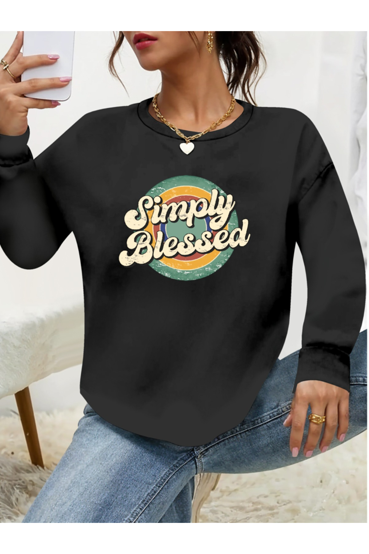 Kadın Uzun Kollu Bisiklet Yaka Viskon Iki Iplik Bluz