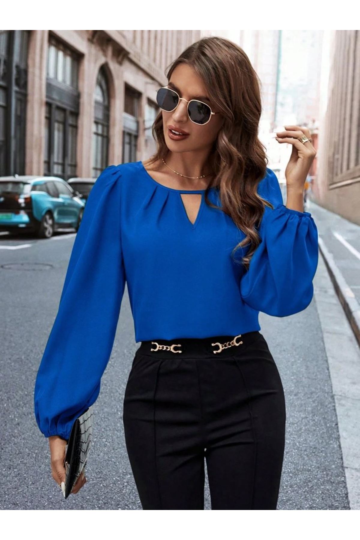 Kadın Uzun Kollu Damla Detaylı Ithal Krep Bluz