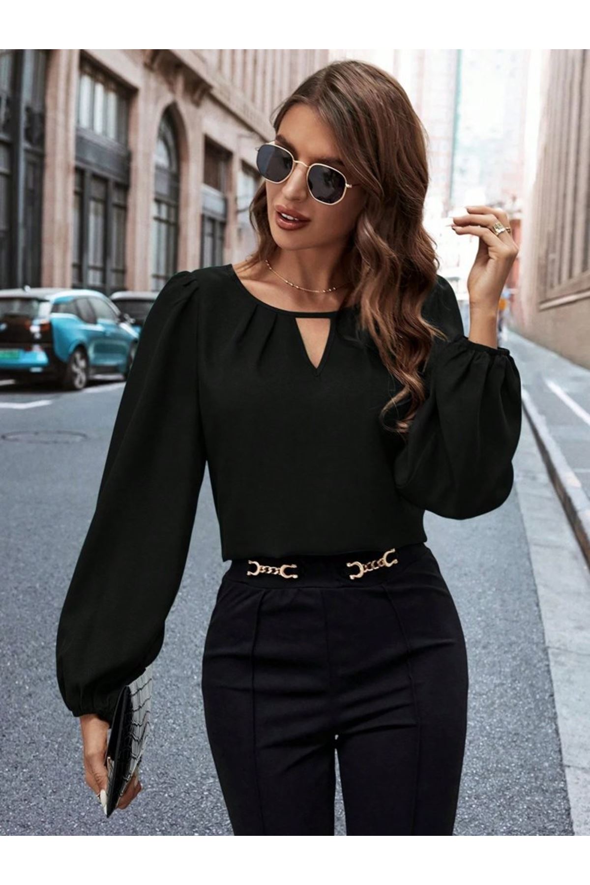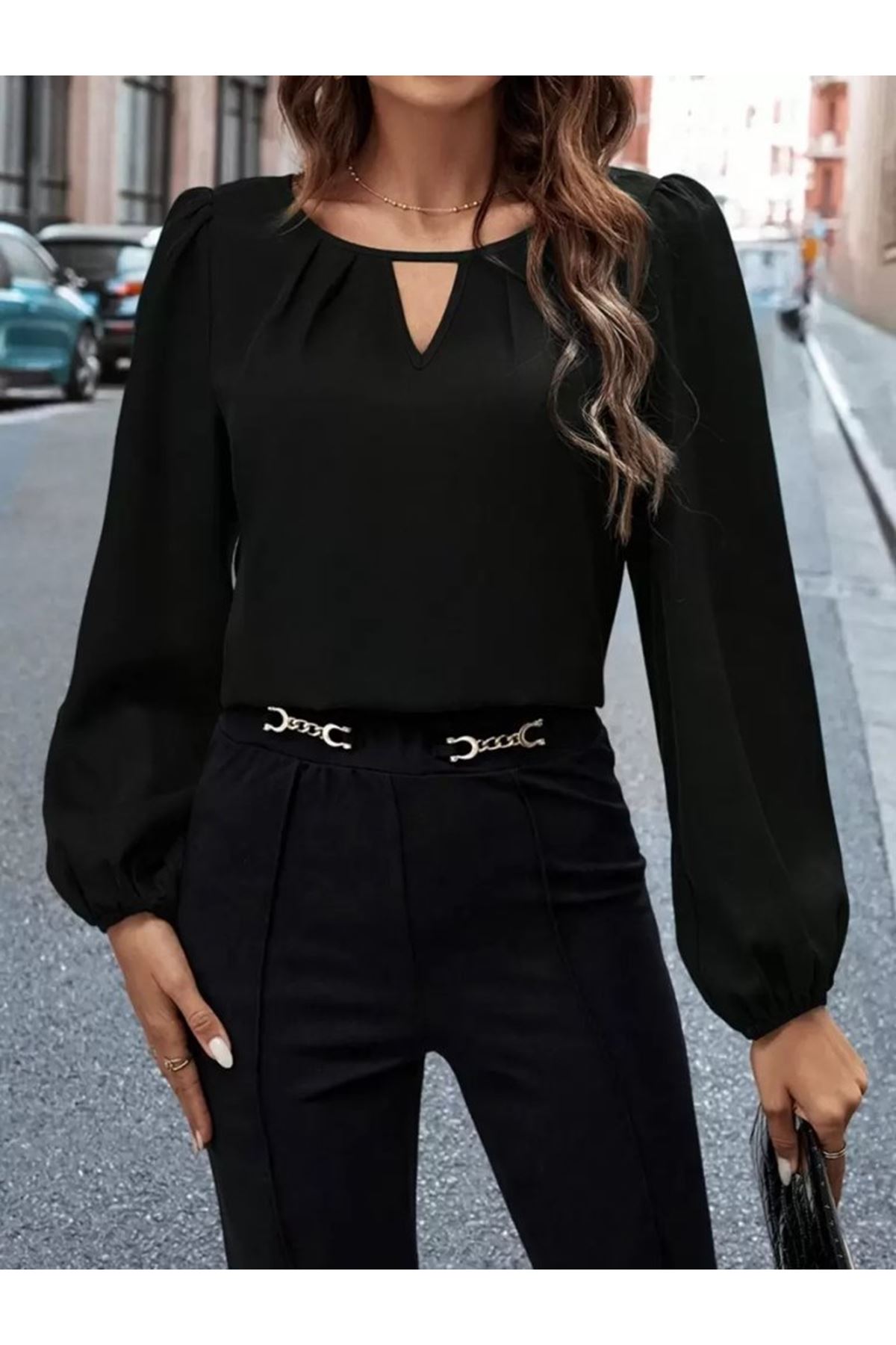 Kadın Uzun Kollu Damla Detaylı Ithal Krep Bluz