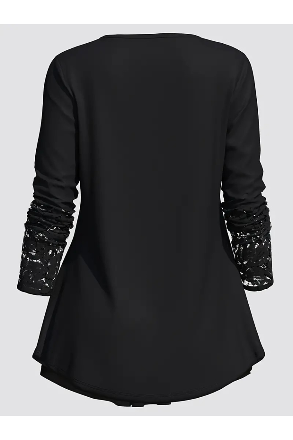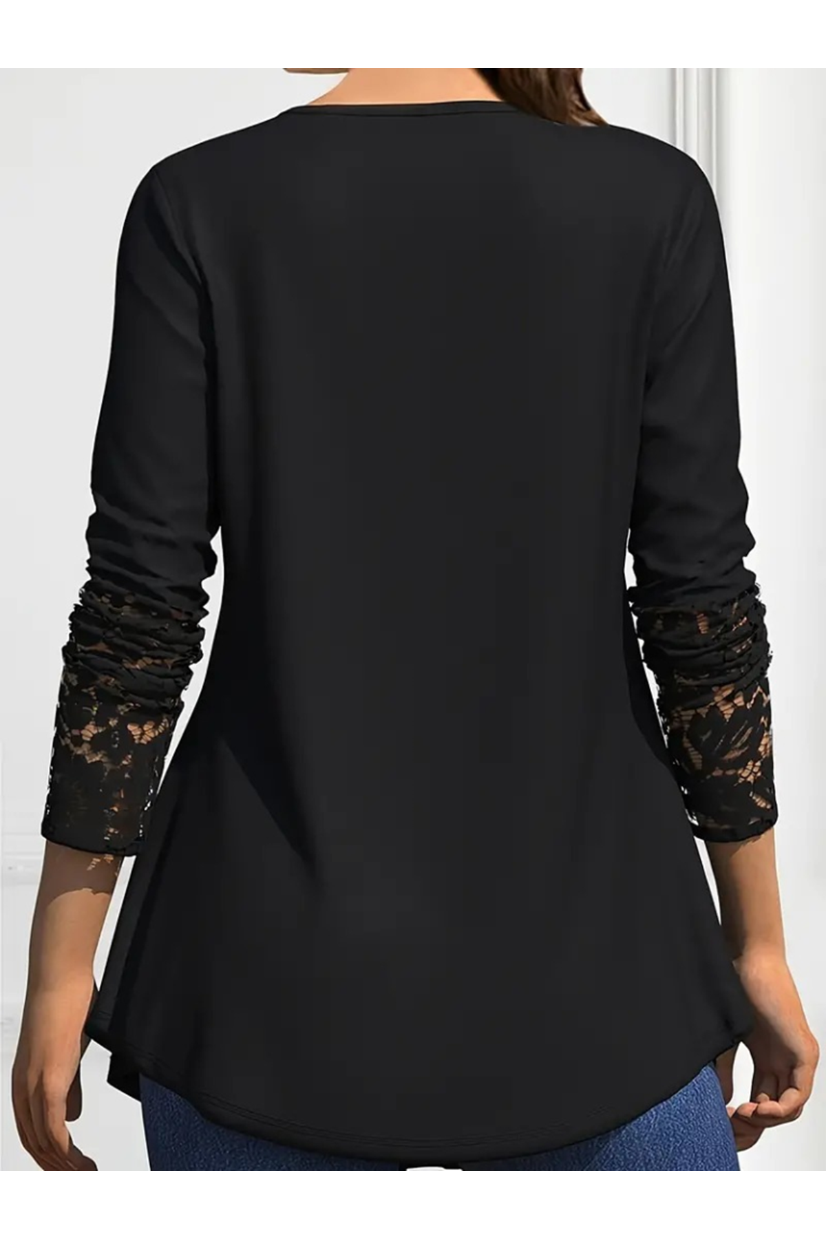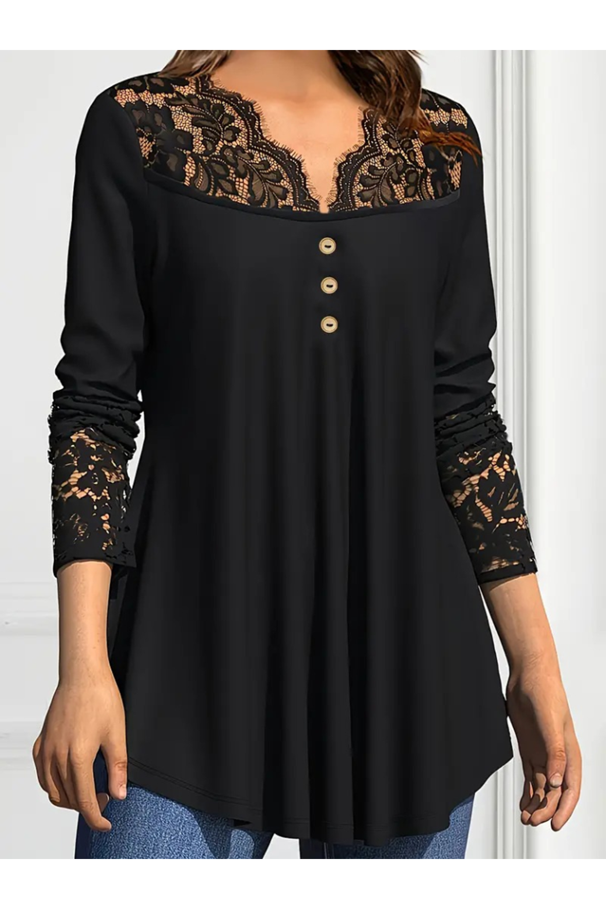 Kadın Uzun Kollu Dantel Detaylı Düğmeli Viskon Bluz