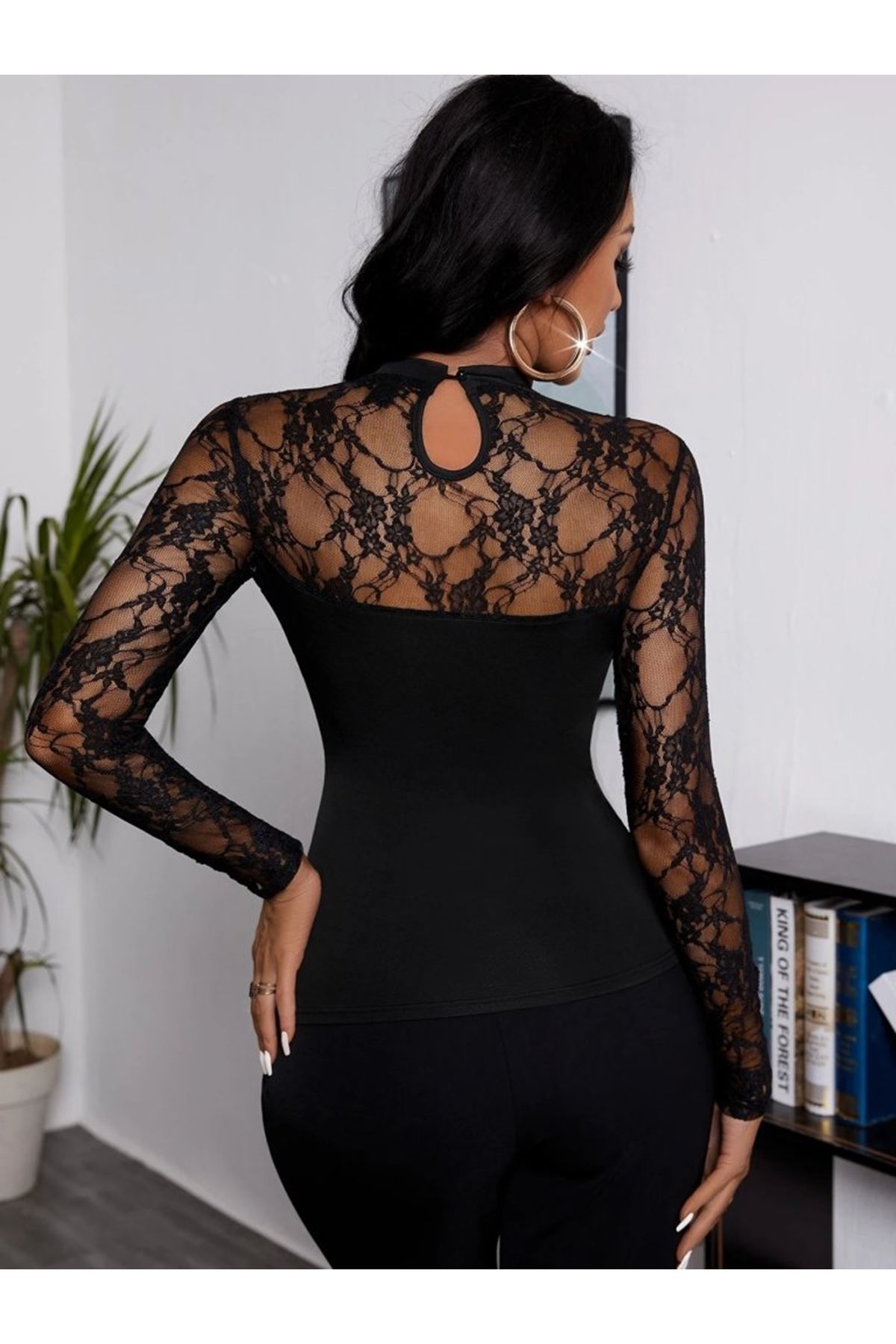 Kadın Uzun Kollu Dantel Detaylı Viskon Bluz