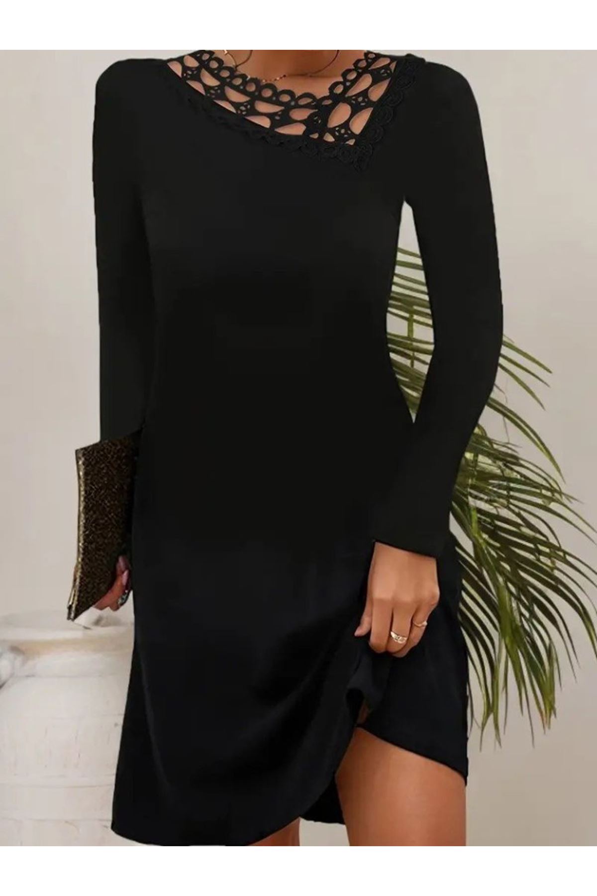 Kadın Uzun Kollu Dantel Yaka Ithal Krep Mini Elbise