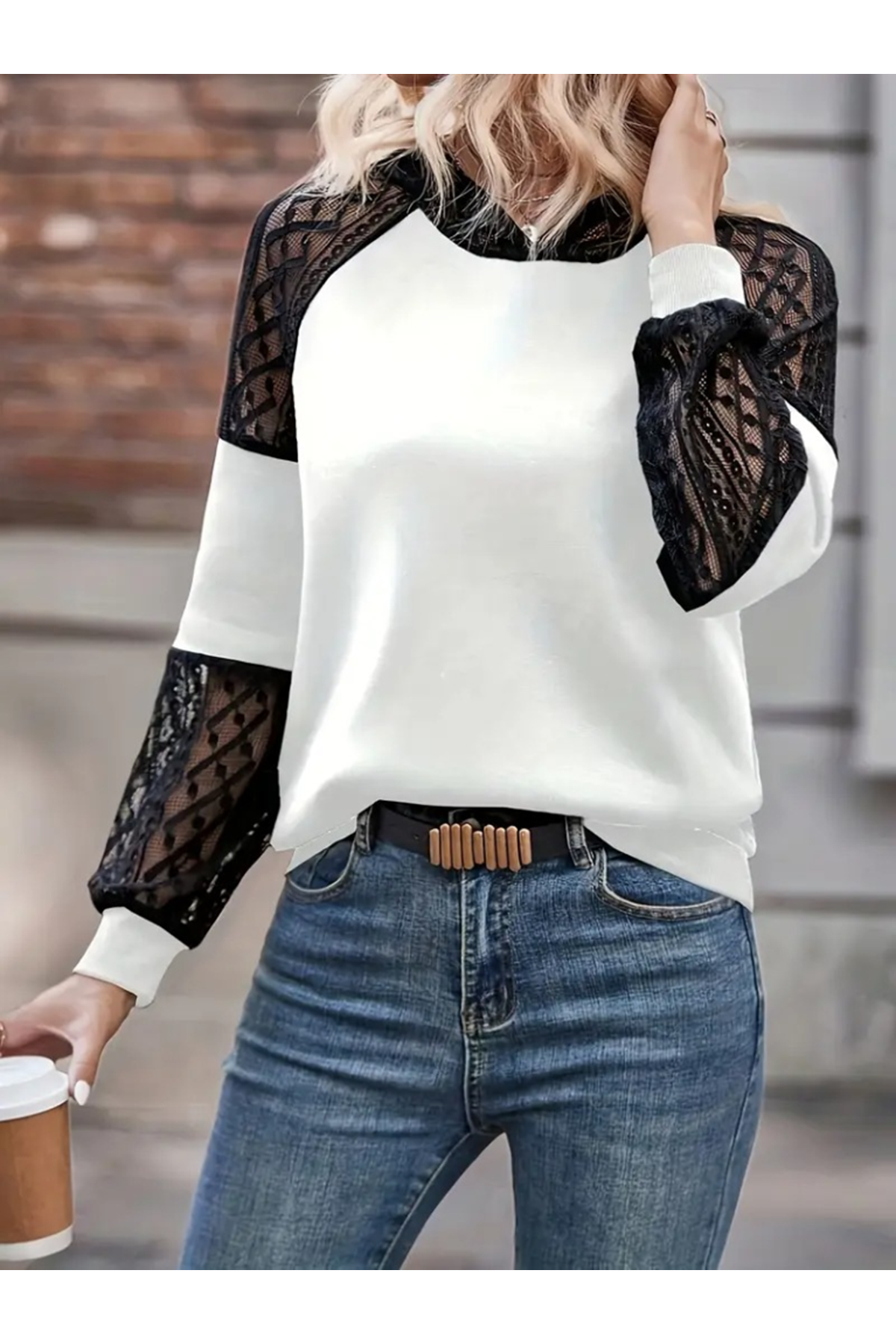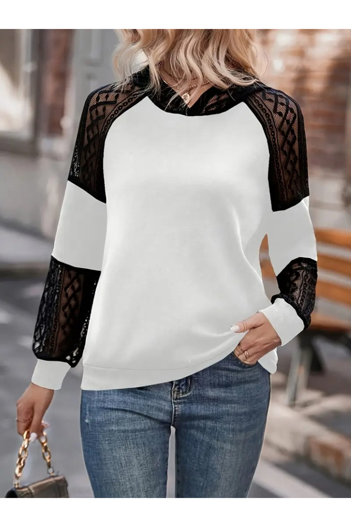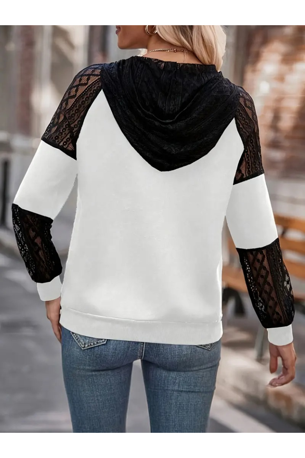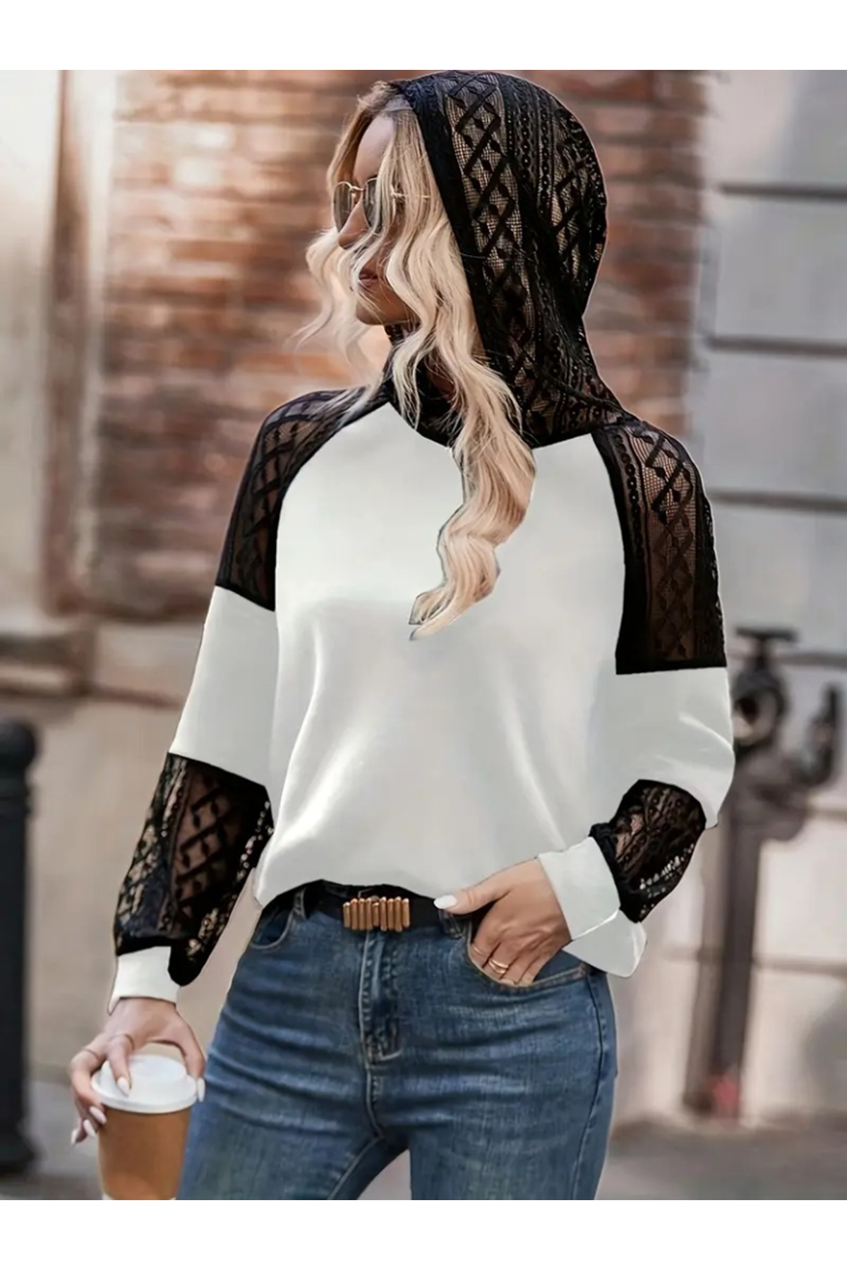 Kadın Uzun Kollu Dantelli Kapşonlu Viskon Iki Iplik Bluz