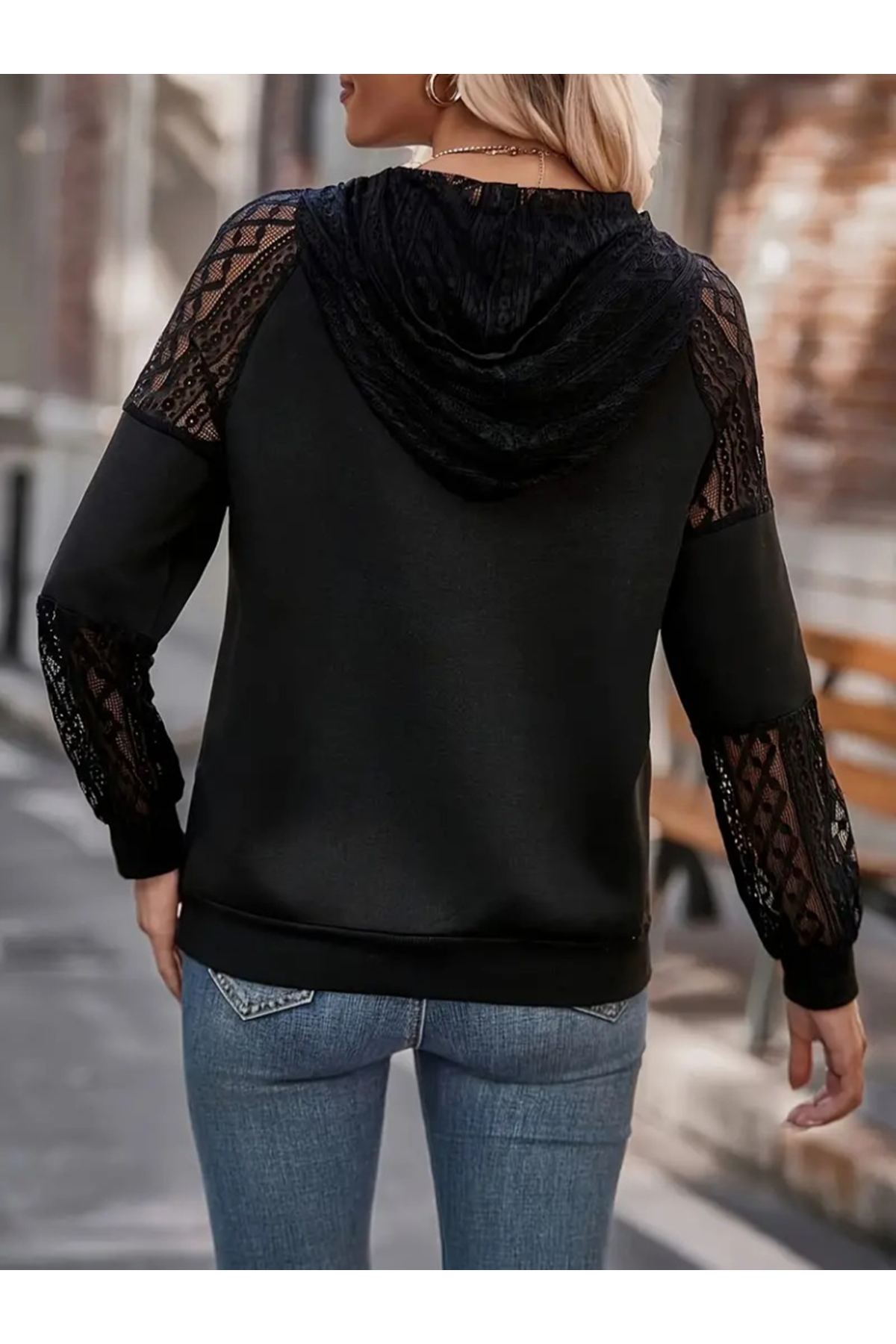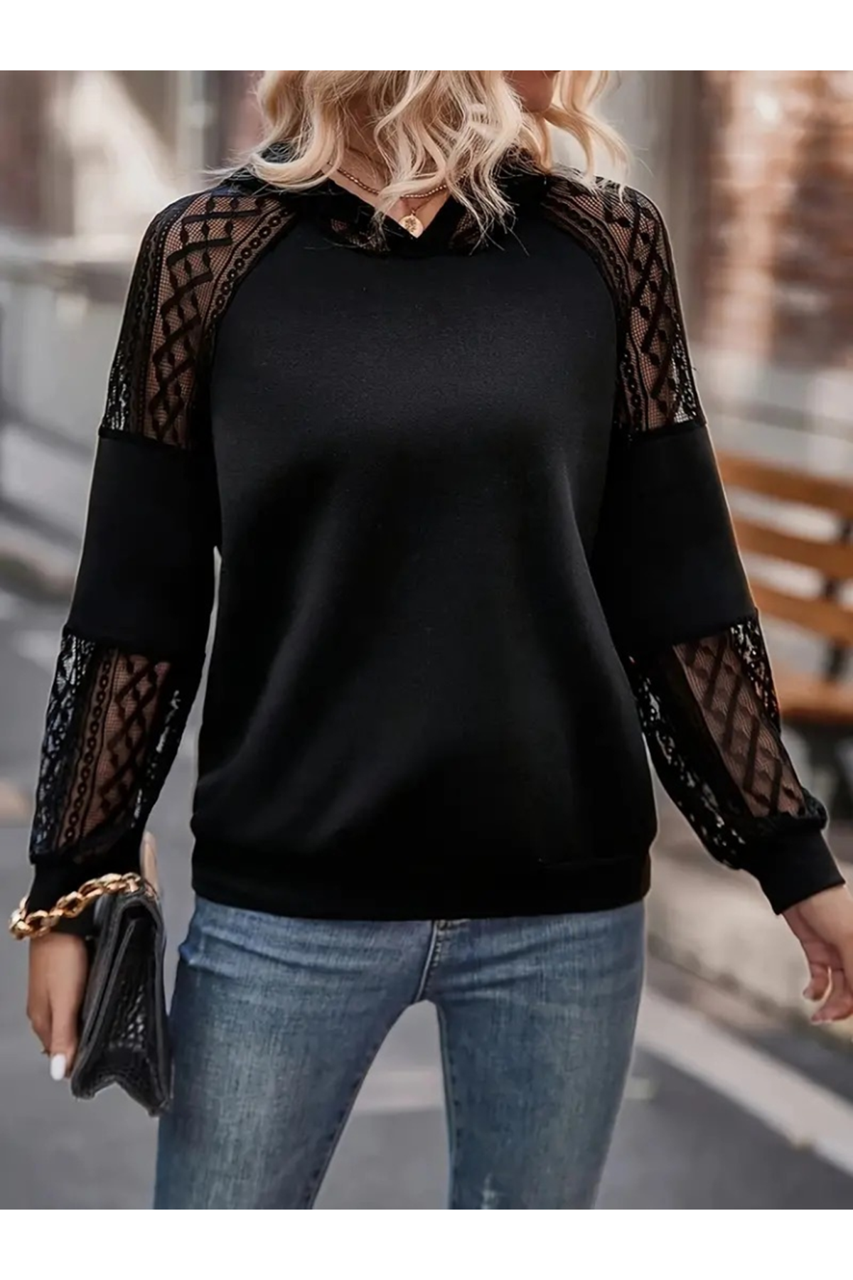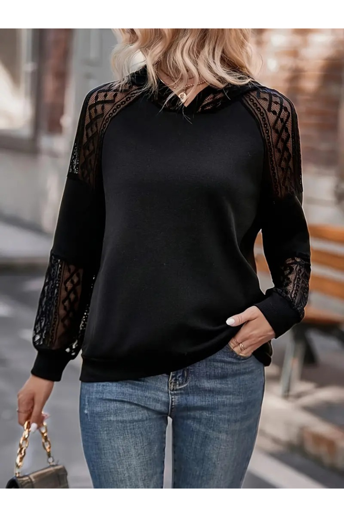 Kadın Uzun Kollu Dantelli Kapşonlu Viskon Iki Iplik Bluz