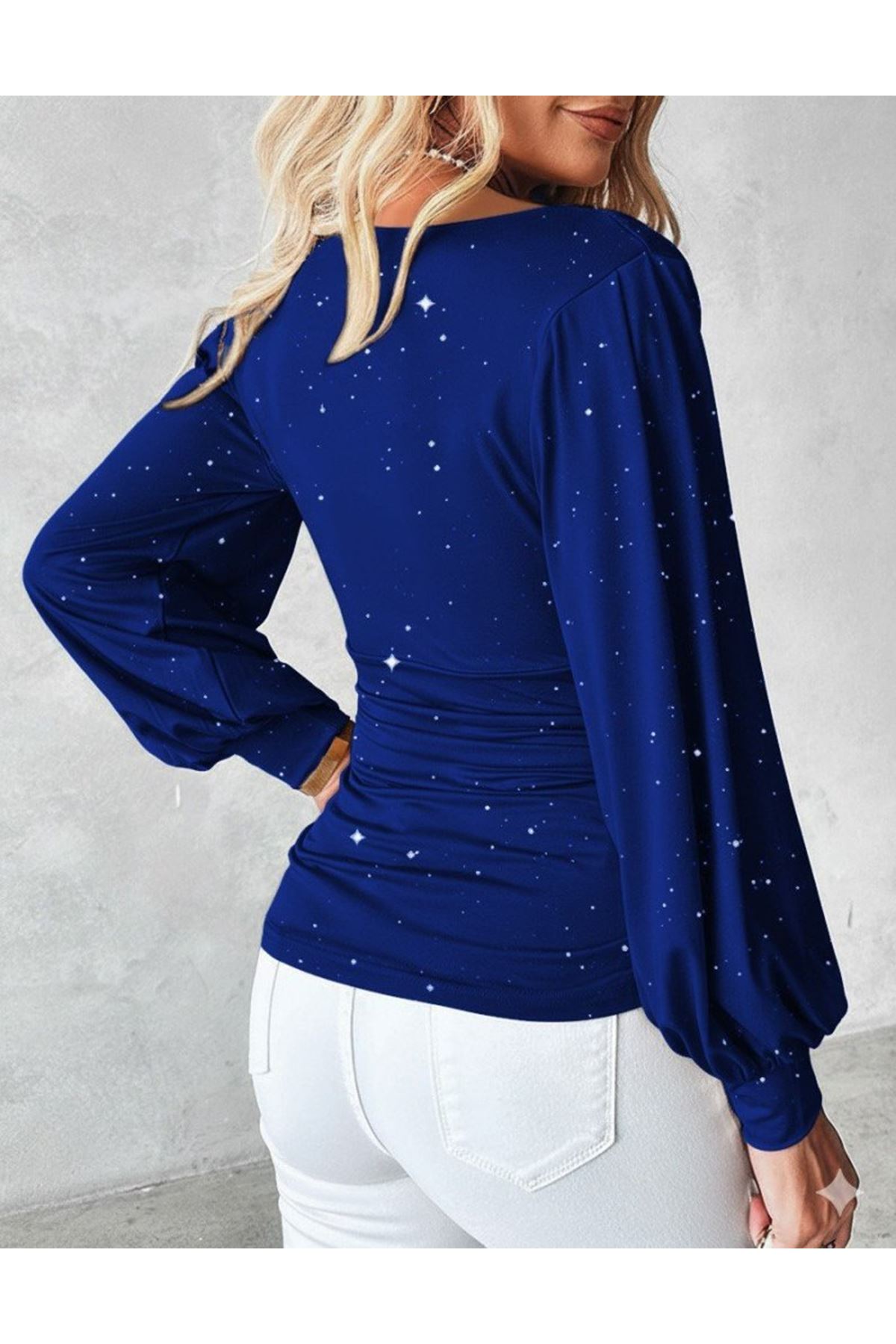 Kadın Uzun Kollu Degaje Yaka Taşlı Sandy Bluz
