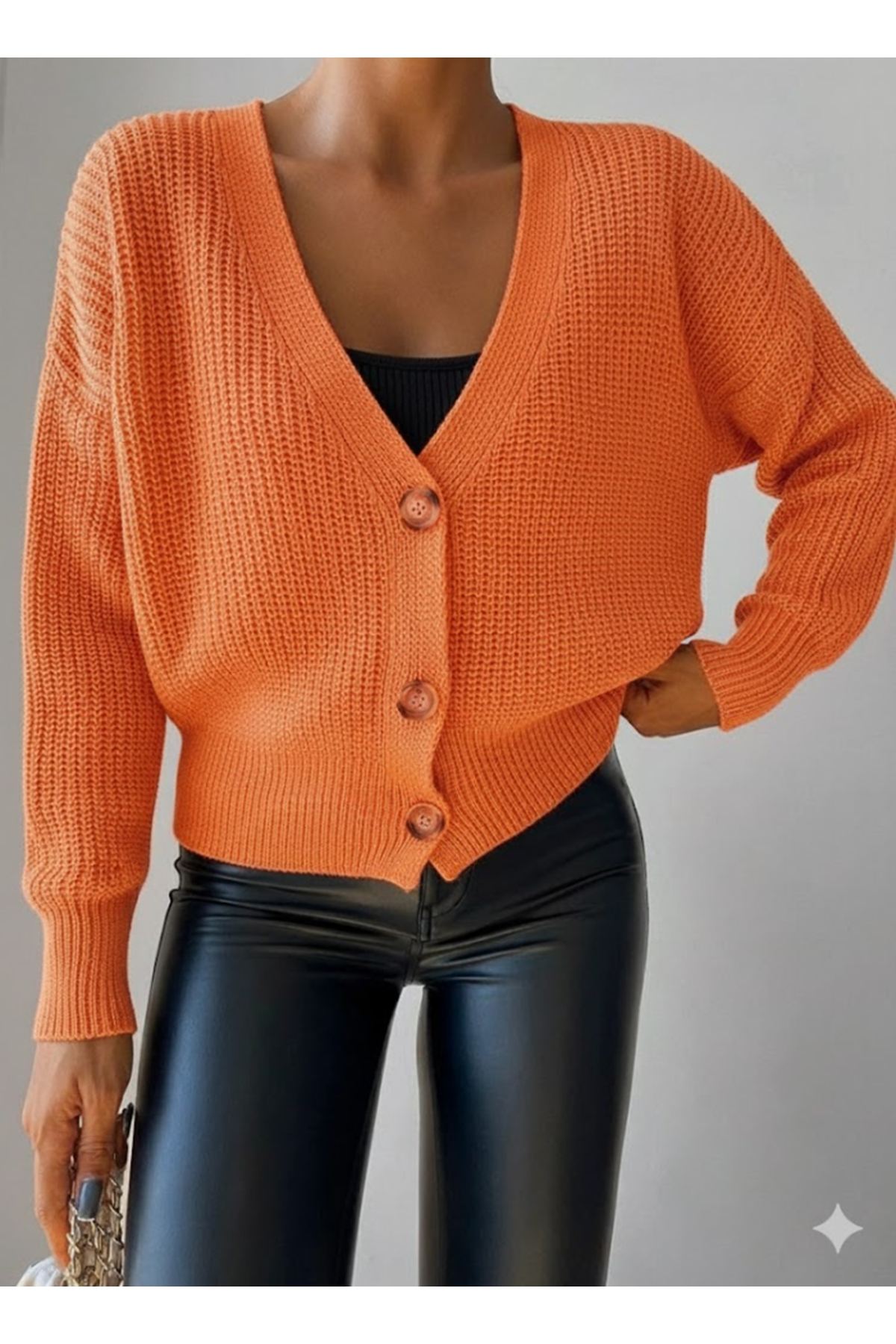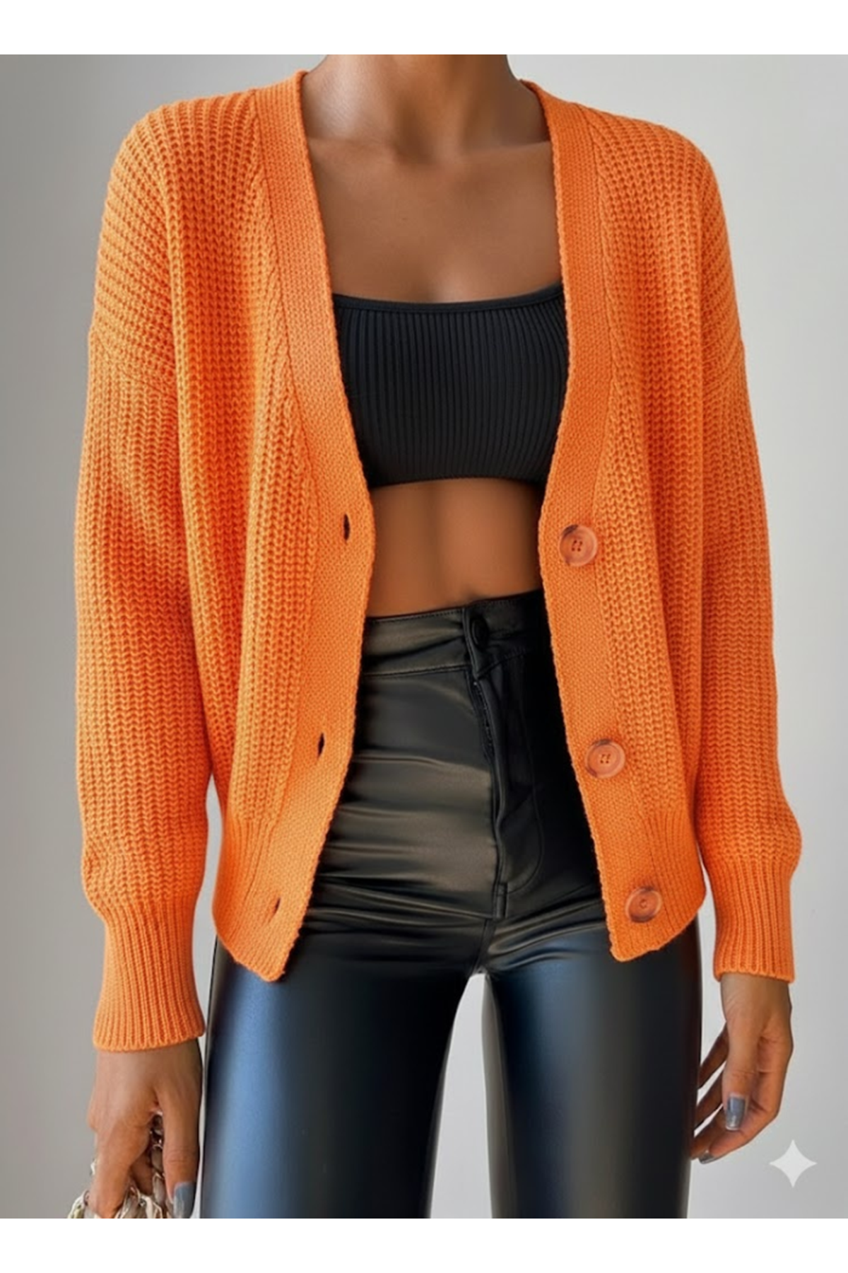 Kadın Uzun Kollu Düğme Detay Triko Bluz