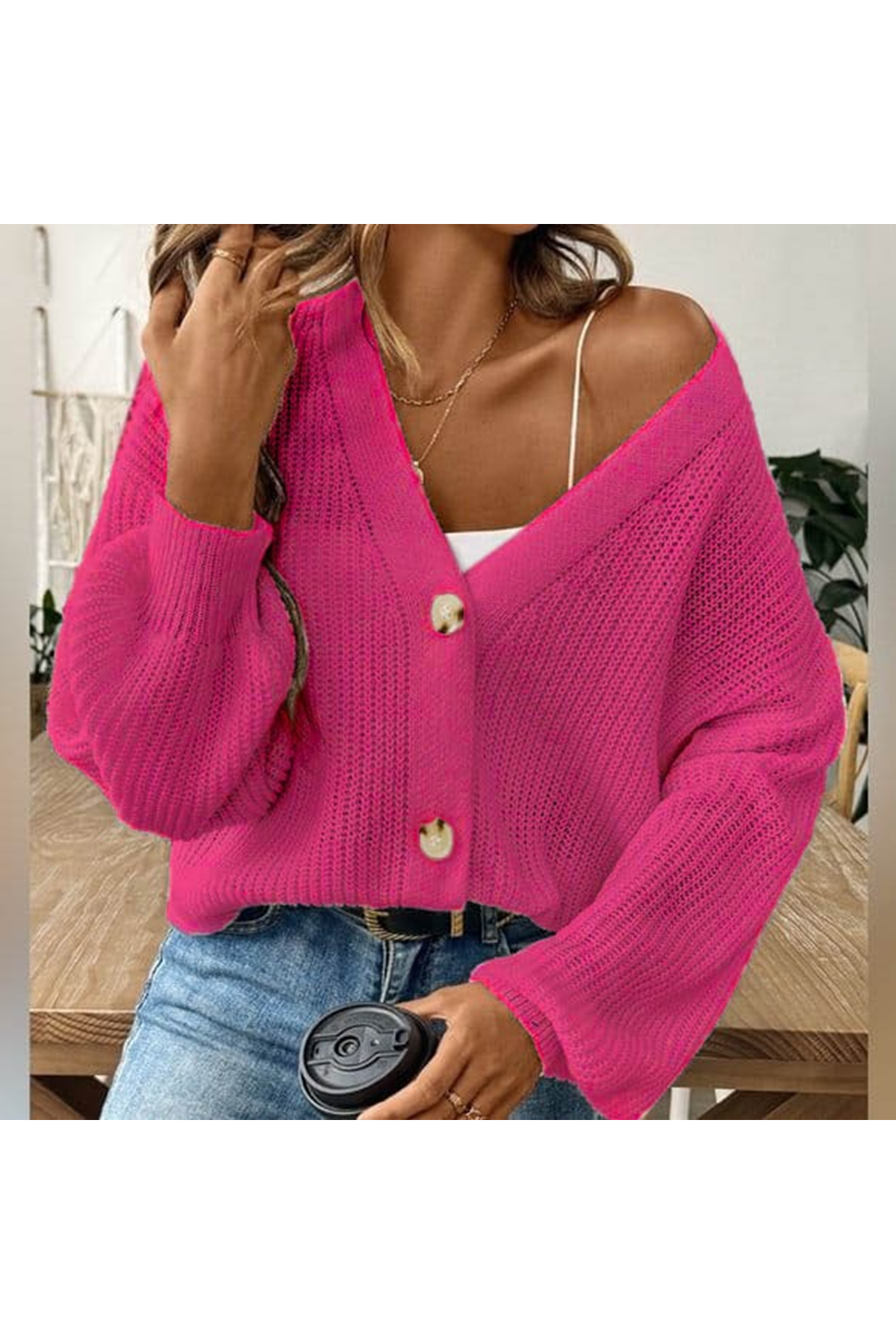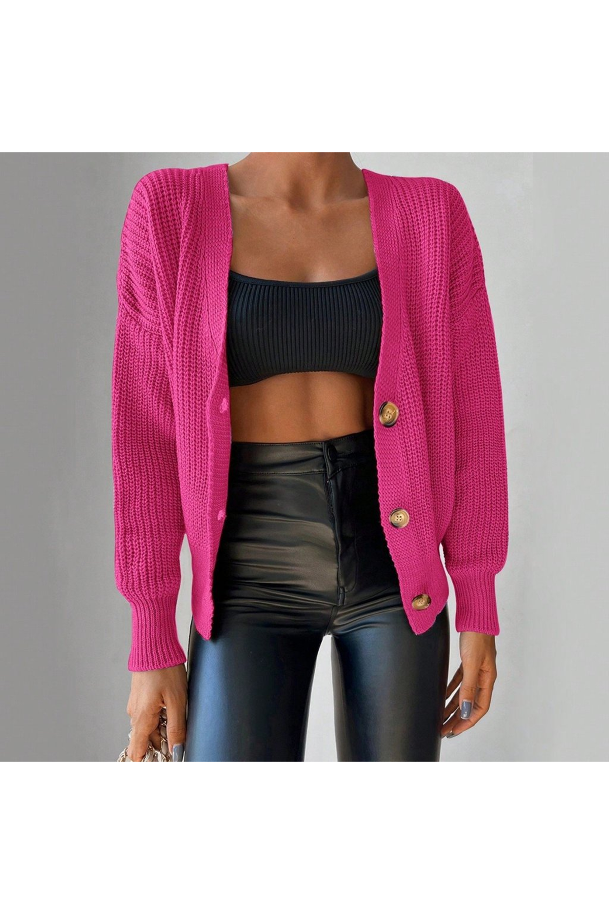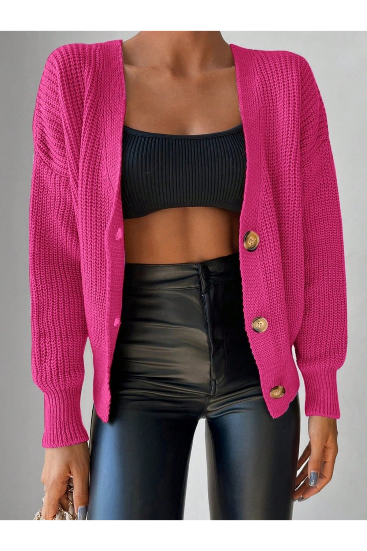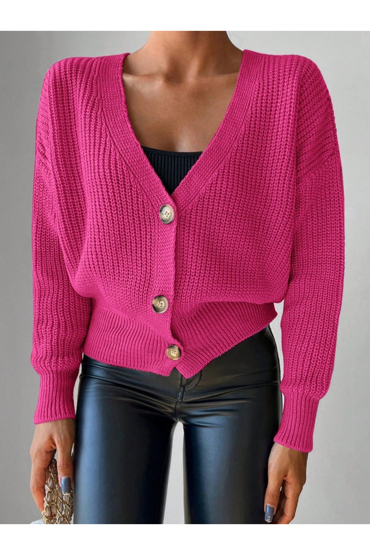 Kadın Uzun Kollu Düğme Detay Triko Bluz