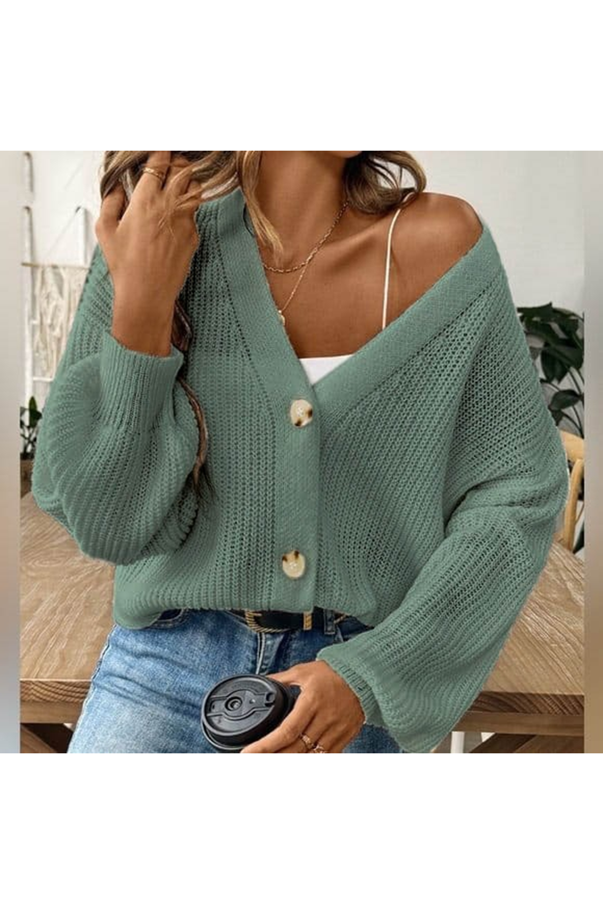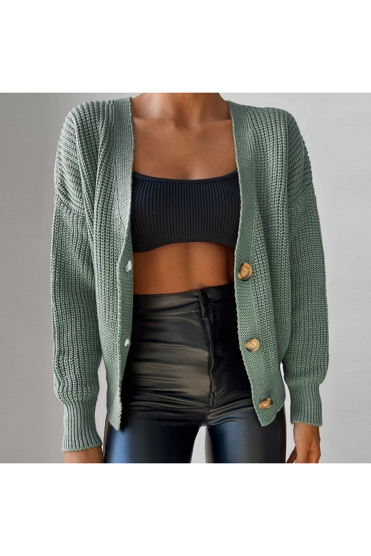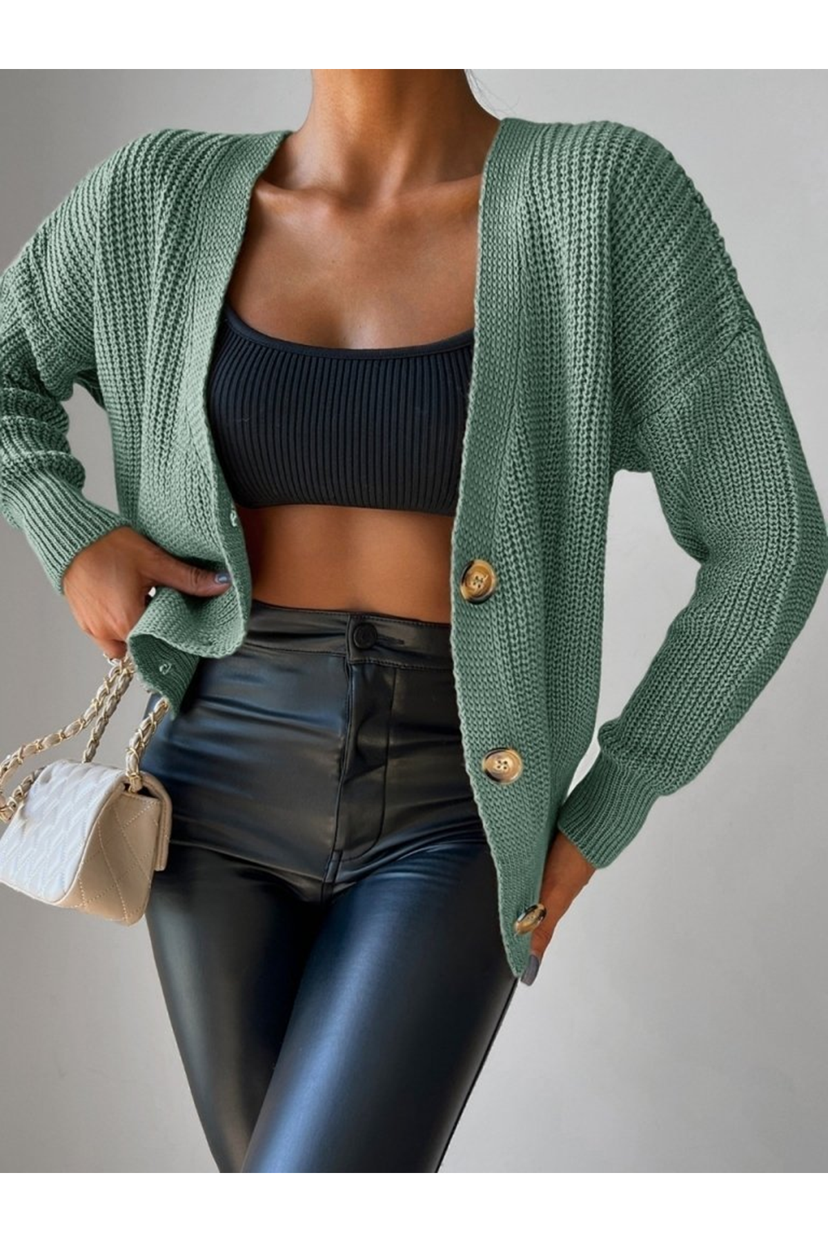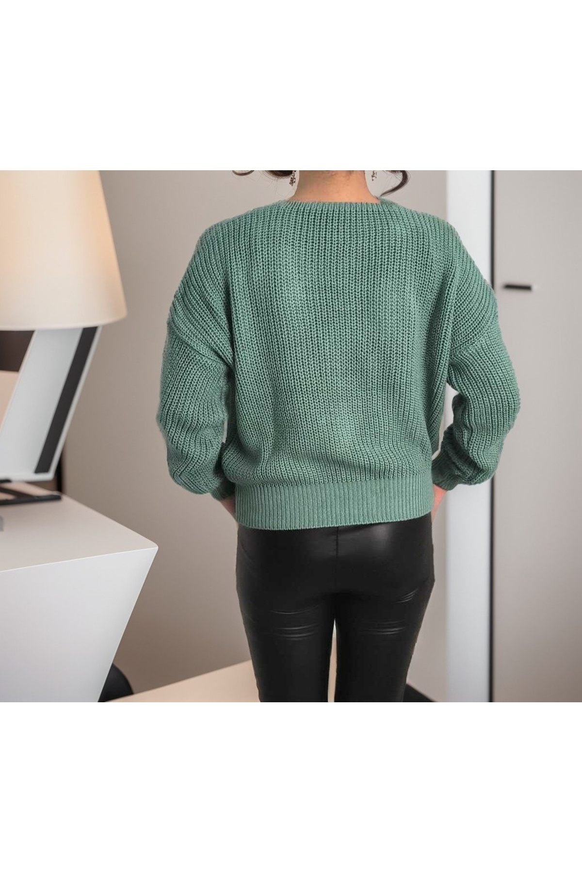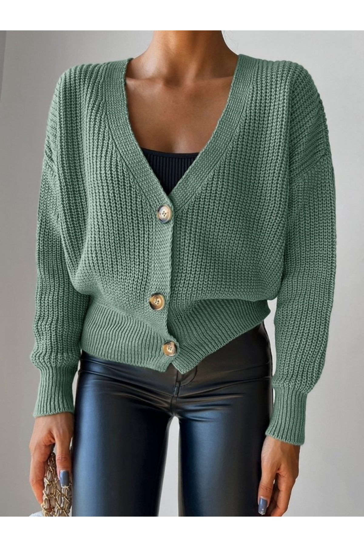 Kadın Uzun Kollu Düğme Detay Triko Bluz