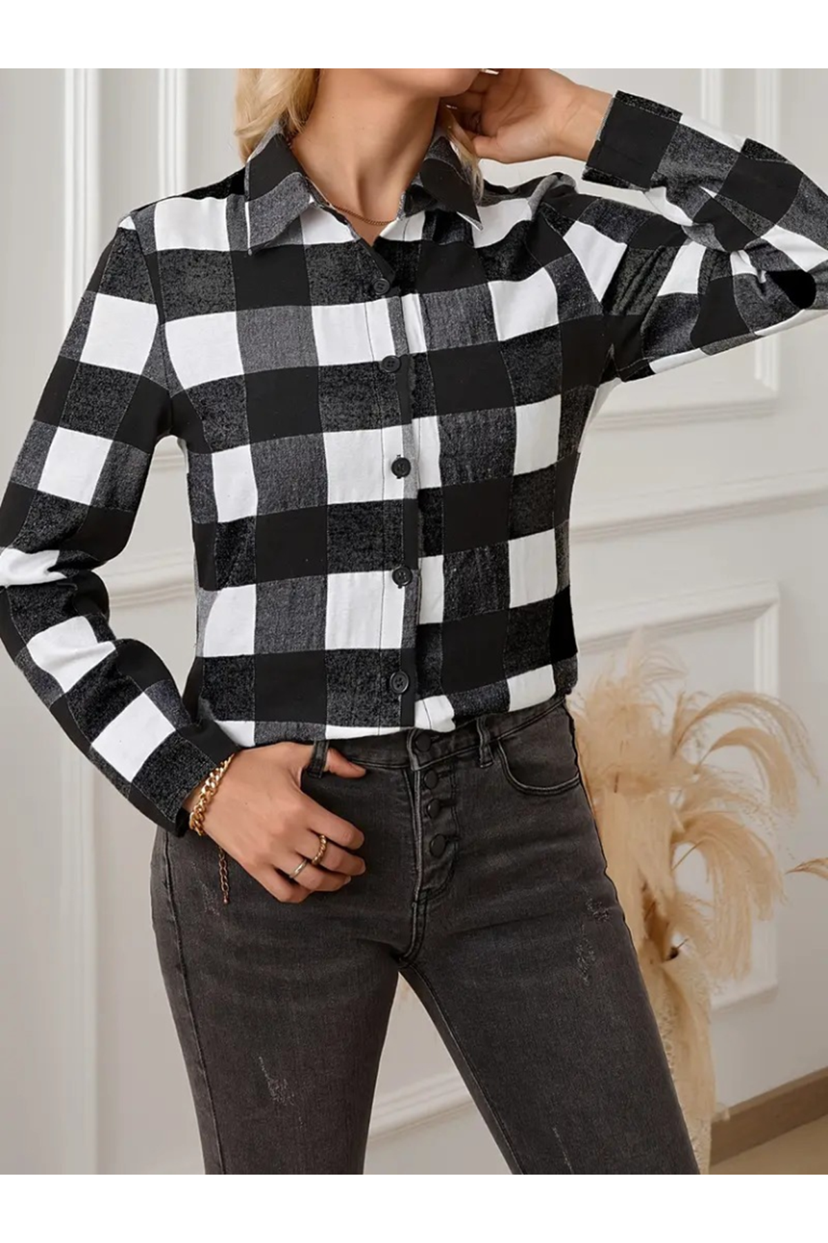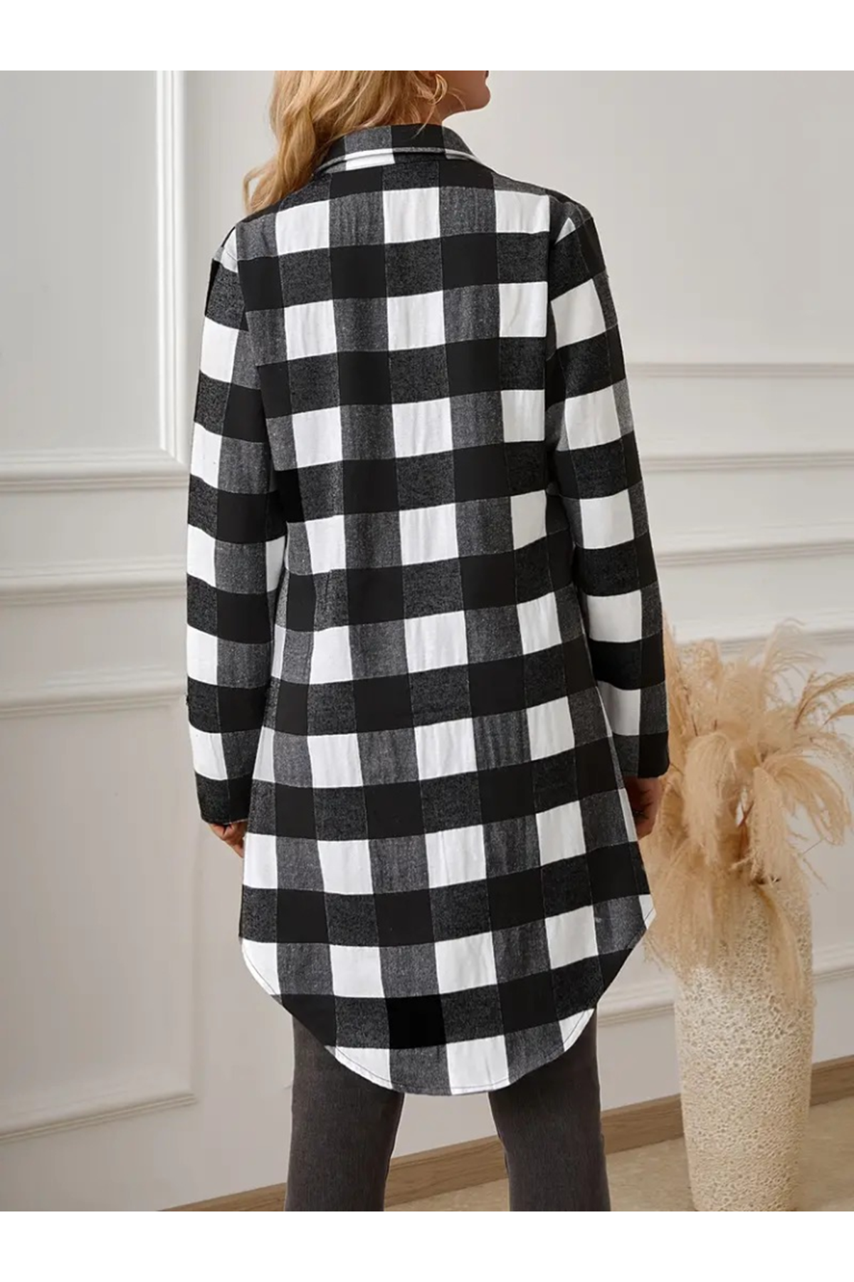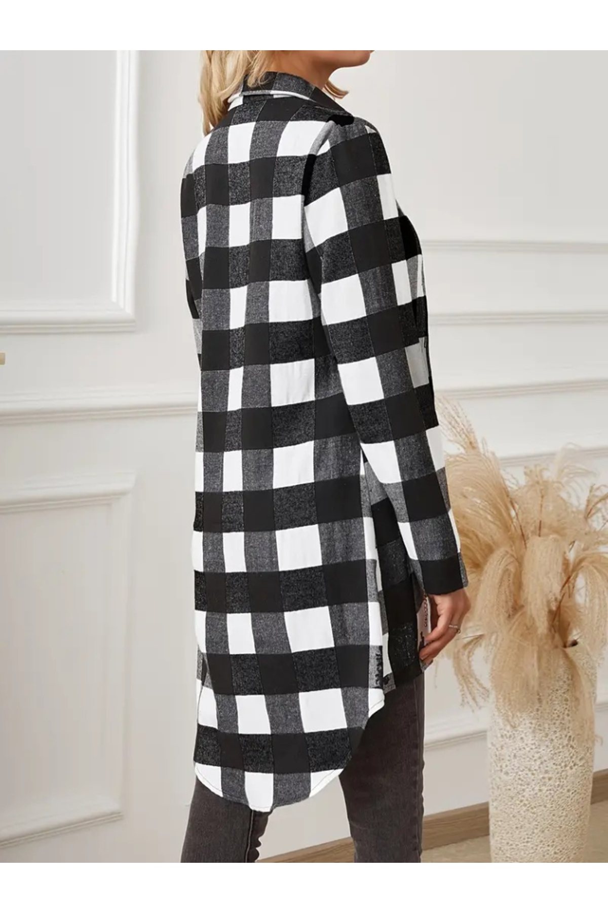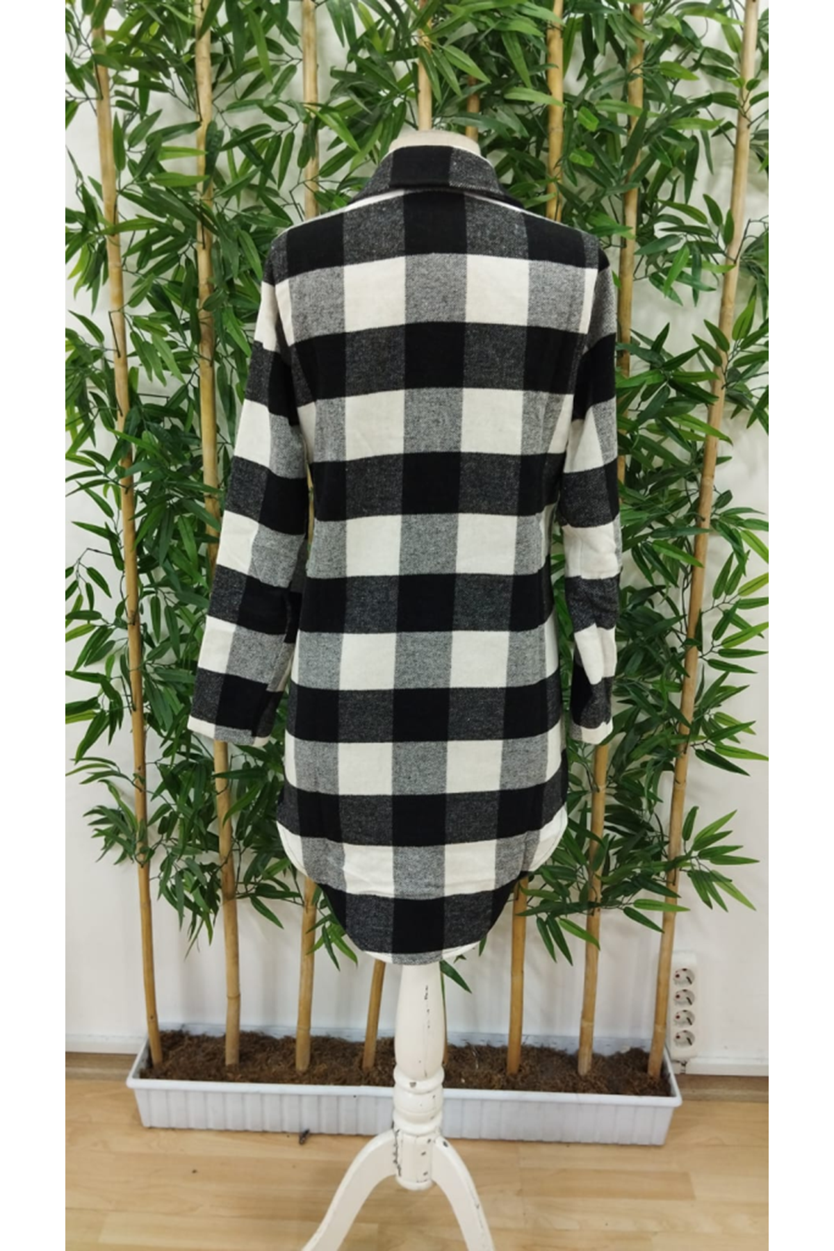 Kadın Uzun Kollu Ekoseli önden Düğmeli Dokuma Uzun Gömlek