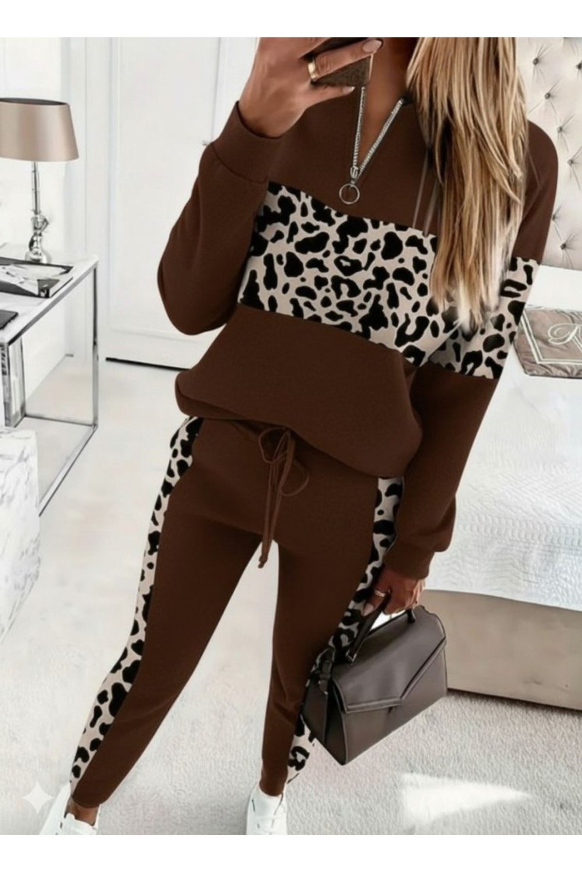 Kadın Uzun Kollu Fermuarlı Karışık Desenli Viskon Iki Iplik Bluz Ve Pantolon Ikili Takım