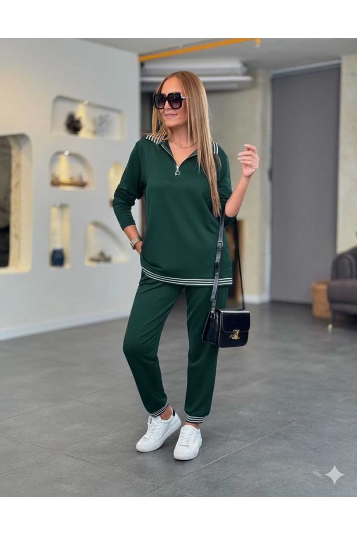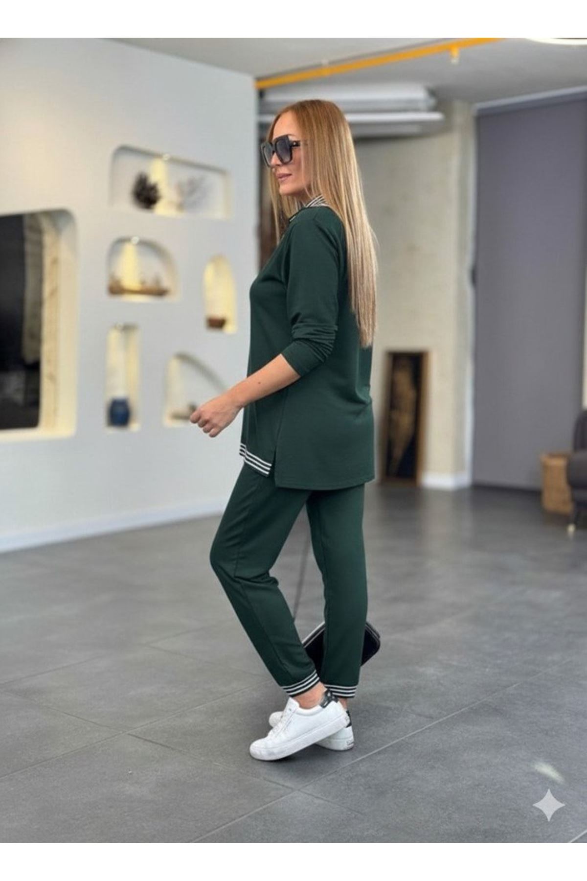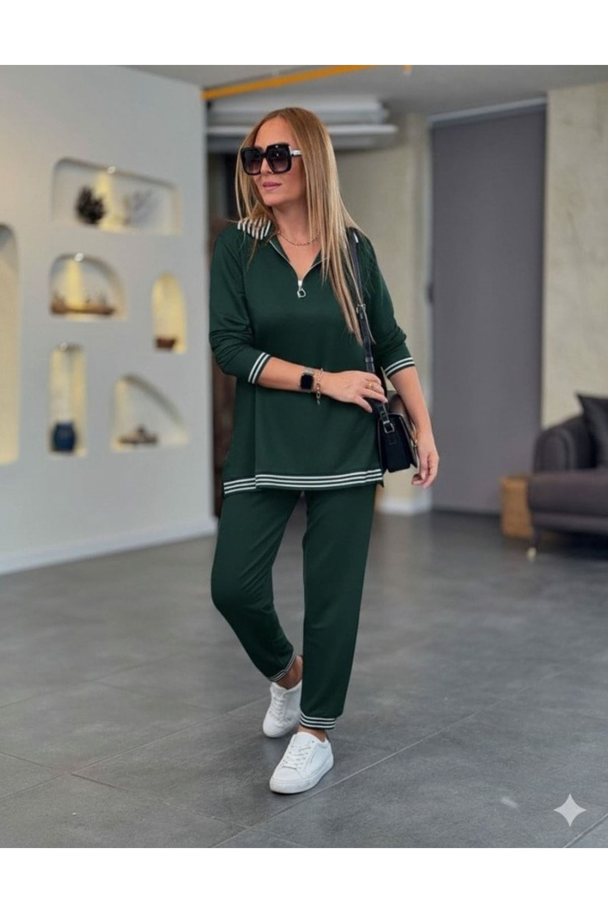 Kadın Uzun Kollu Fermuarlı şerit Detay Desenli Alt üst Ikili Viskon Iki Iplik Takım