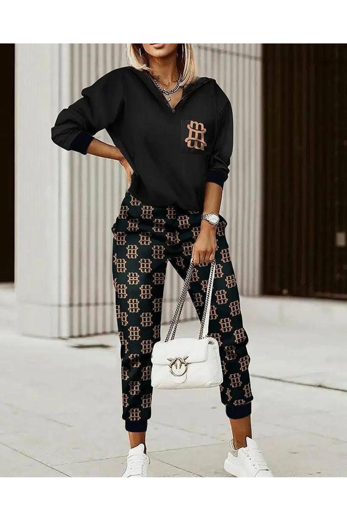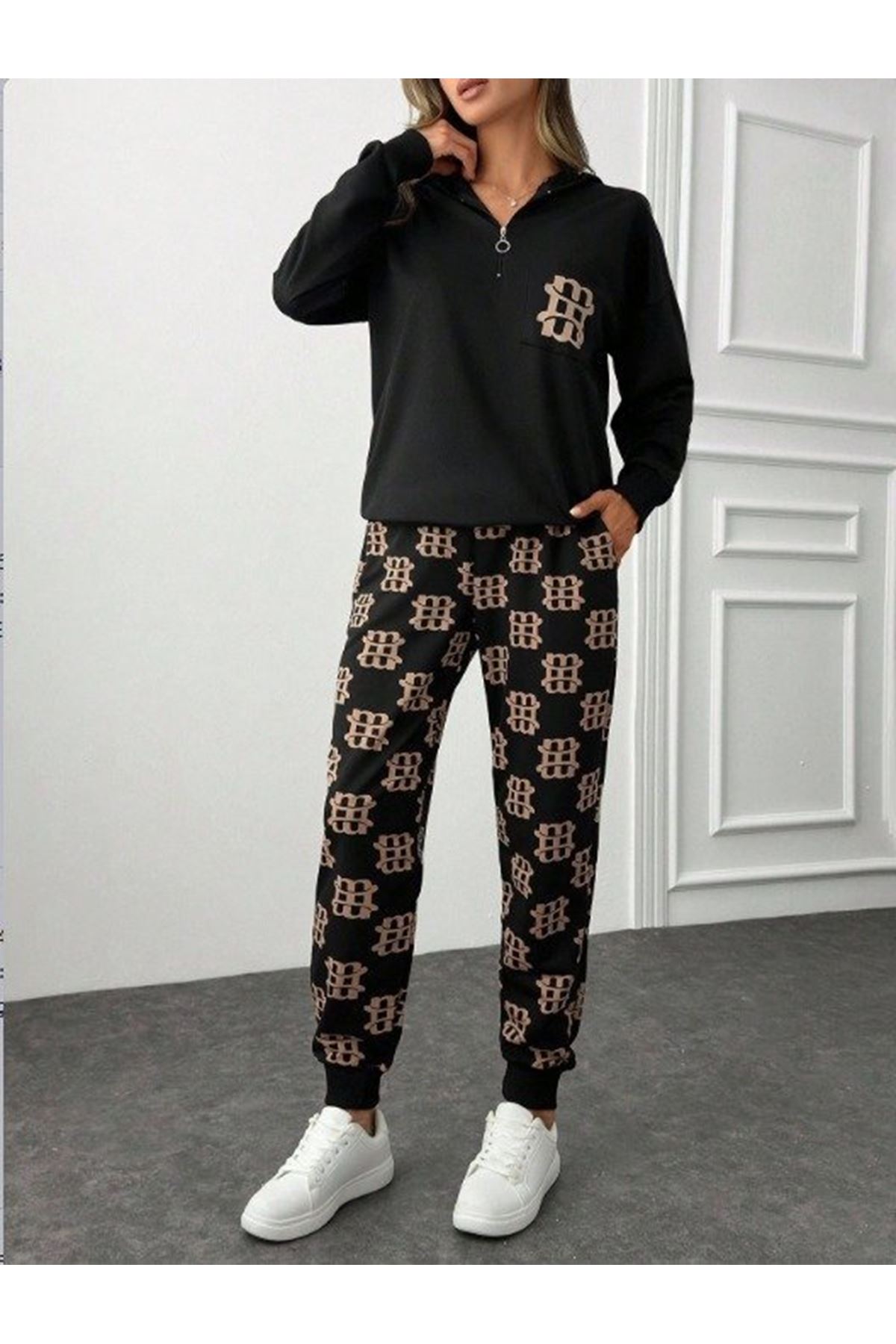 Kadın Uzun Kollu Iki Iplik Kumaş Fermuar Ve Cep Detay Kapüşonlu Ikili Takım