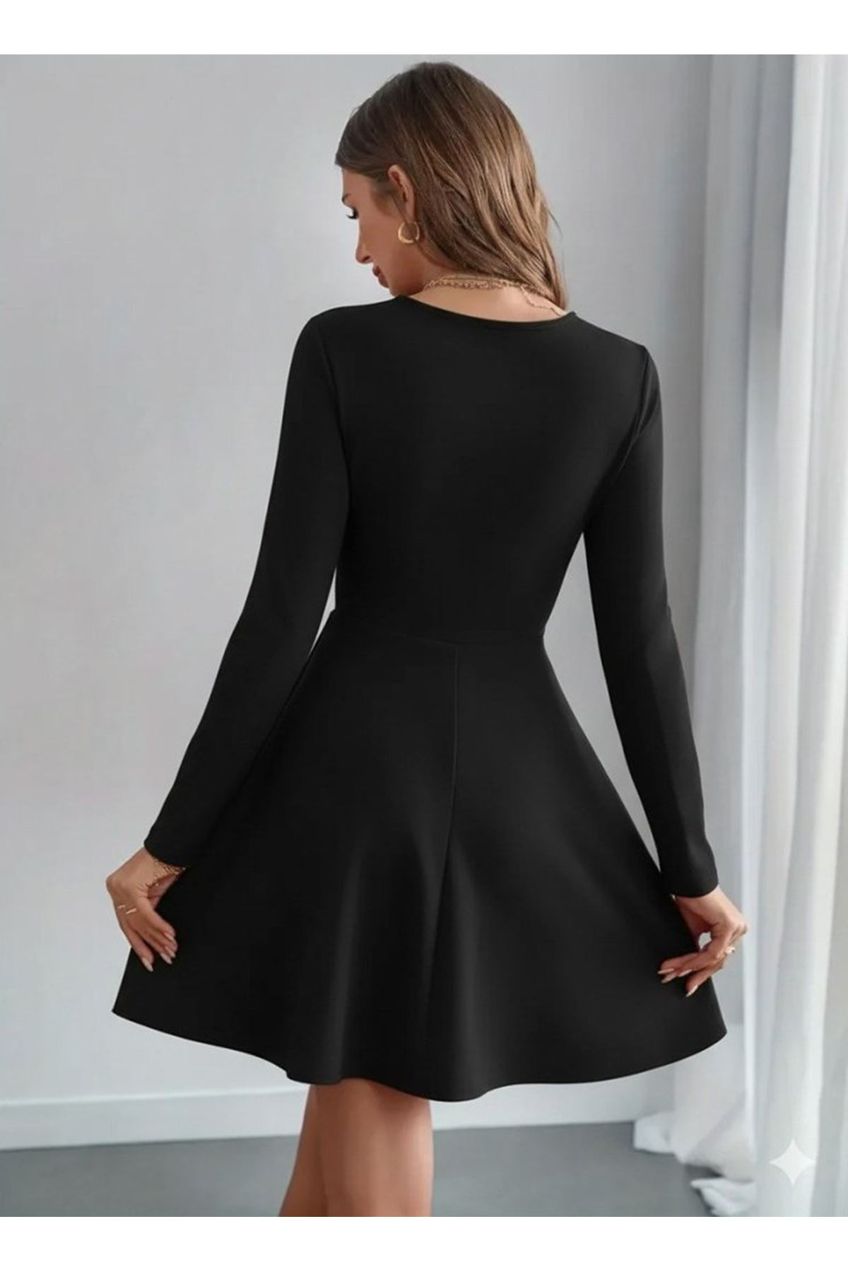 Kadın Uzun Kollu Inci Yakalı Kısa Ithal Krep Elbise