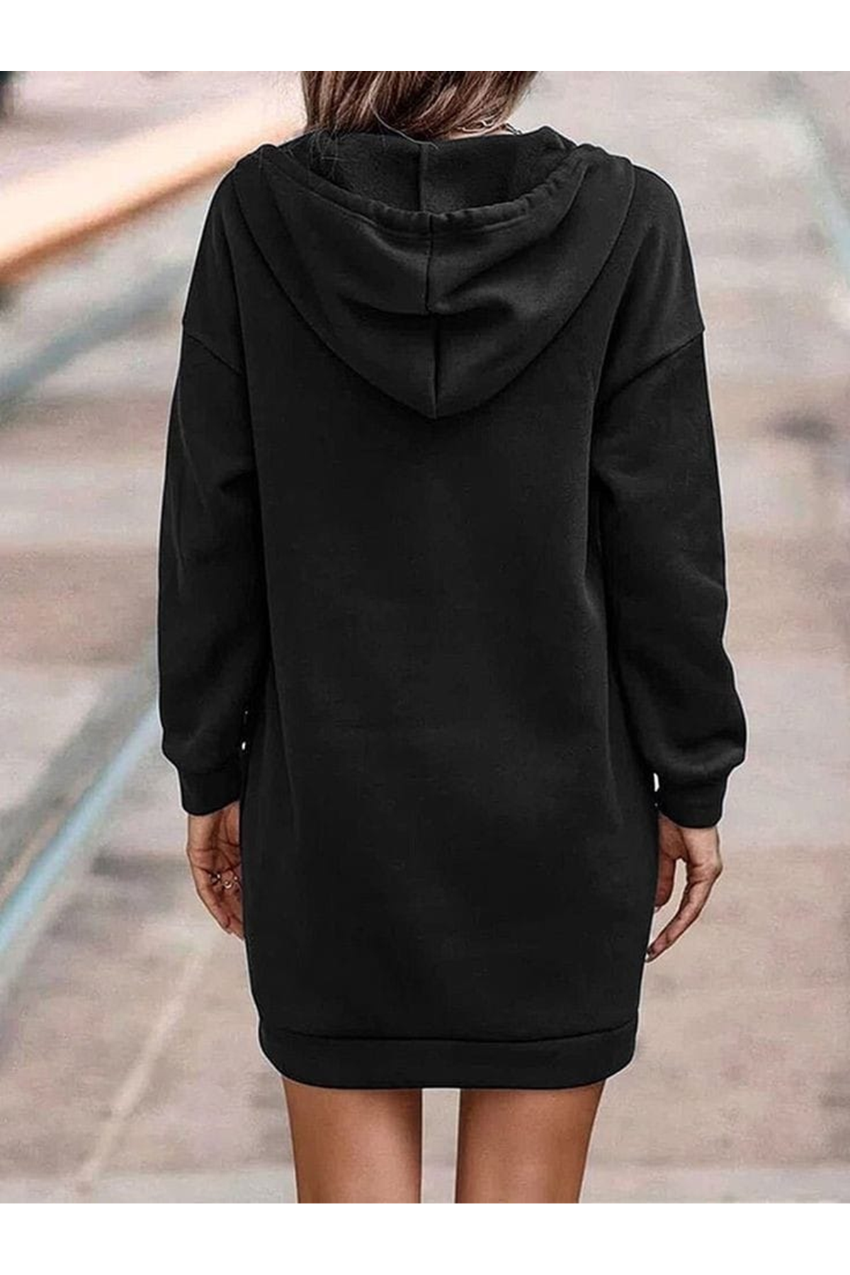 Kadın Uzun Kollu Kapşonlu Bağcıklı önden Düğmeli Ve Cepli Iki Iplik şardonlu Elbise