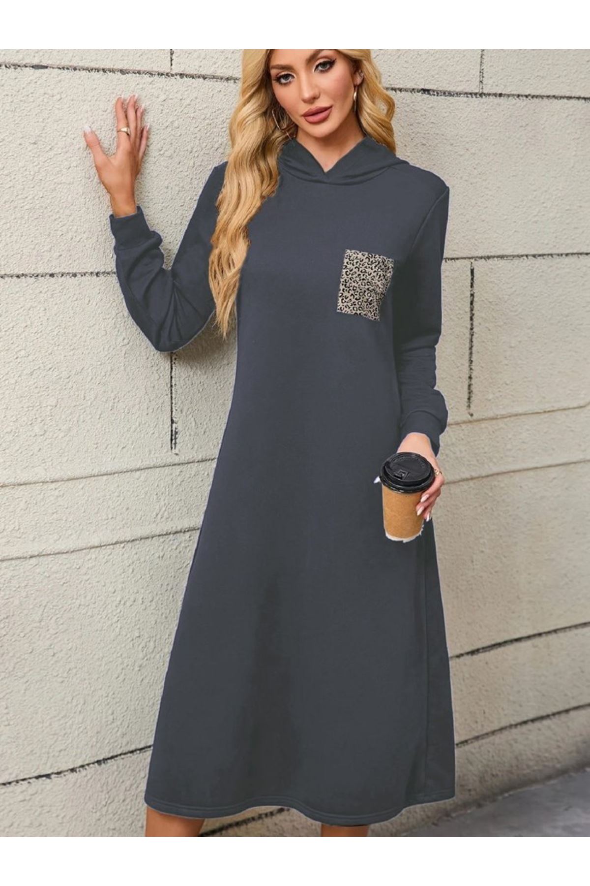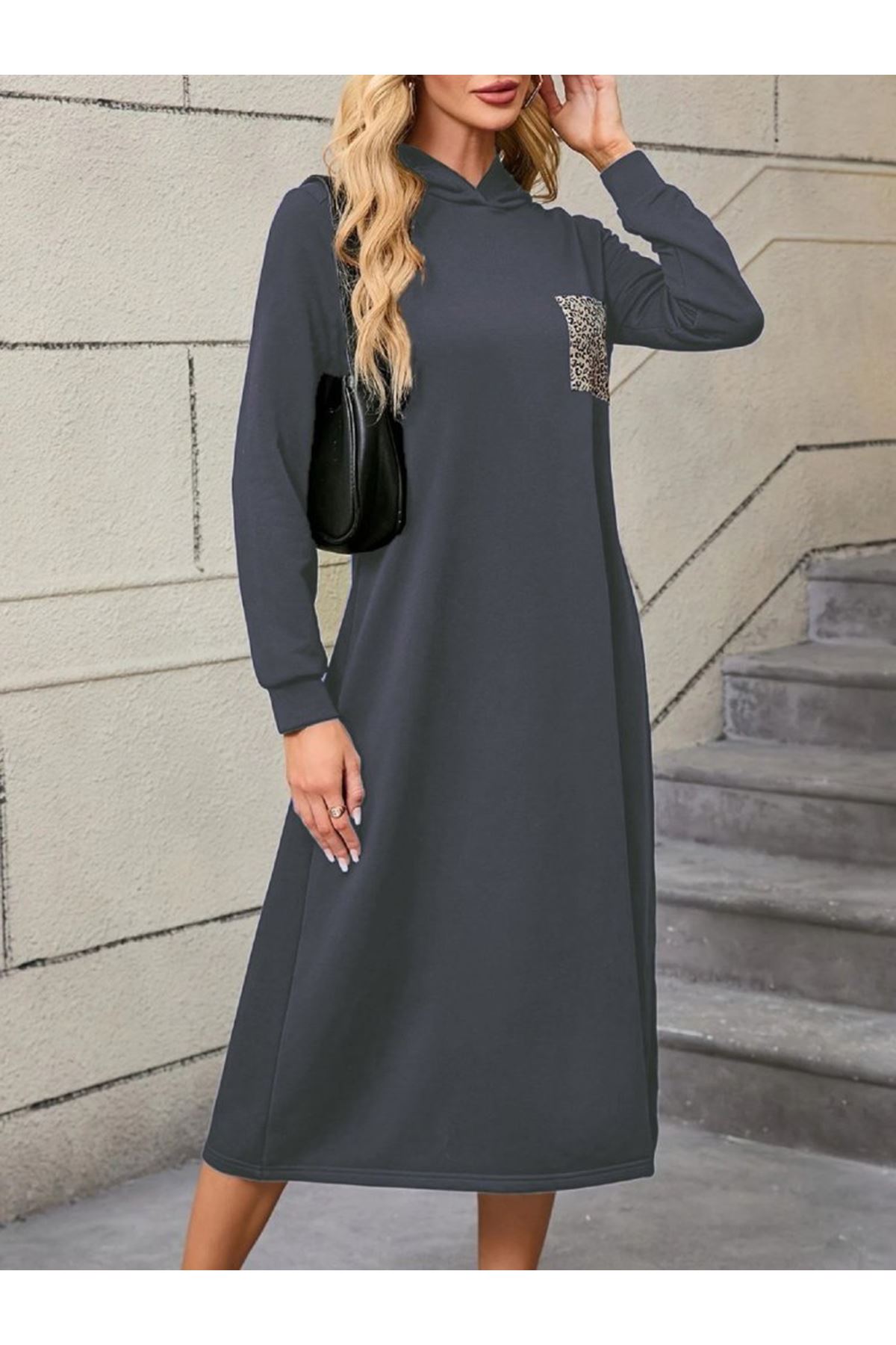 Kadın Uzun Kollu Kapşonlu Cep Detaylı Viskon Iki Iplik Maxi Elbise