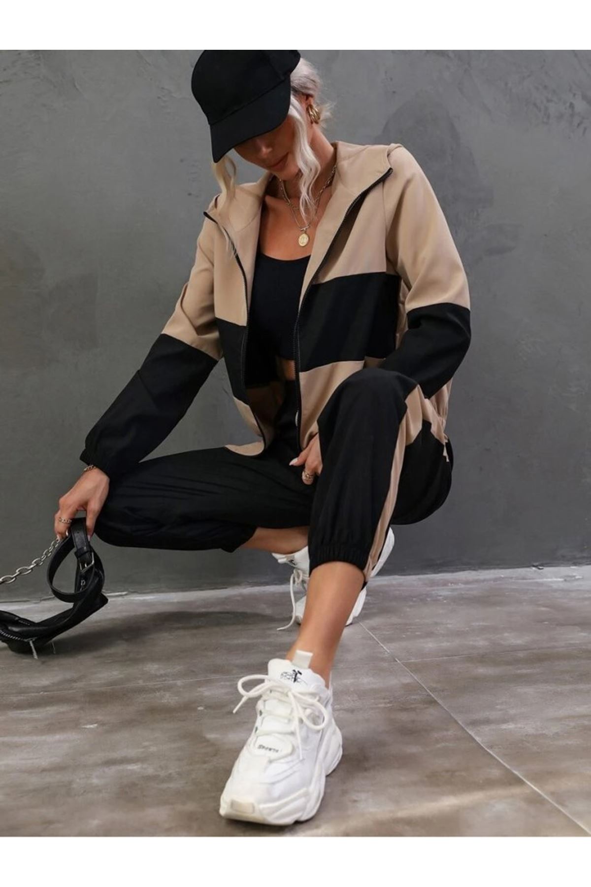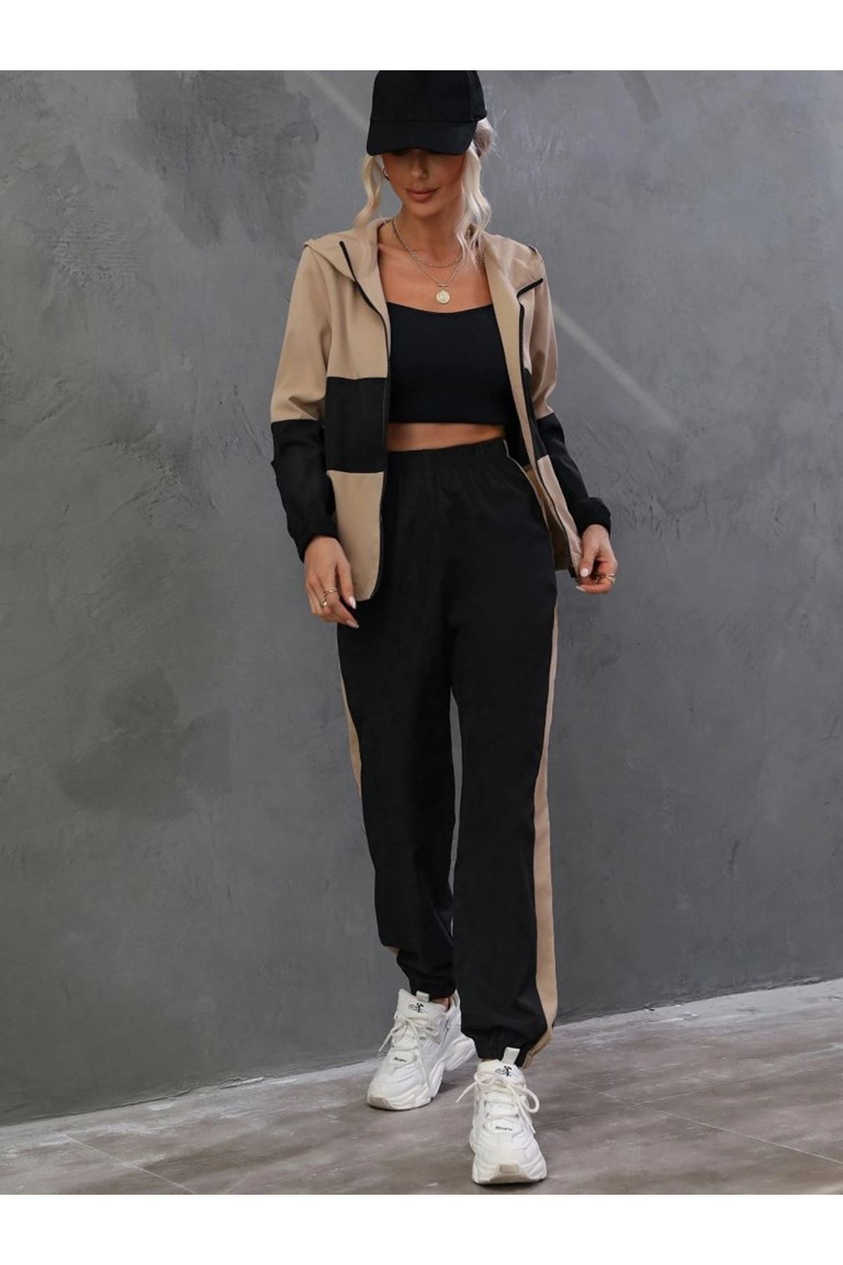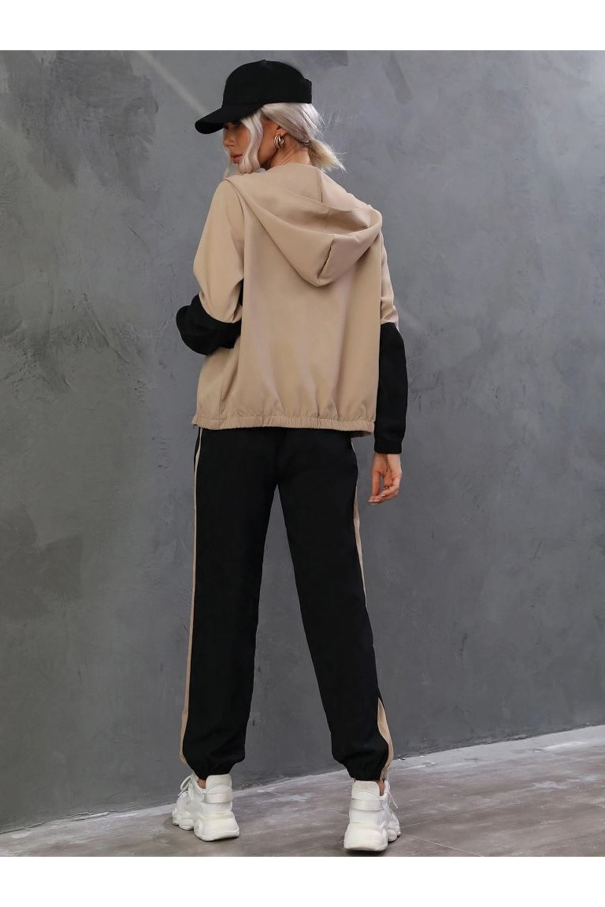 Kadın Uzun Kollu Kapşonlu önden Fermuarlı Viskon Iki Iplik Bluz Ve Pantolon Ikili Takım
