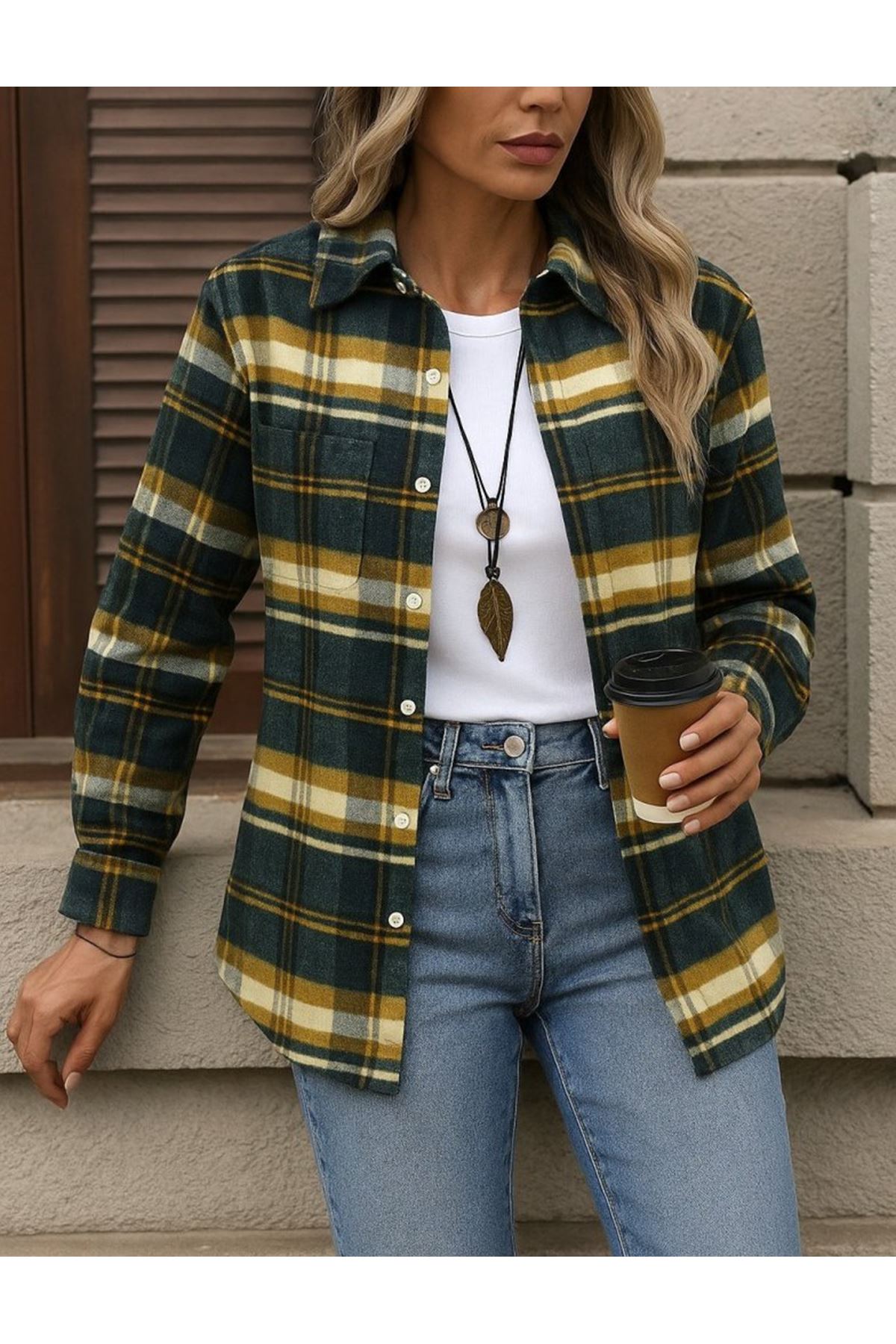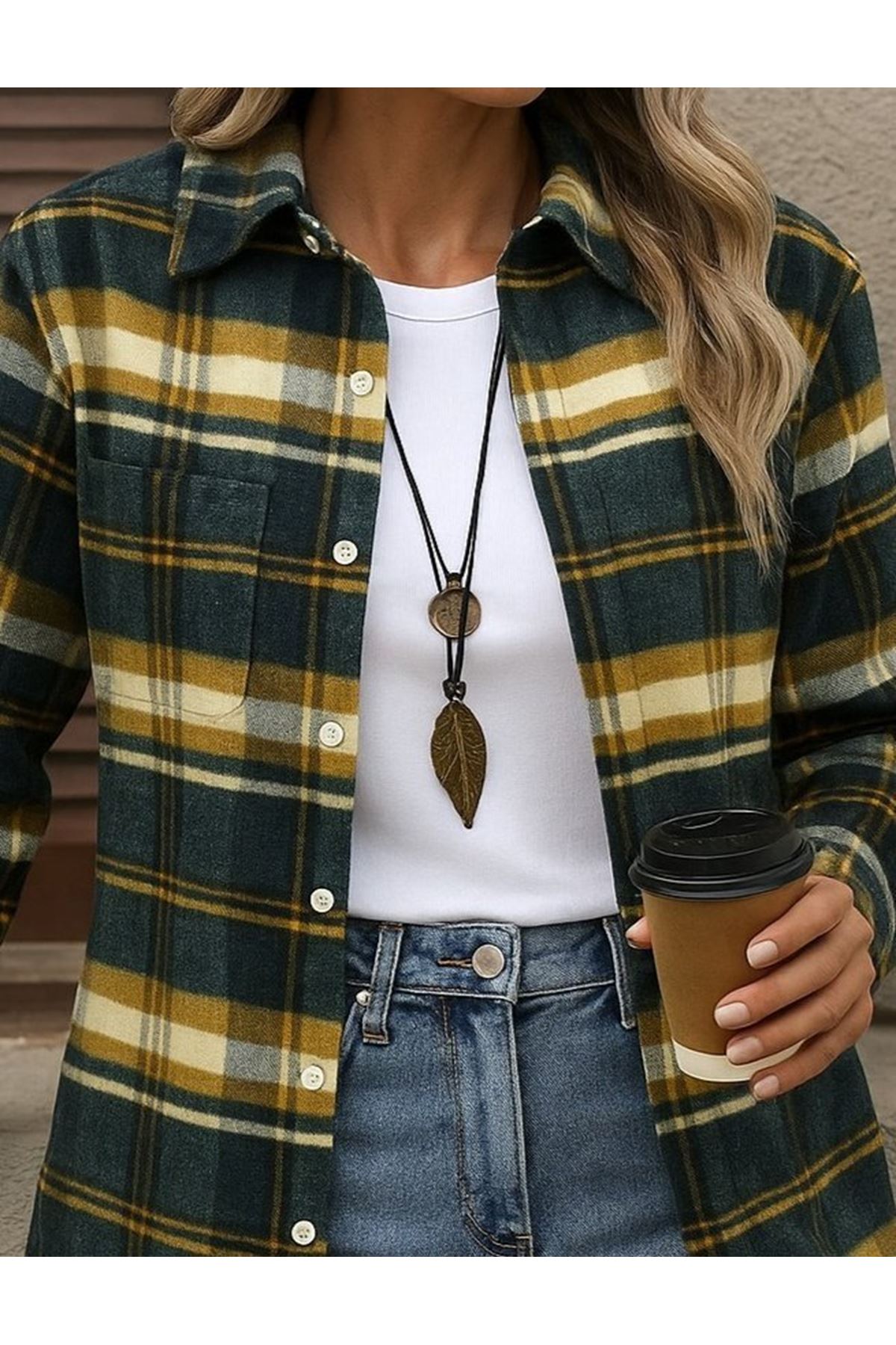 Kadın Uzun Kollu Kare Desenli önden Düğmeli Dokuma Gömlek