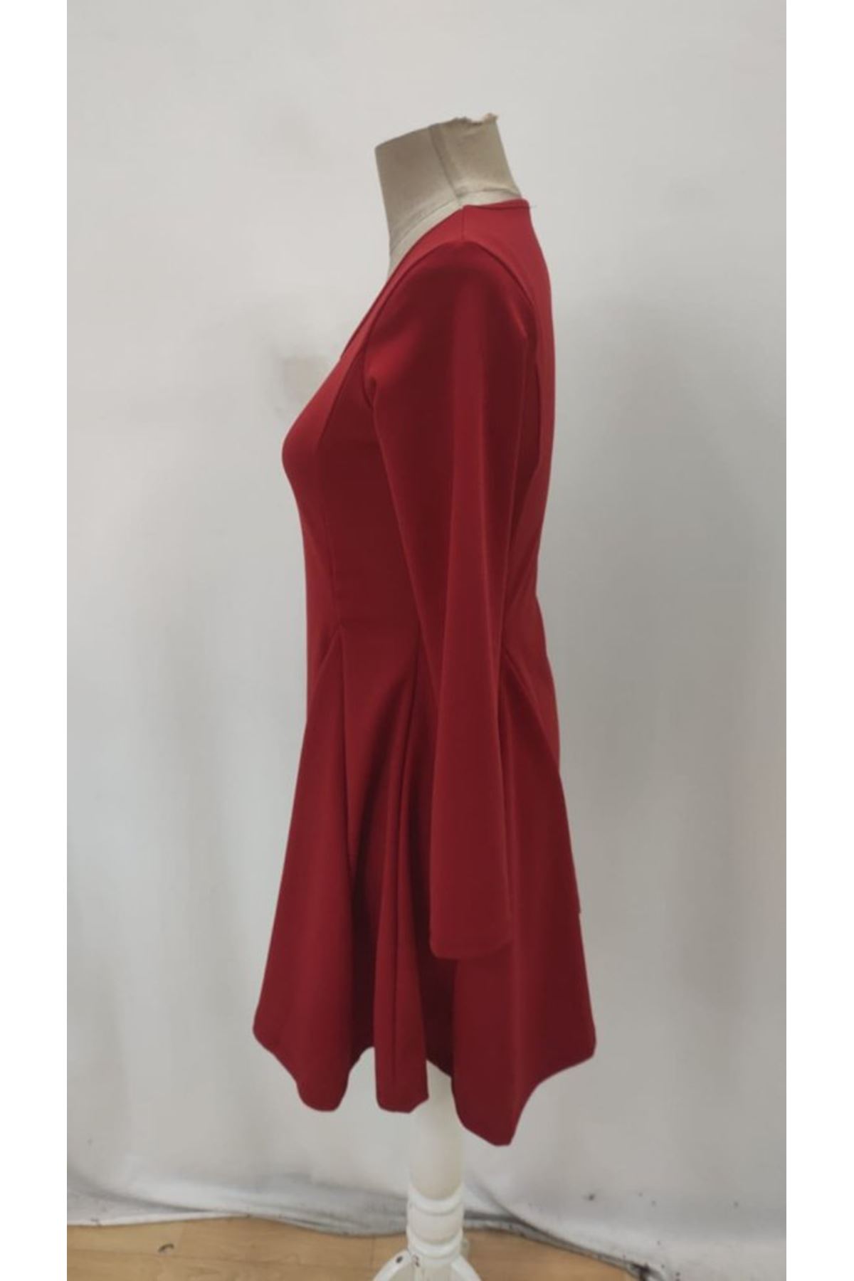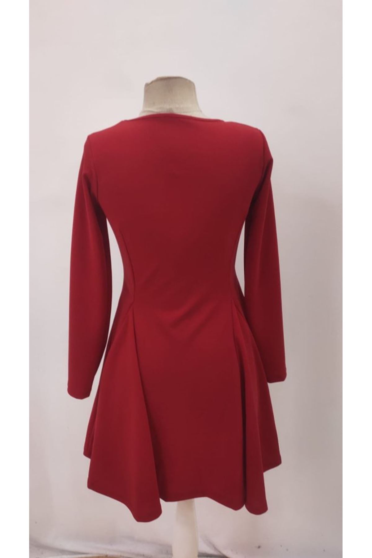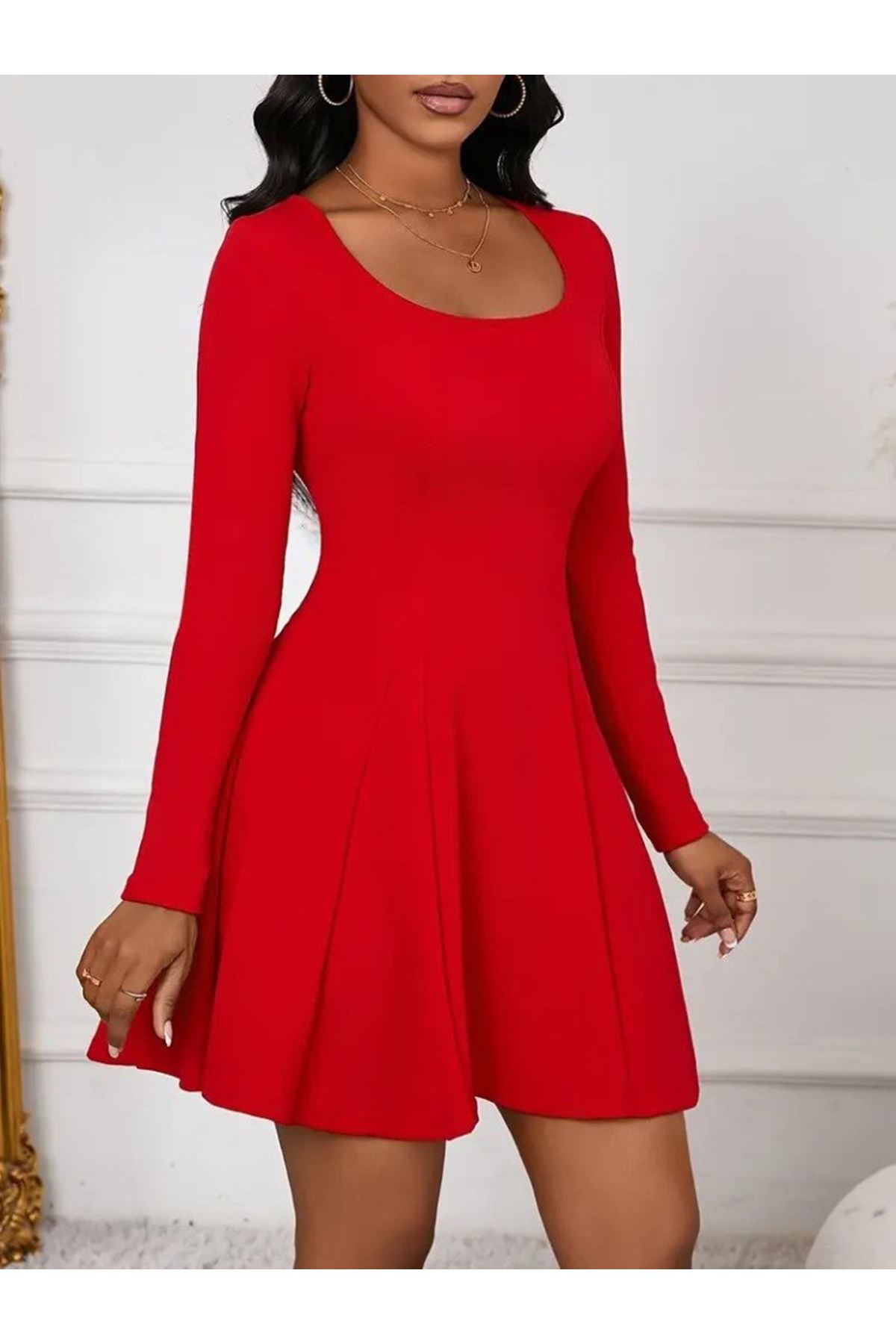Kadın Uzun Kollu Kare Yakalı Mini Ithal Krep Elbise