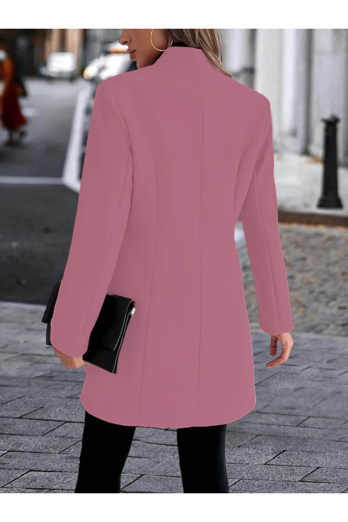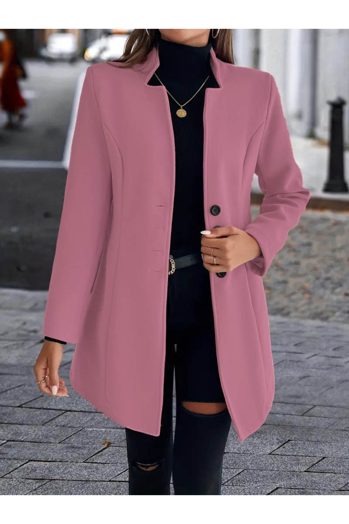 Kadın Uzun Kollu Kırlangıç Yaka önden Düğmeli Kısa Kaşe Kaban