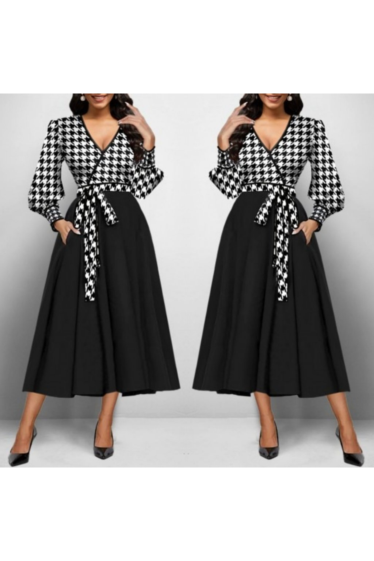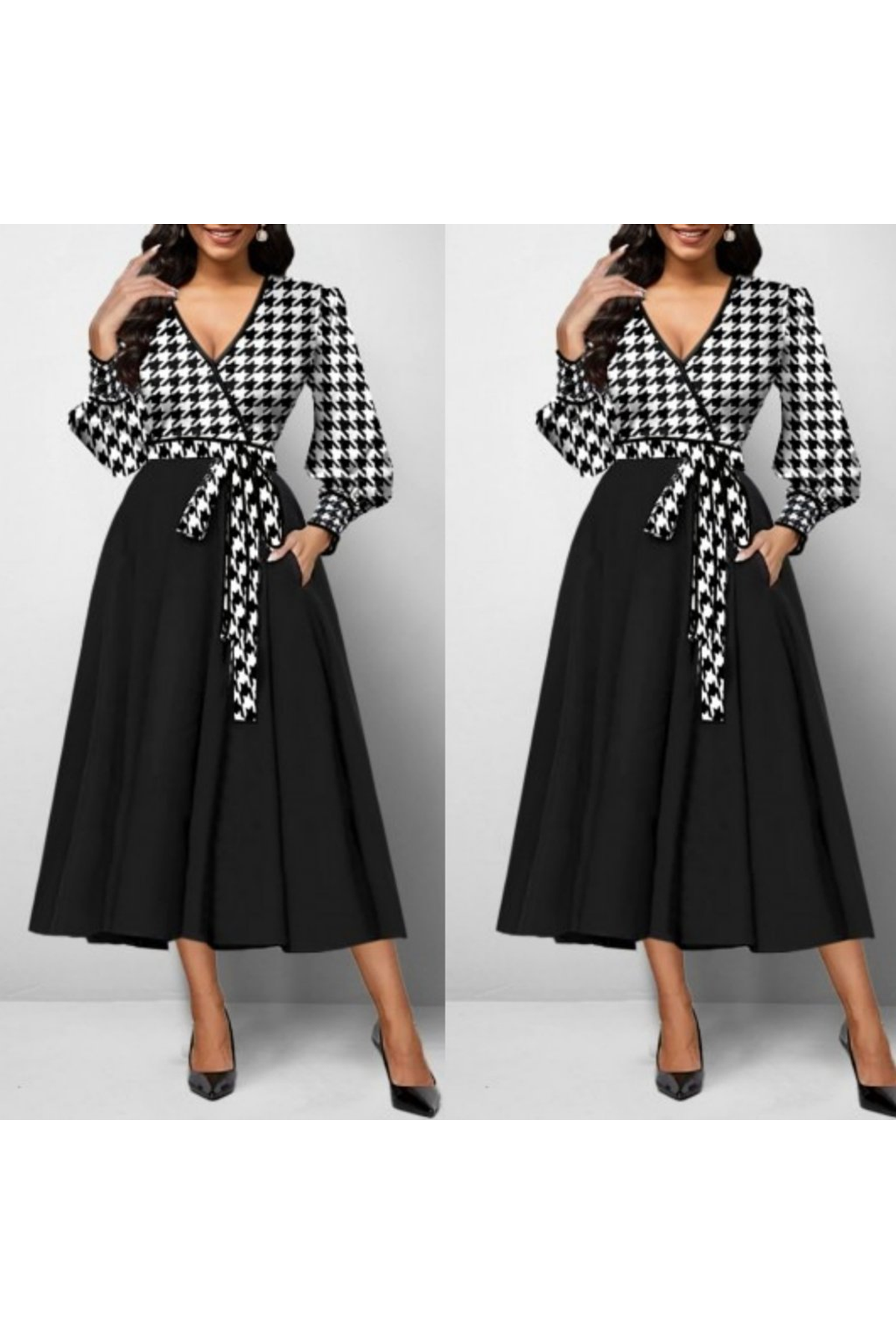 Kadın Uzun Kollu Kruvaze Yaka Dalgıç Krep Midi Boy Elbise