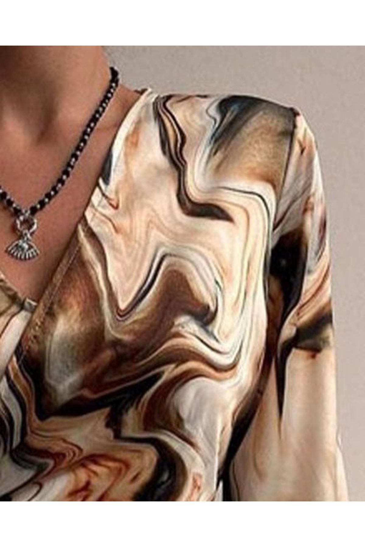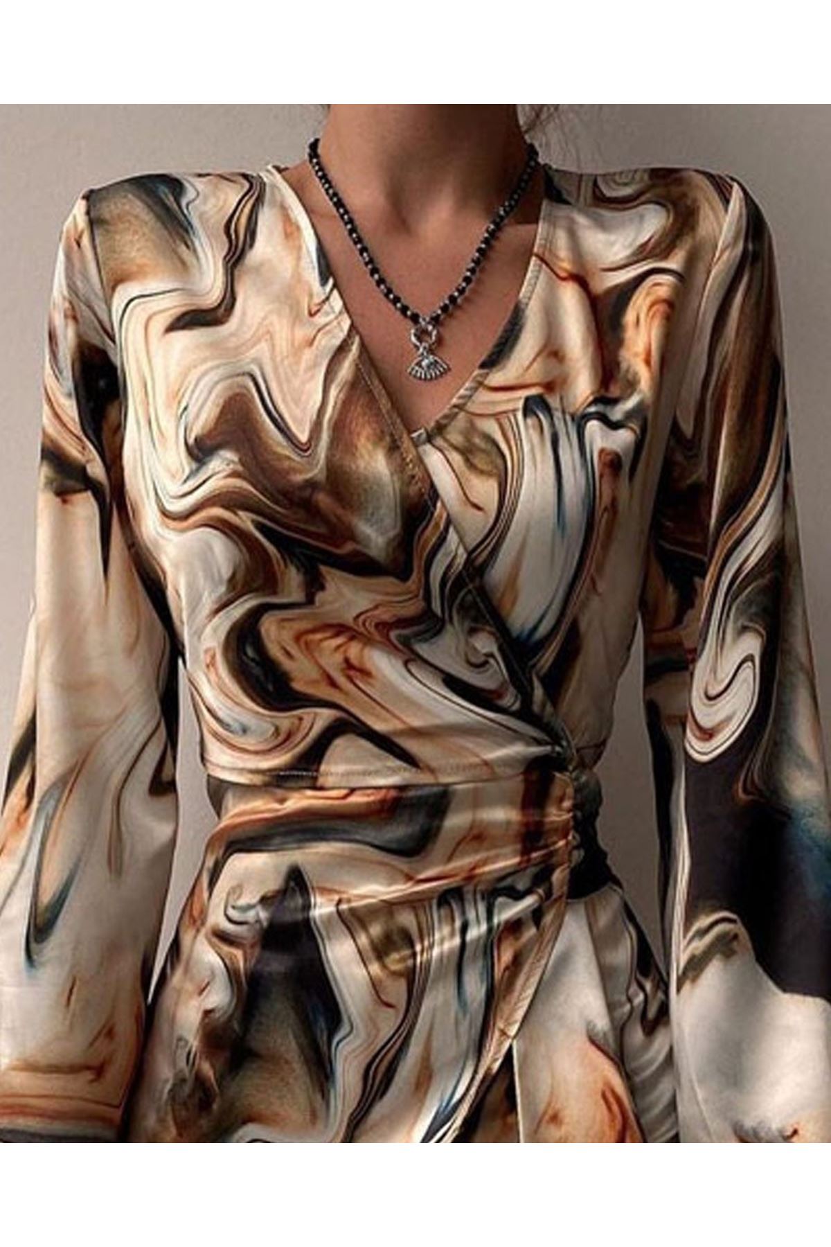 Kadın Uzun Kollu Kruvaze Yakalı Asimetrik Detaylı Mini Modal Elbise