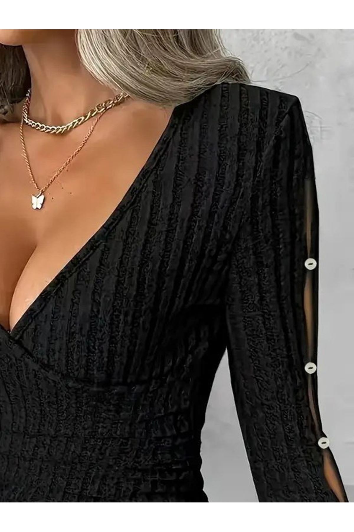 Kadın Uzun Kollu Kruvaze Yakalı Incili şardonlu Kaşkorse Bluz