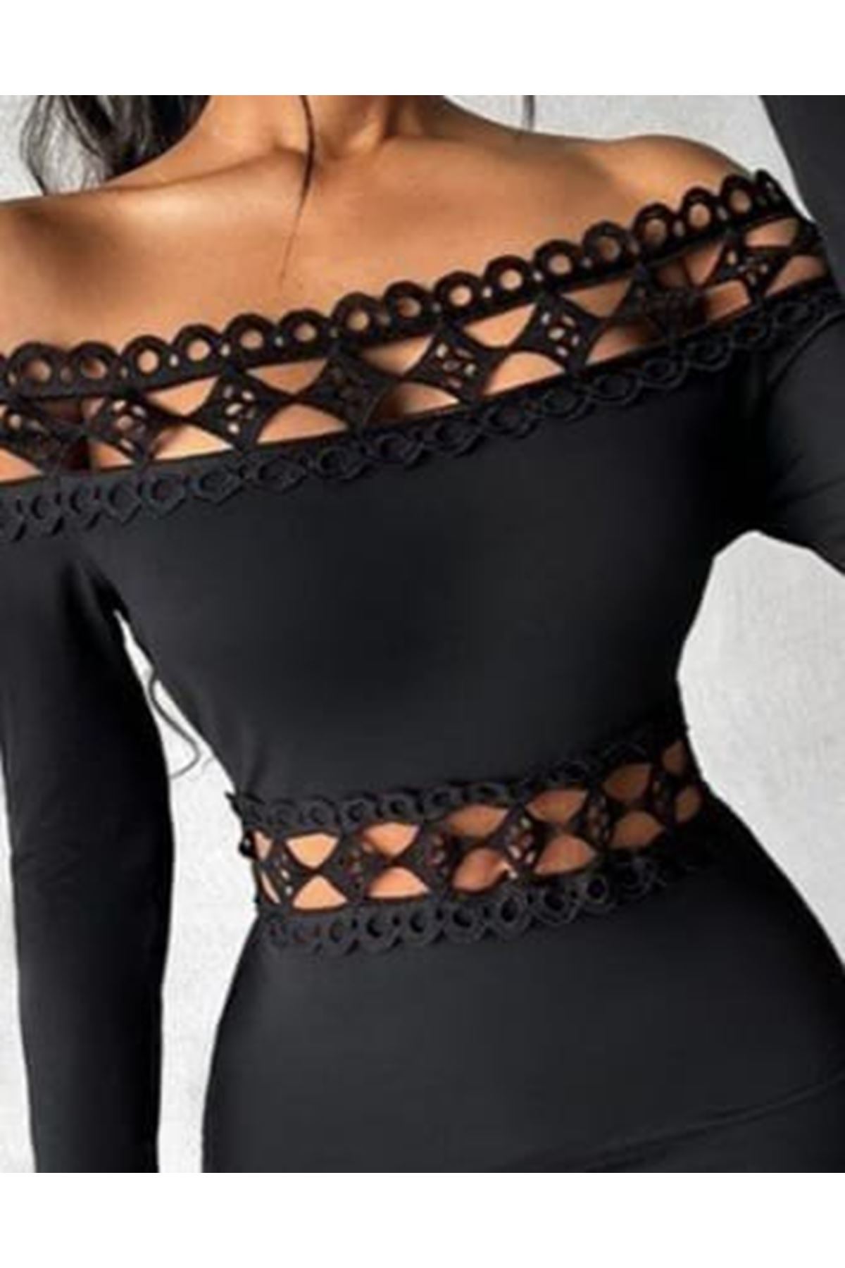 Kadın Uzun Kollu Madonna Dantel Yaka Yırtmaçlı Midi Dalgıç Elbise