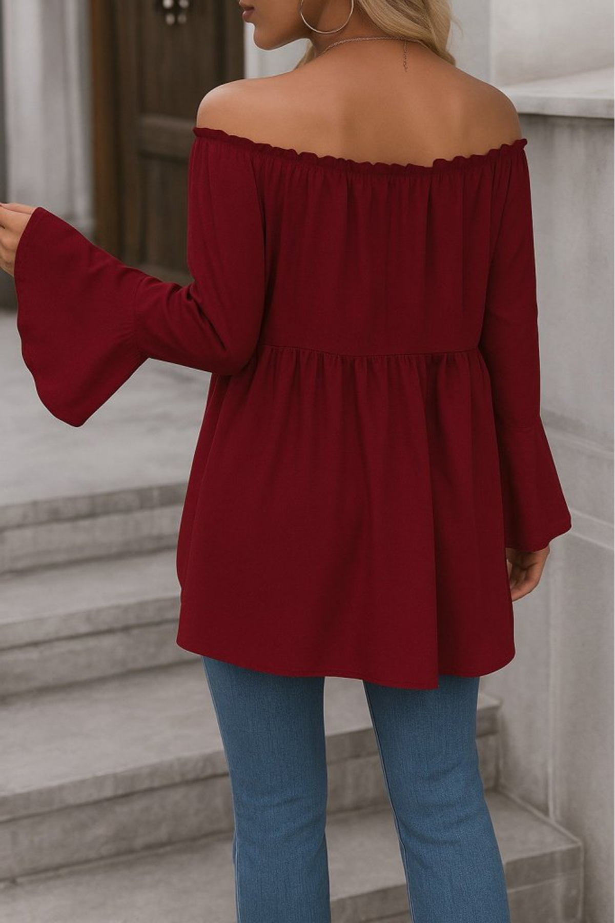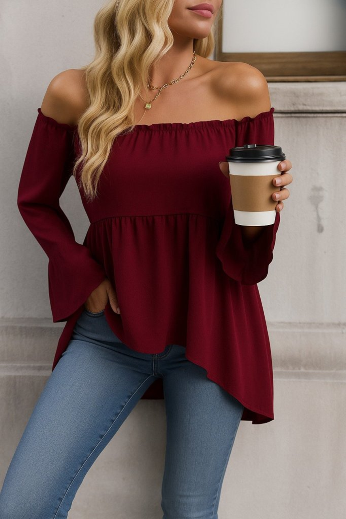 Kadın Uzun Kollu Madonna Yaka Asimetrik Detaylı Kolları Ispanyol Viskon Bluz