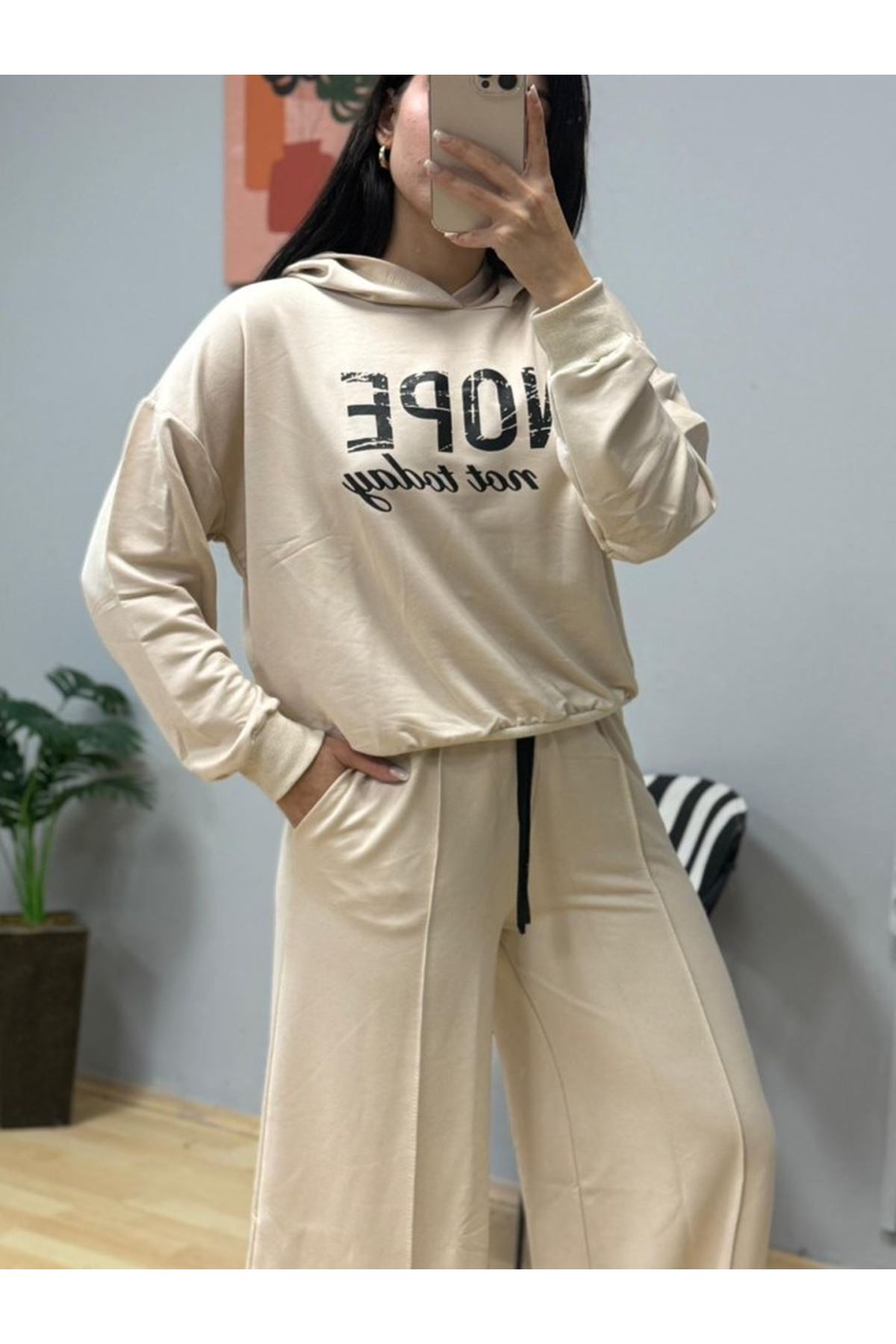 Kadın Uzun Kollu Nope Baskılı Beli Ribanalı Ikili Takım