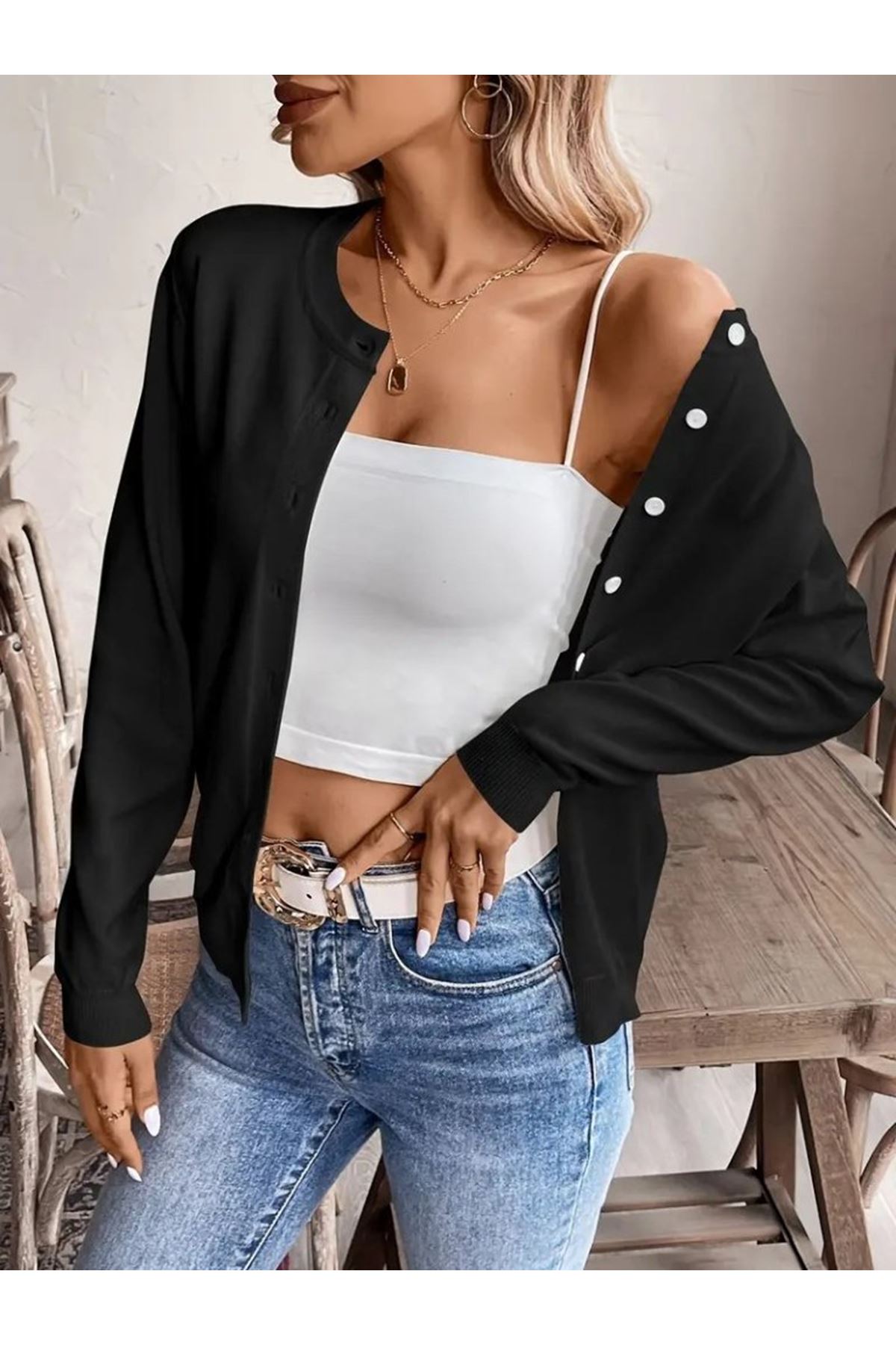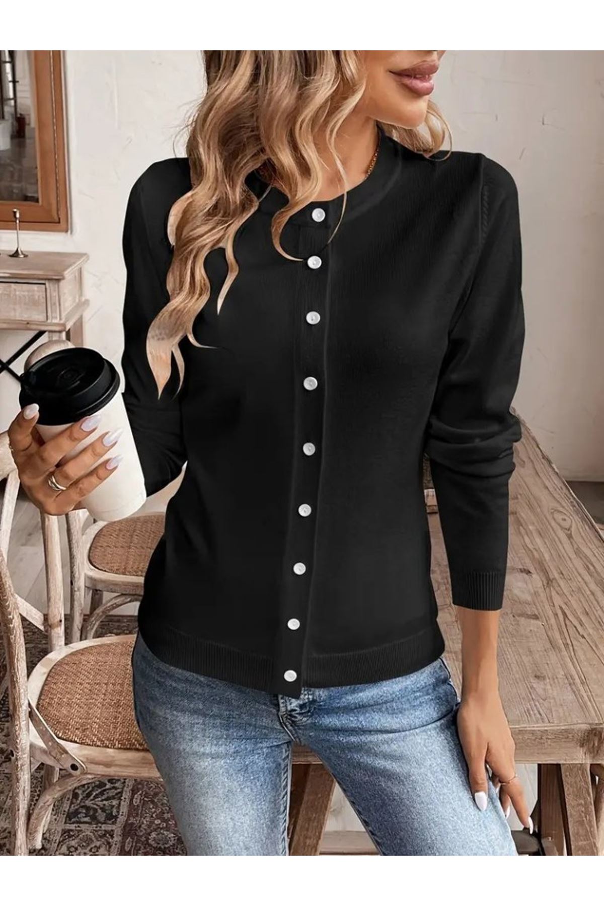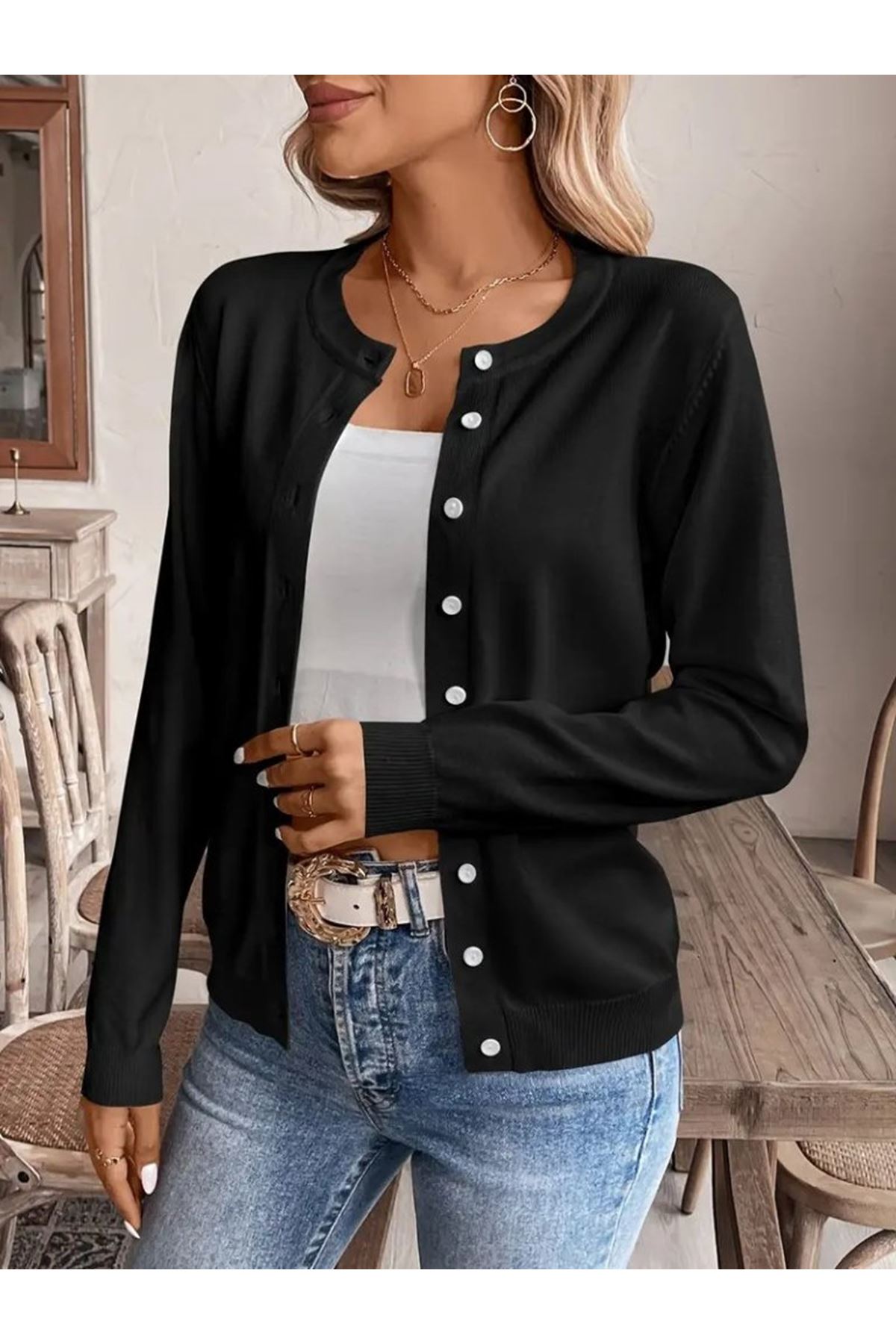 Kadın Uzun Kollu önden Düğmeli Triko Ceket