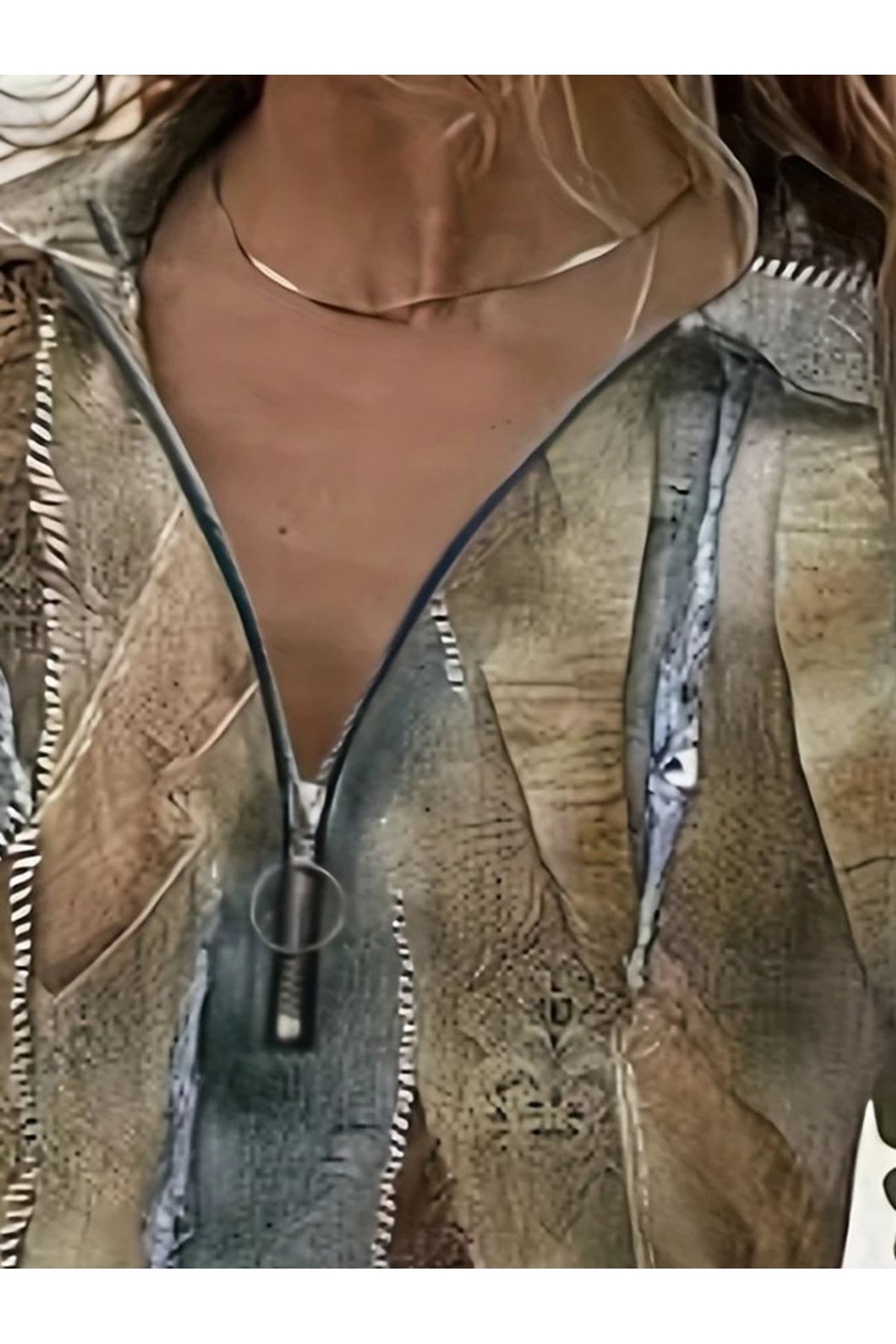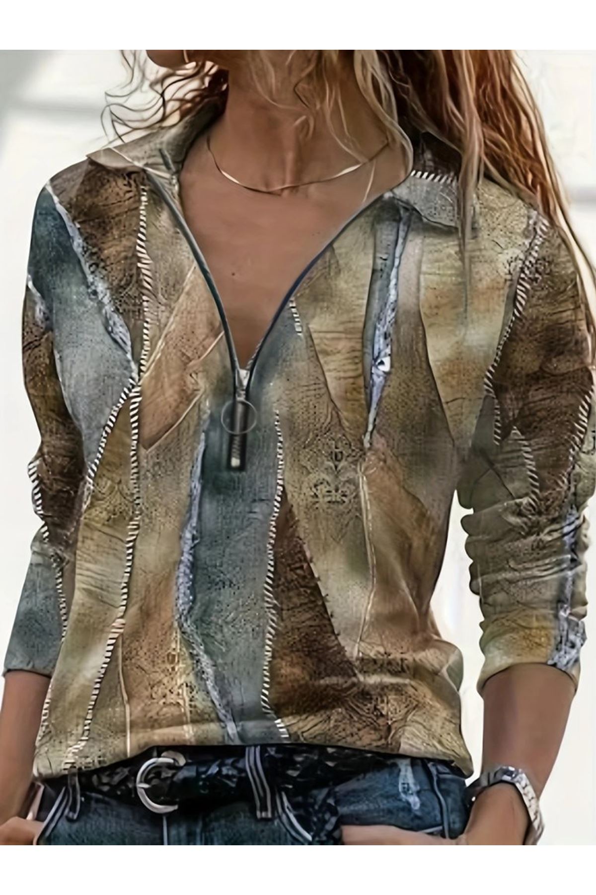Kadın Uzun Kollu önden Fermuarlı Iki Iplik Bluz