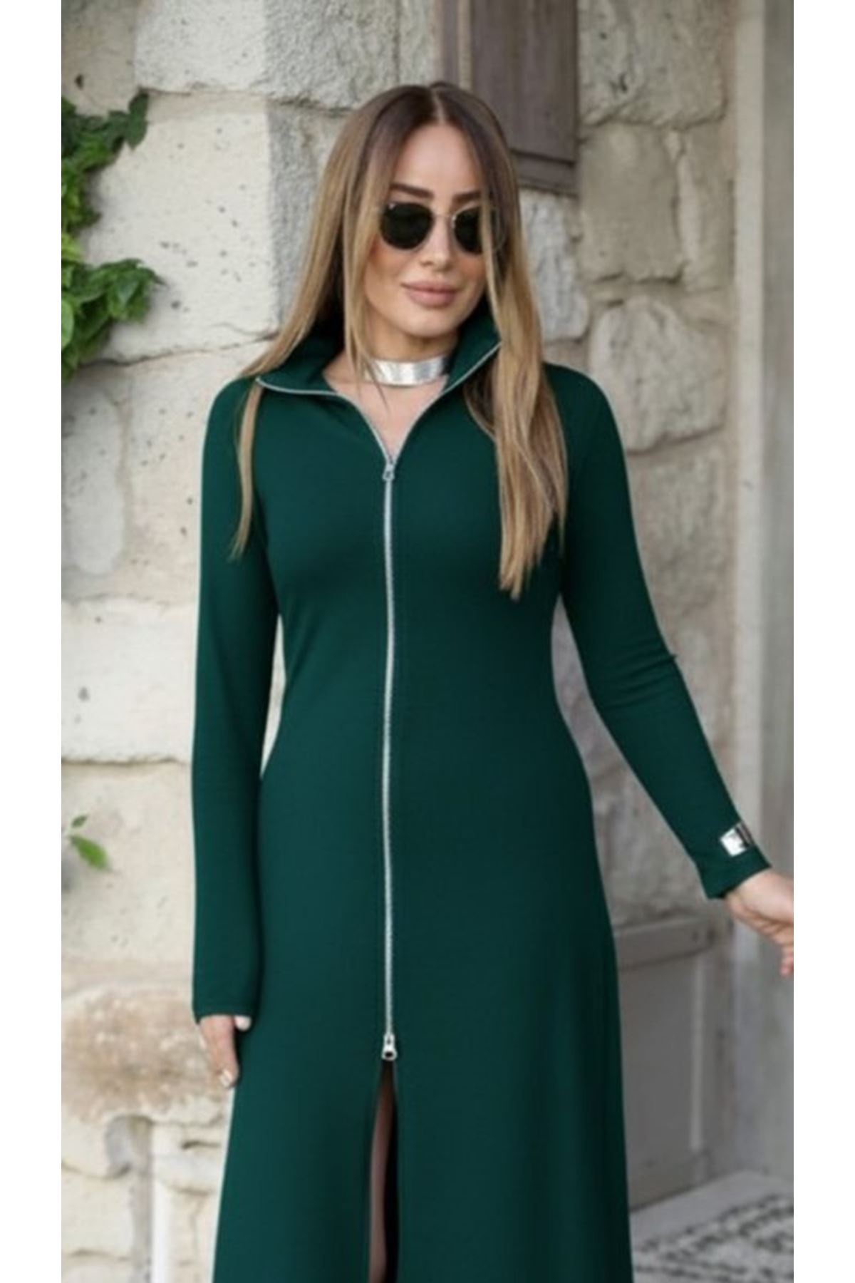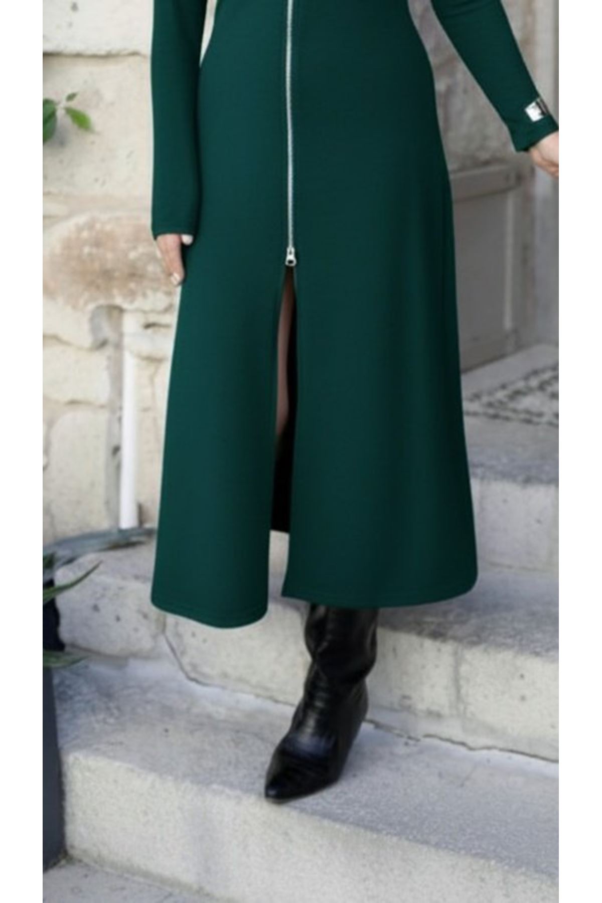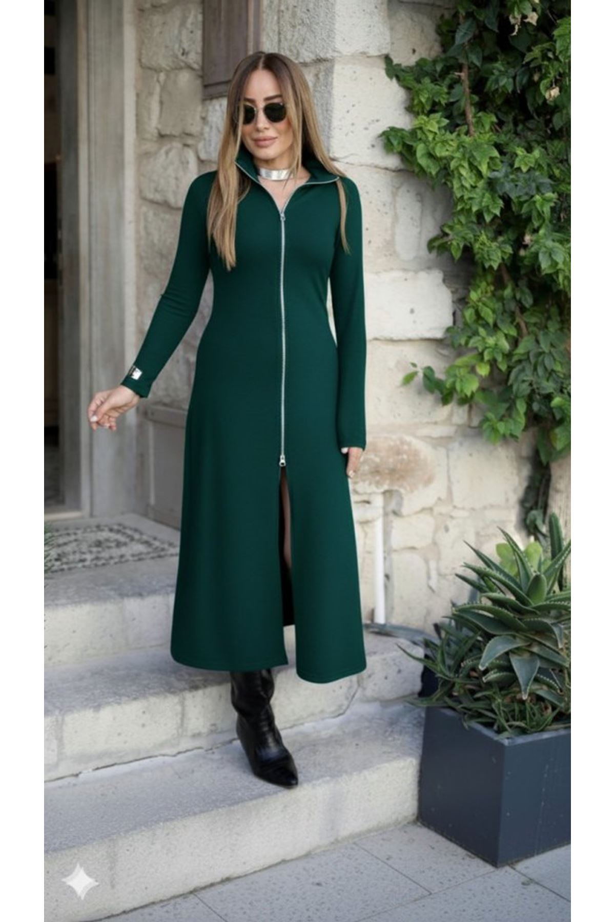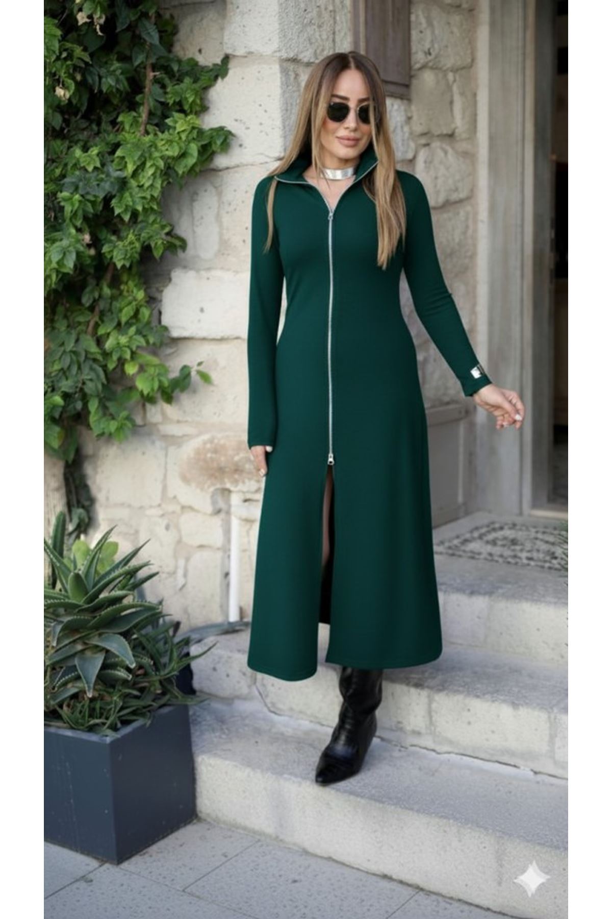 Kadın Uzun Kollu önden Fermuarlı Ithal Krep Elbise