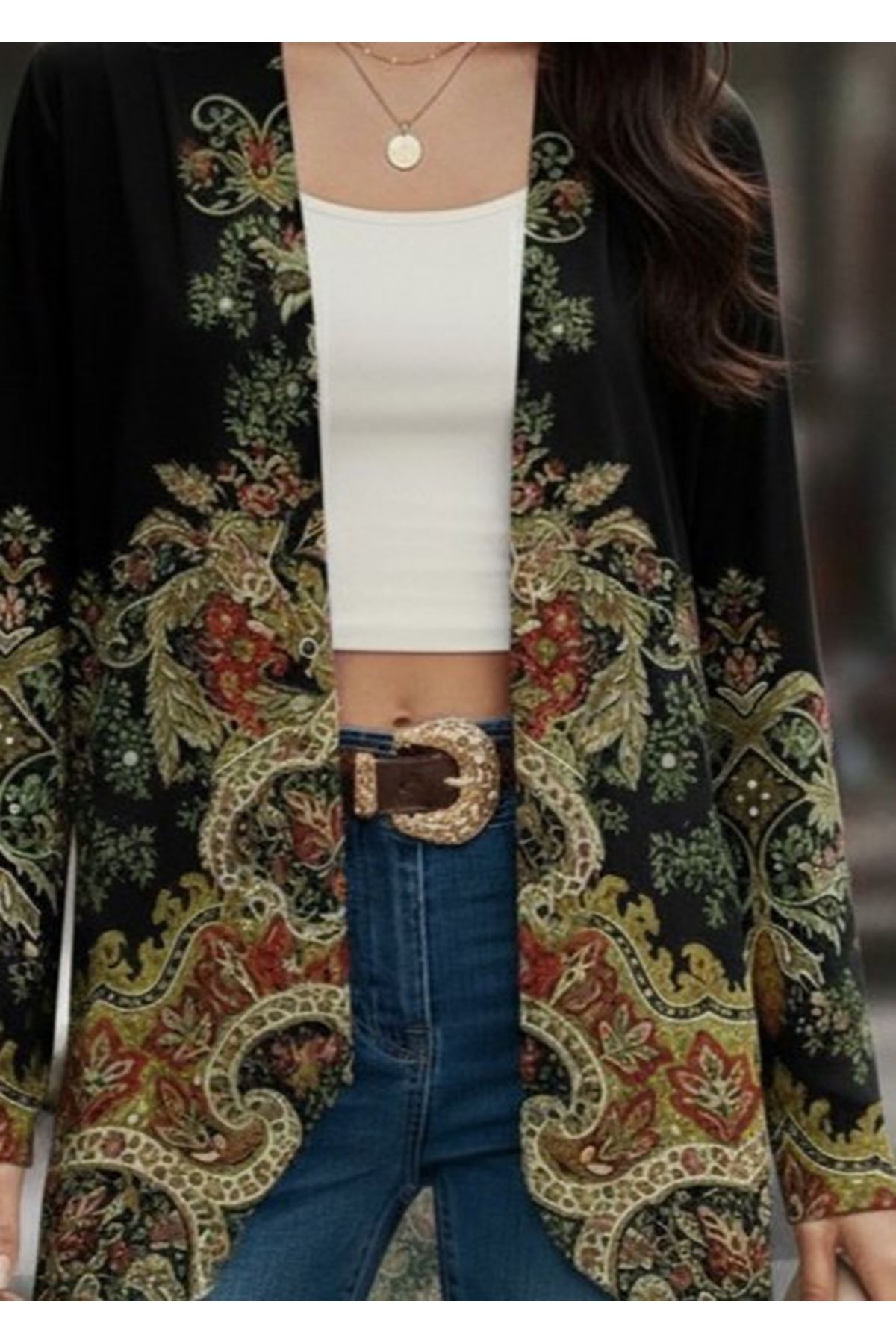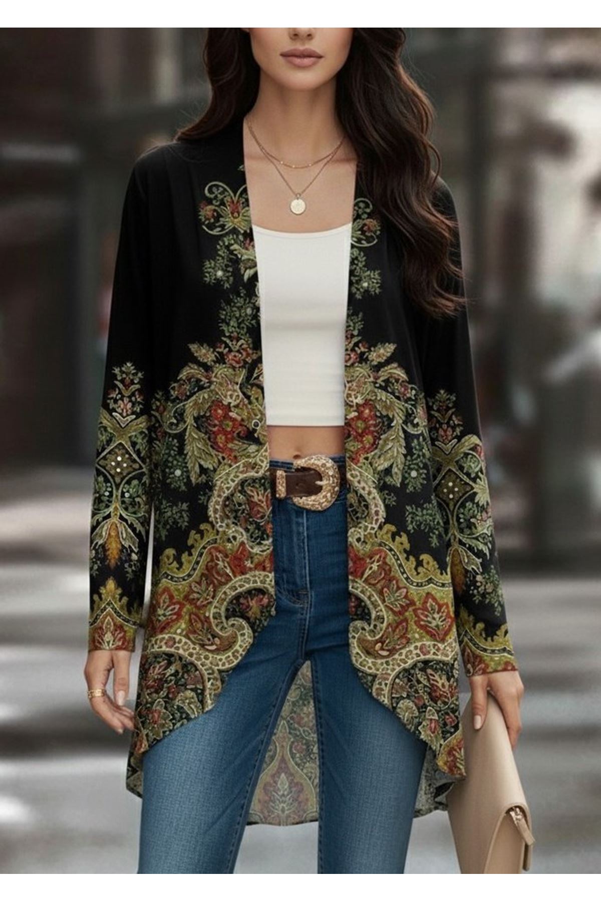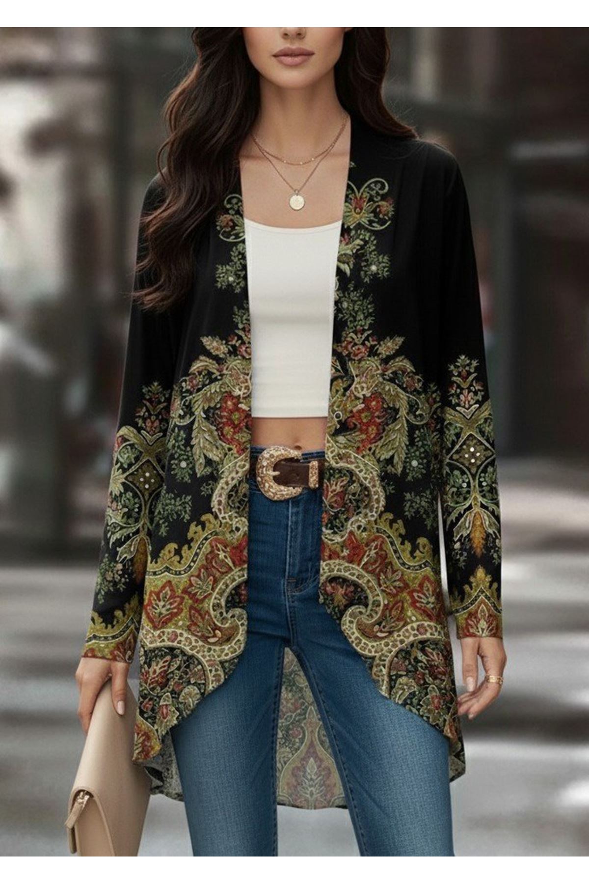 Kadın Uzun Kollu önü Açık Desenli şardonlu Dalgıç Ceket