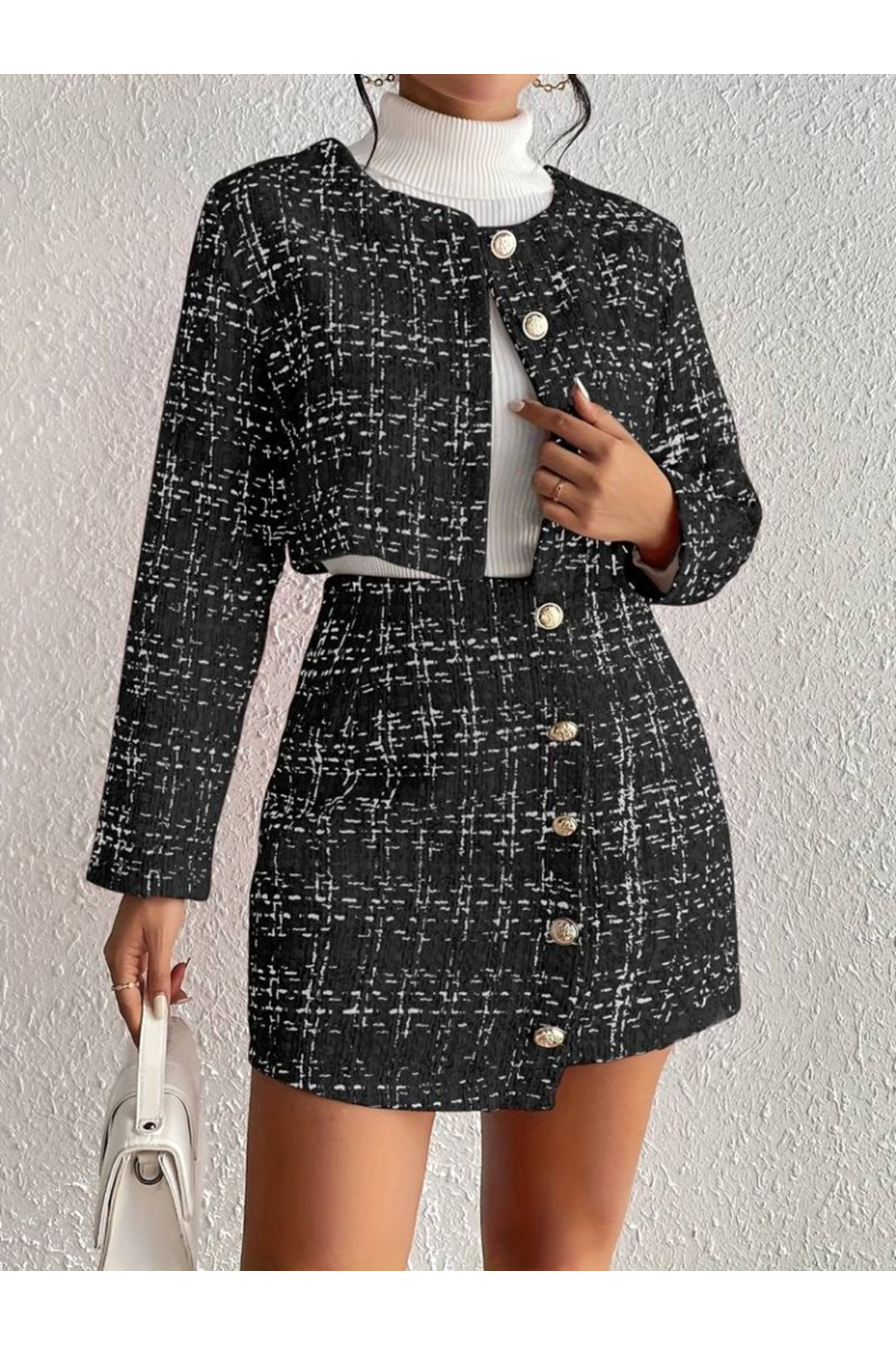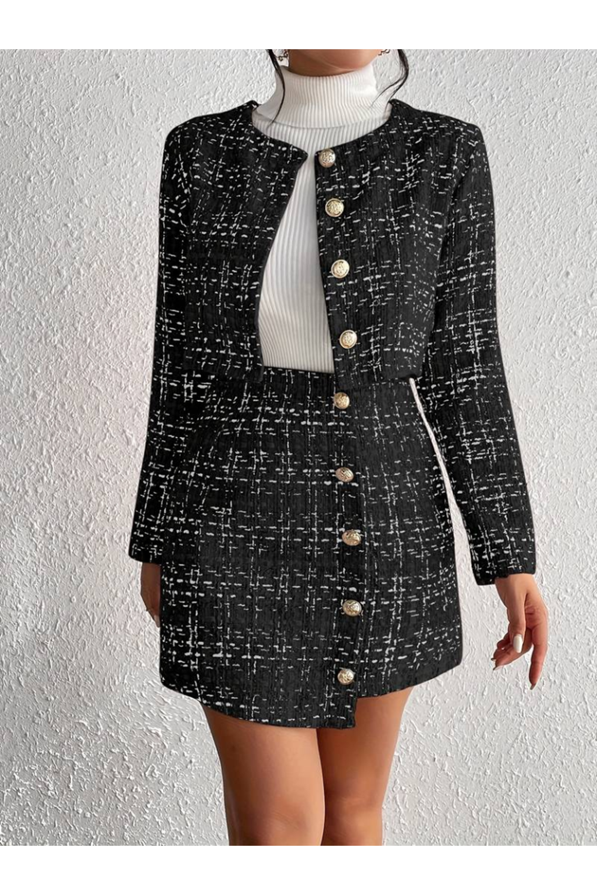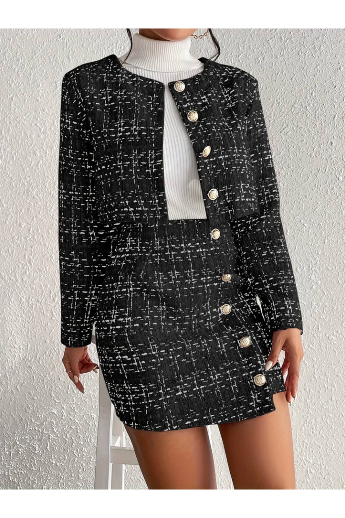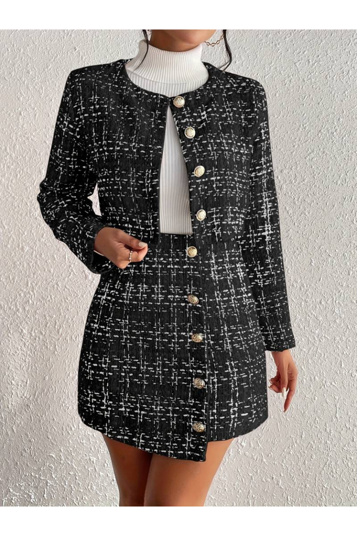 Kadın Uzun Kollu önü Düğmeli şanel Ceket Ve Etek Takım