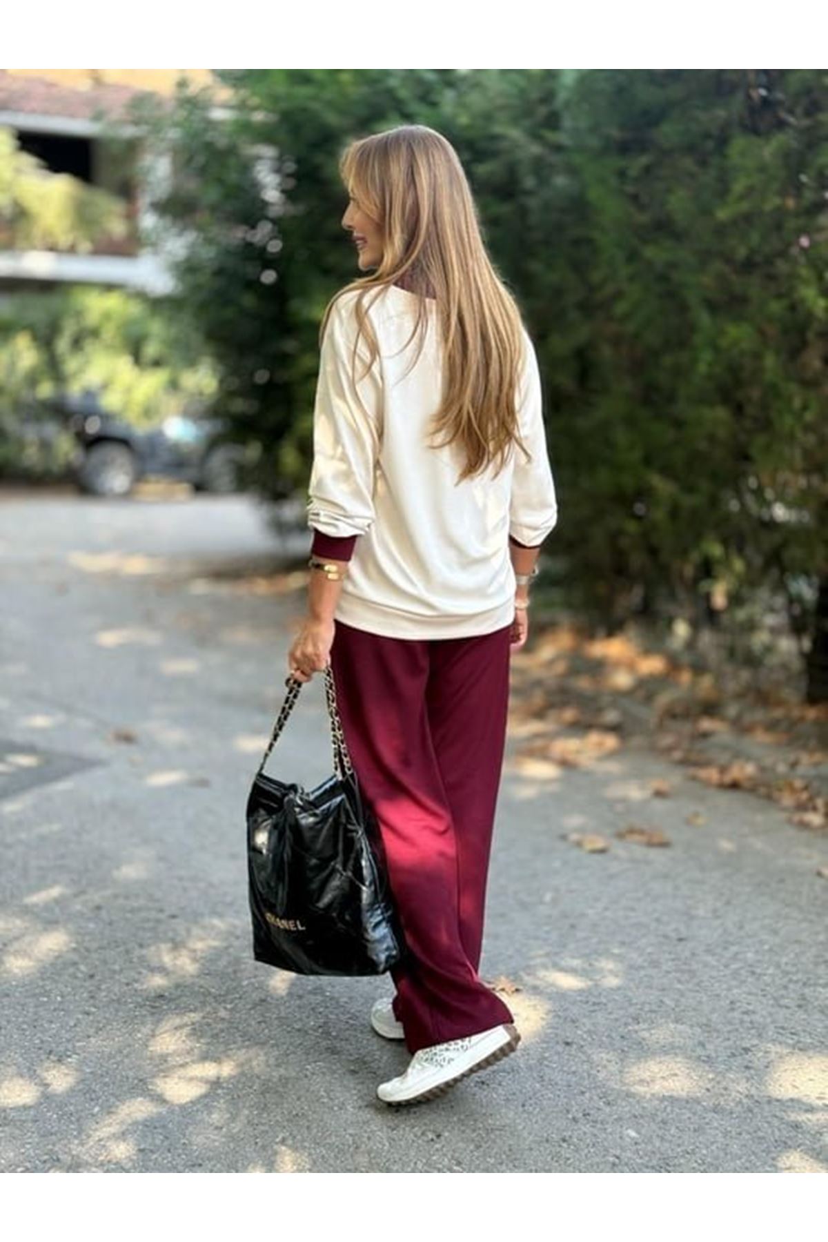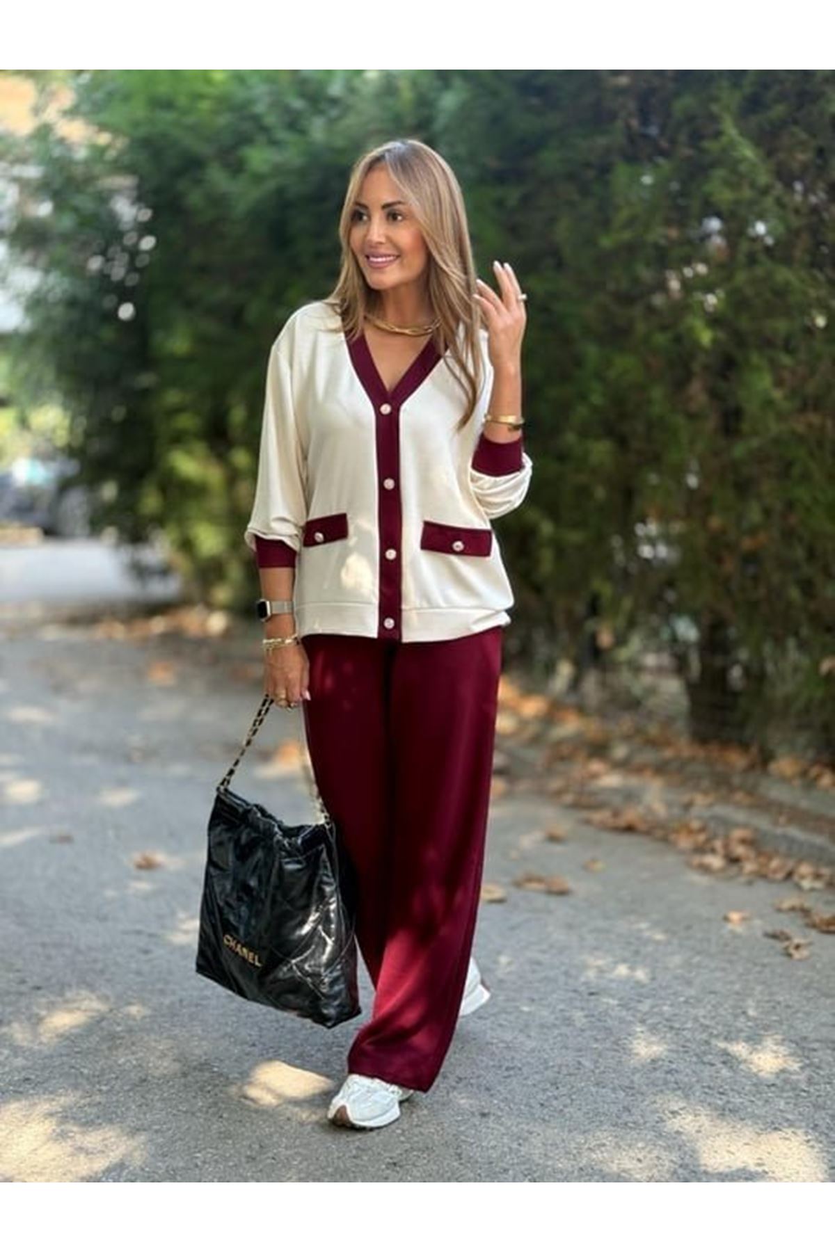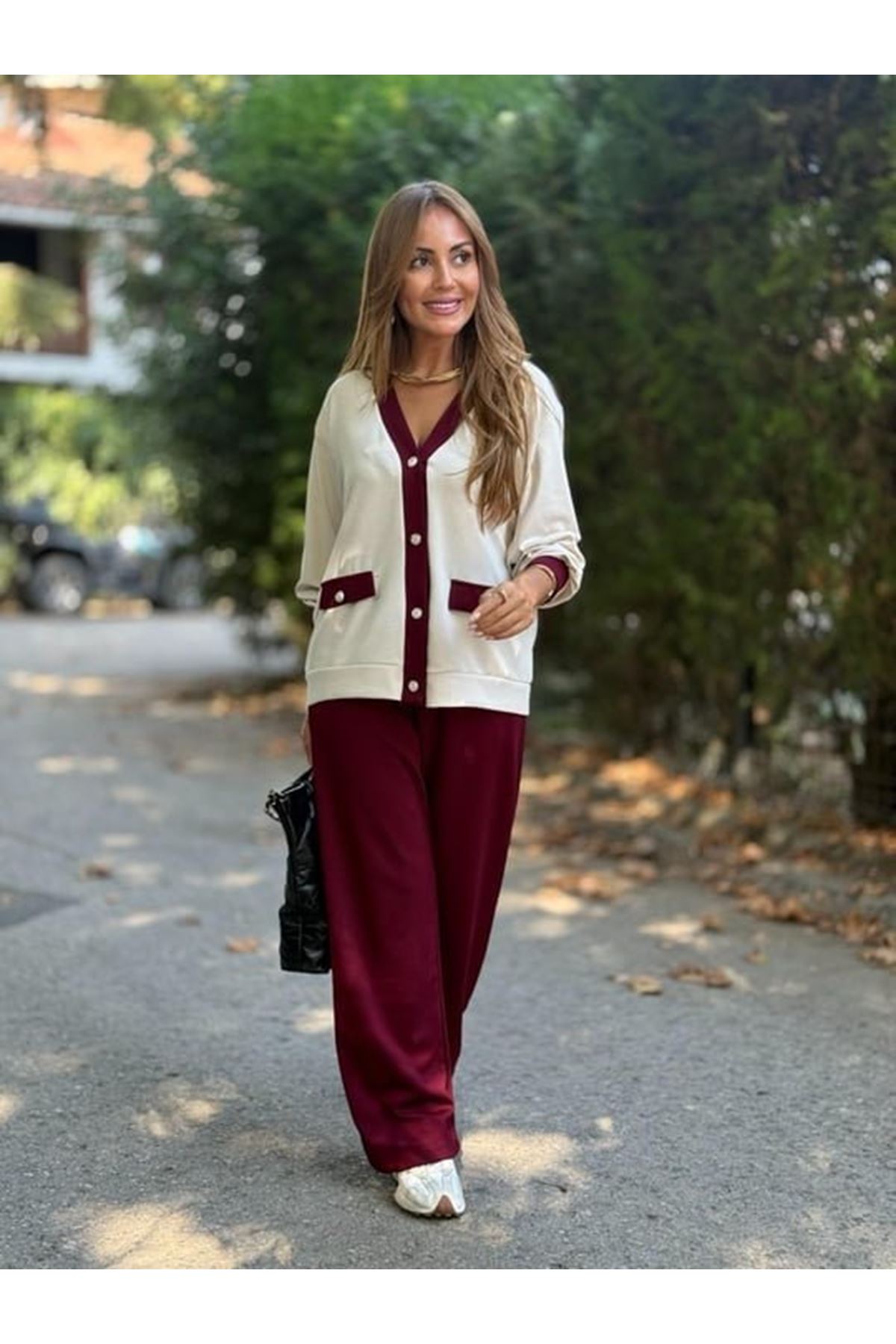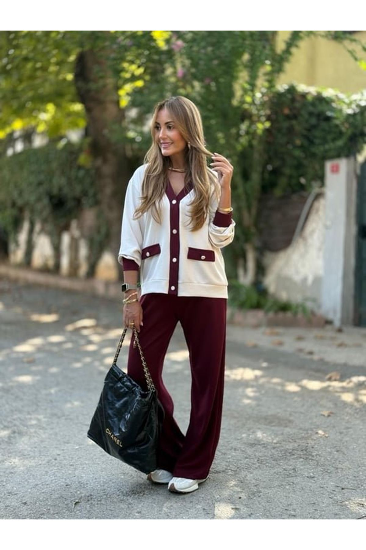 Kadın Uzun Kollu Ribanali Cep Detay Hırka Ve Bol Paça Pantolon Ikili Takım