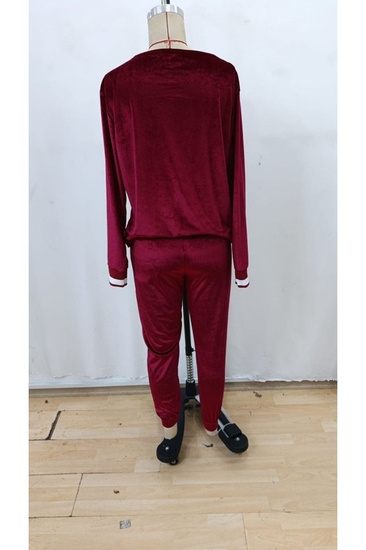Kadın Uzun Kollu V Yaka Kadife Bluz Ve Pantolon Ikili Takım