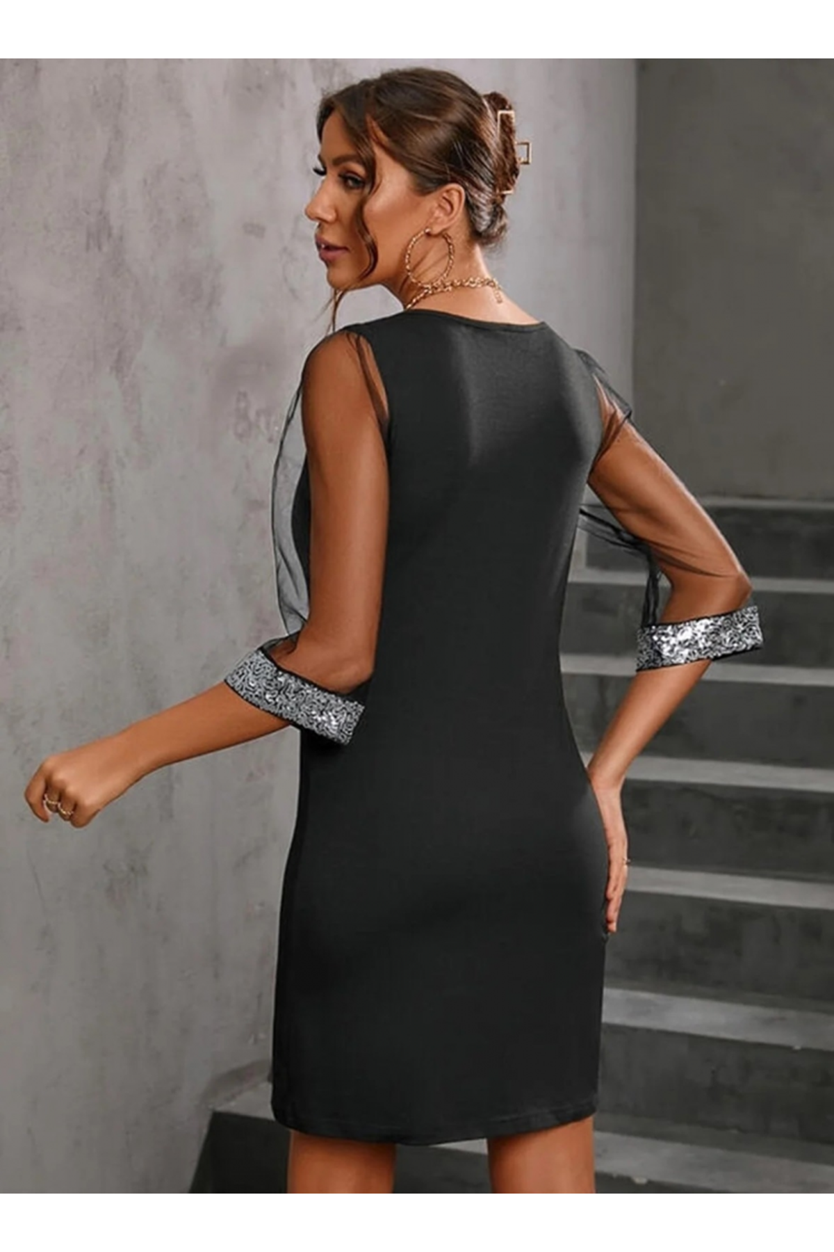 Kadın Uzun Kollu V Yaka Ve Kol Ucu Pul Payet Krep Elbise