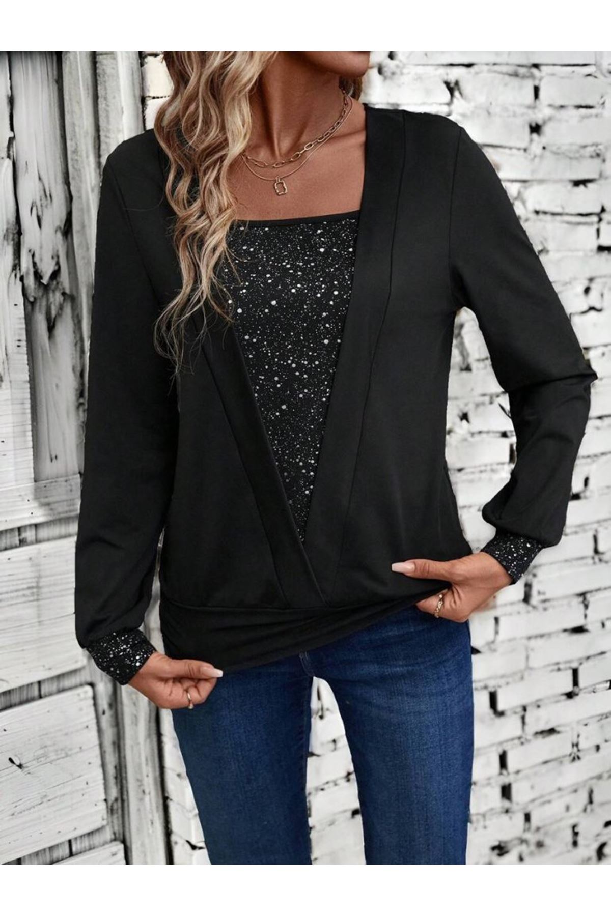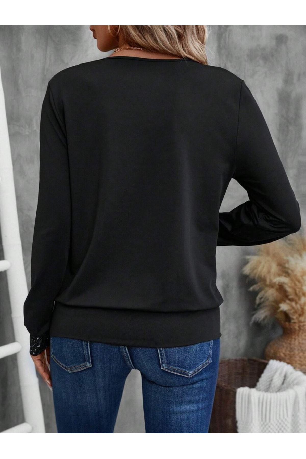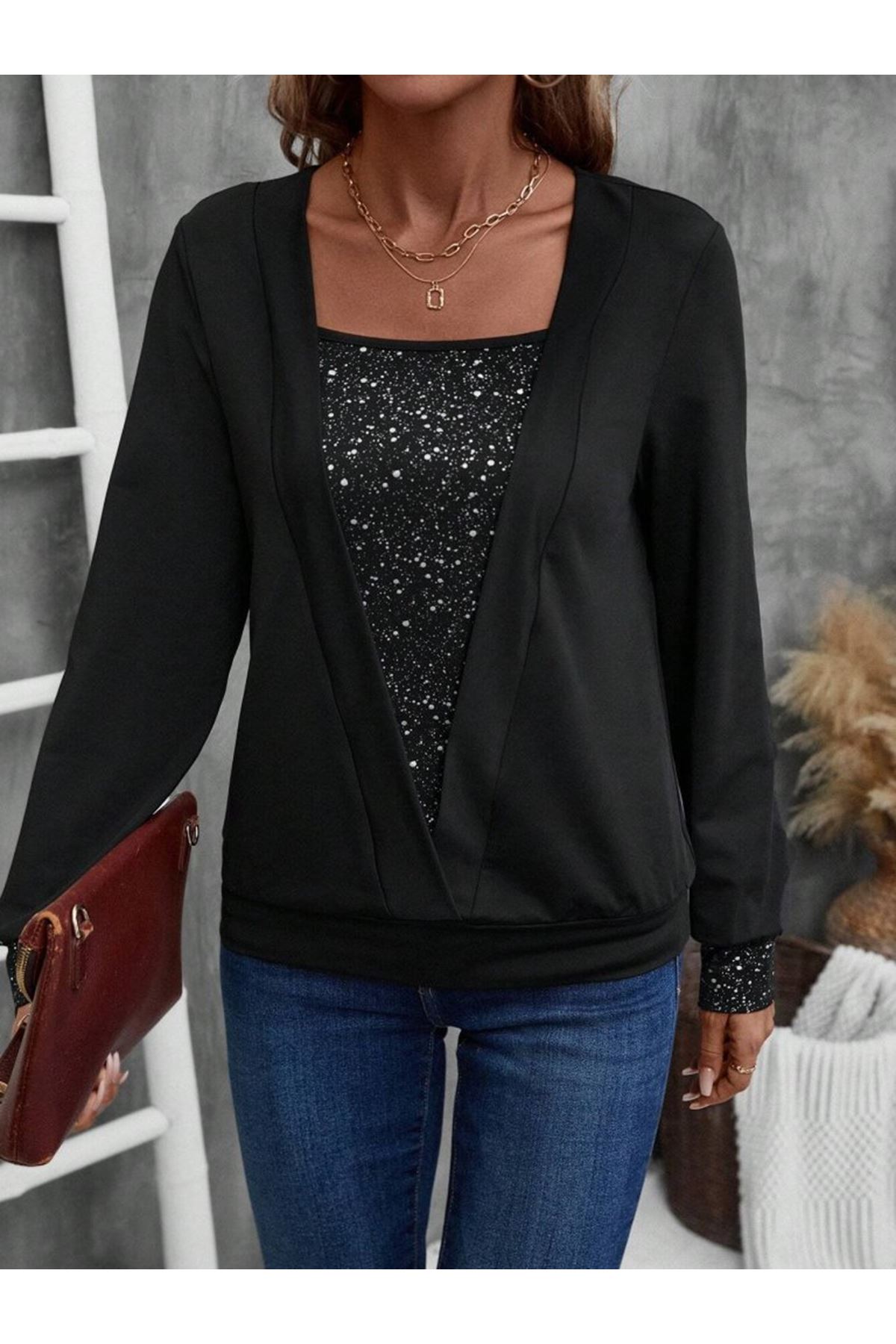 Kadın Uzun Kollu V Yakalı Içi Süprem Desenli Dışı Viskon Bluz