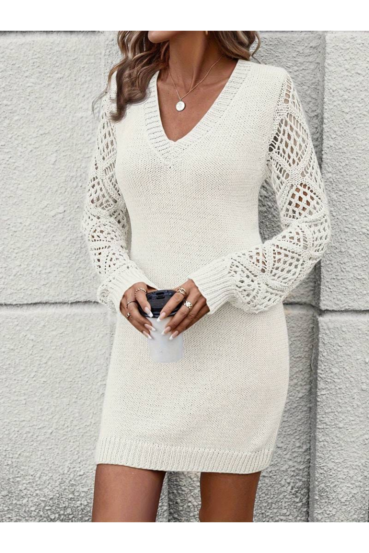 Kadın Uzun Kollu V Yakalı Mini Triko Elbise