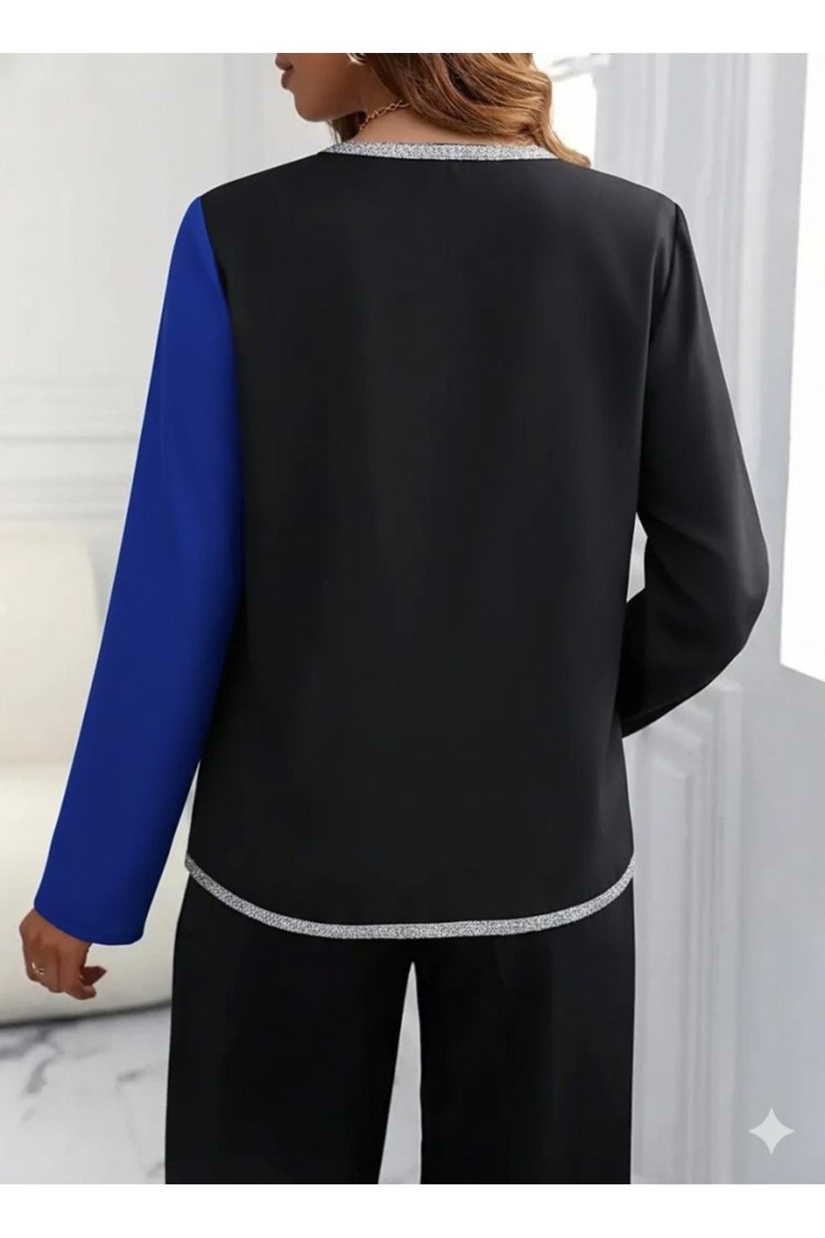 Kadın Uzun Kollu V Yakalı Pul Payet Işlemeli Ithal Krep Bluz