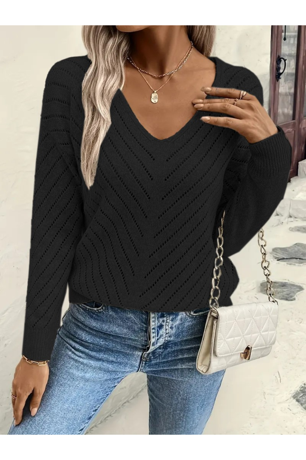 Kadın Uzun Kollu V Yakalı Triko Bluz