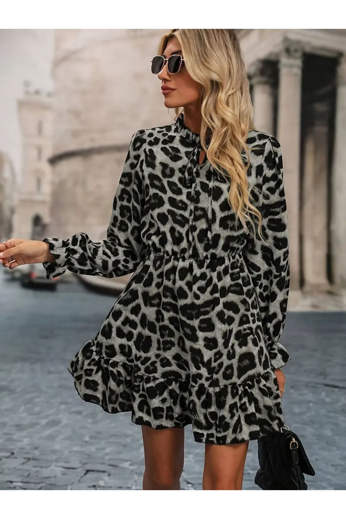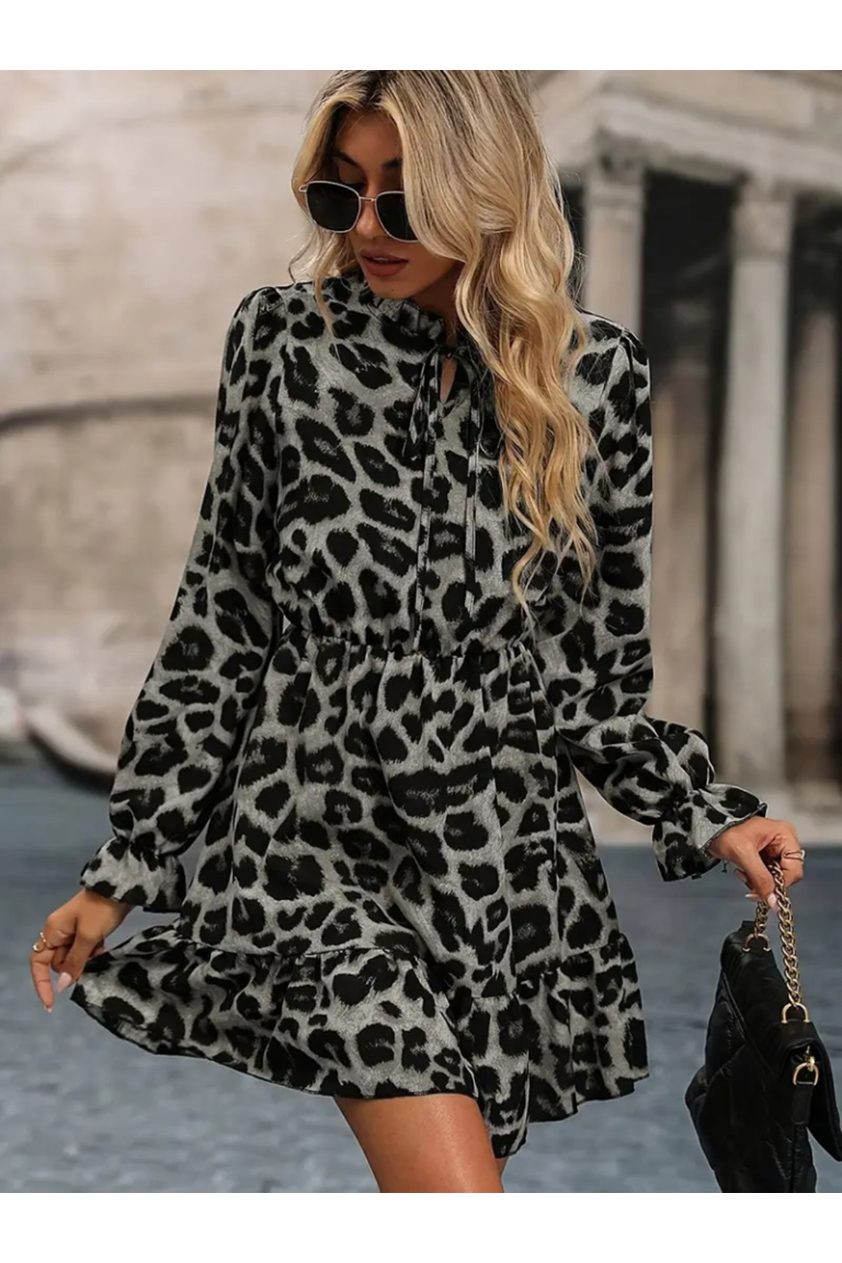 Kadın Uzun Kollu Yakadan Bağlamalı Beli Lastikli şardonlu Dalgıç Elbise