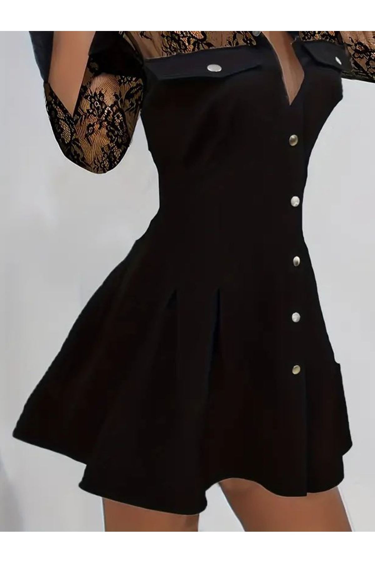 Kadın Uzun Kollu Yakalı önden Düğmeli Cep Detaylı Mini Modal Elbise