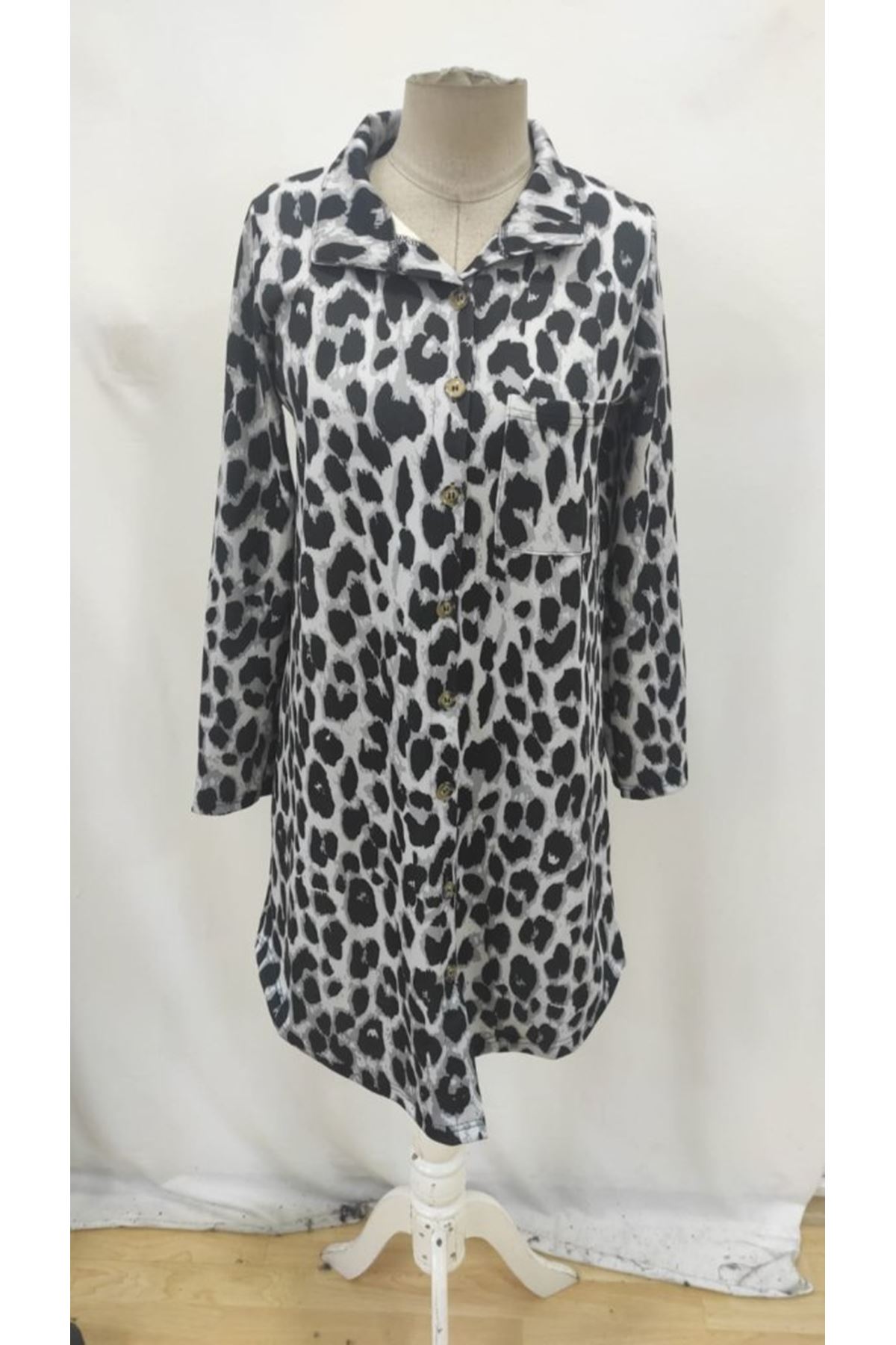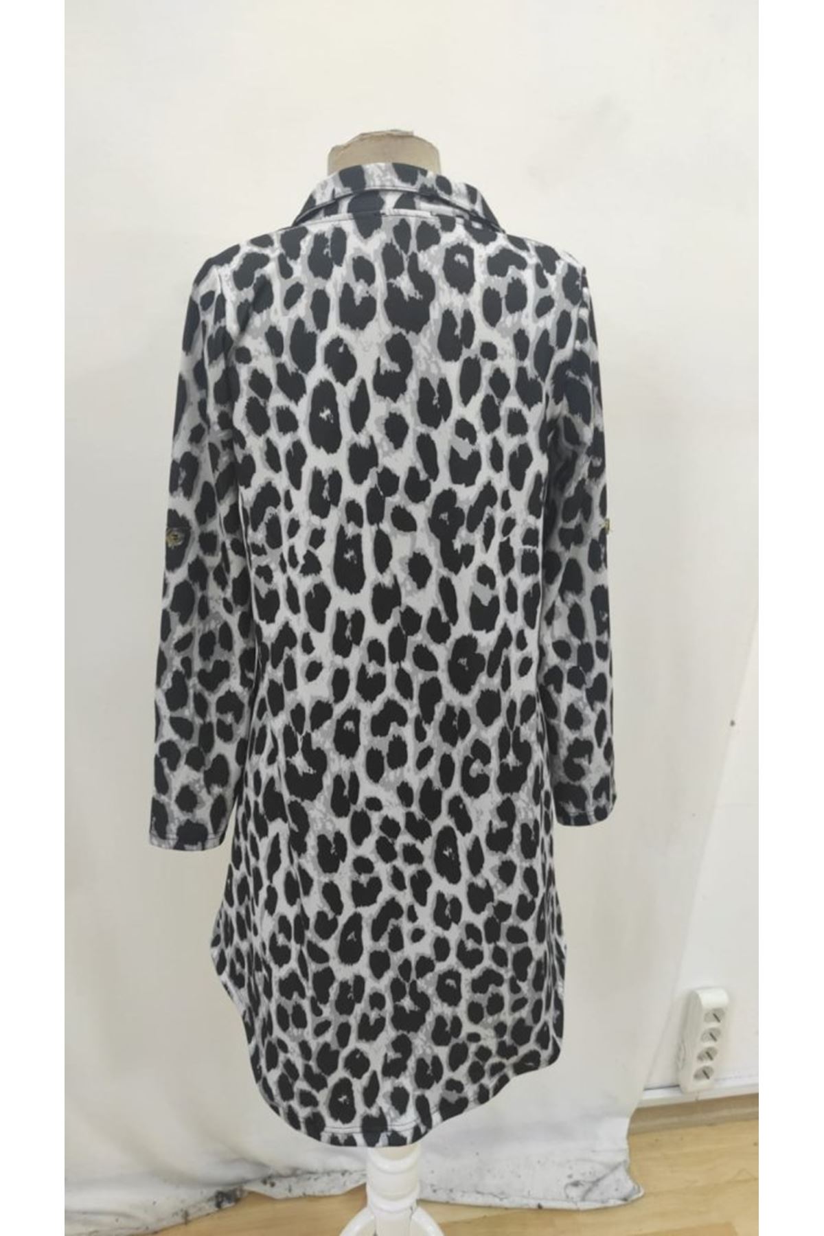 Kadın Uzun Kollu Yakalı önden Düğmeli Leopar Desenli Modal Midi Elbise
