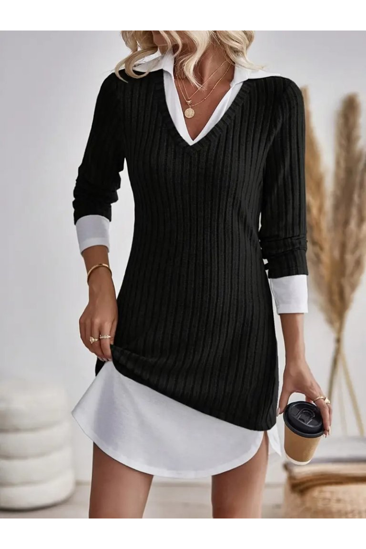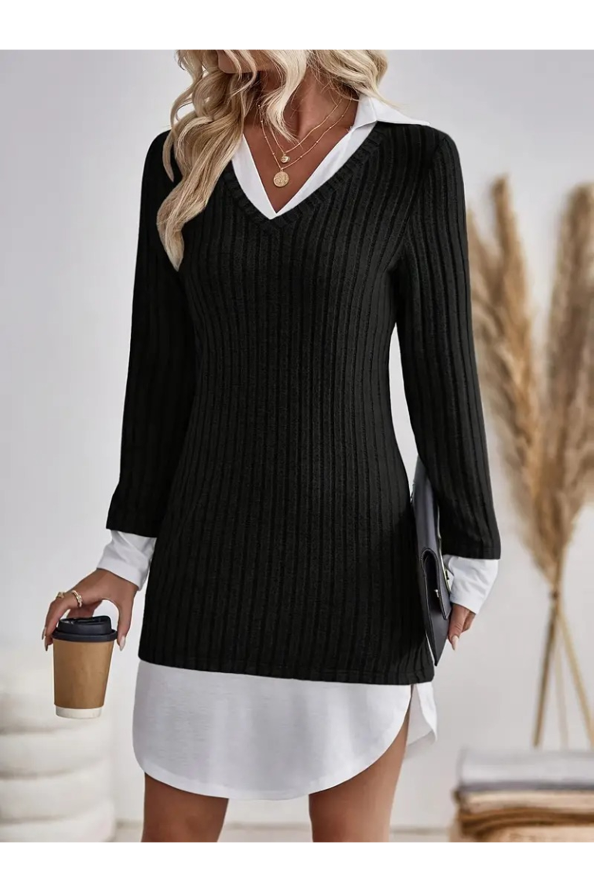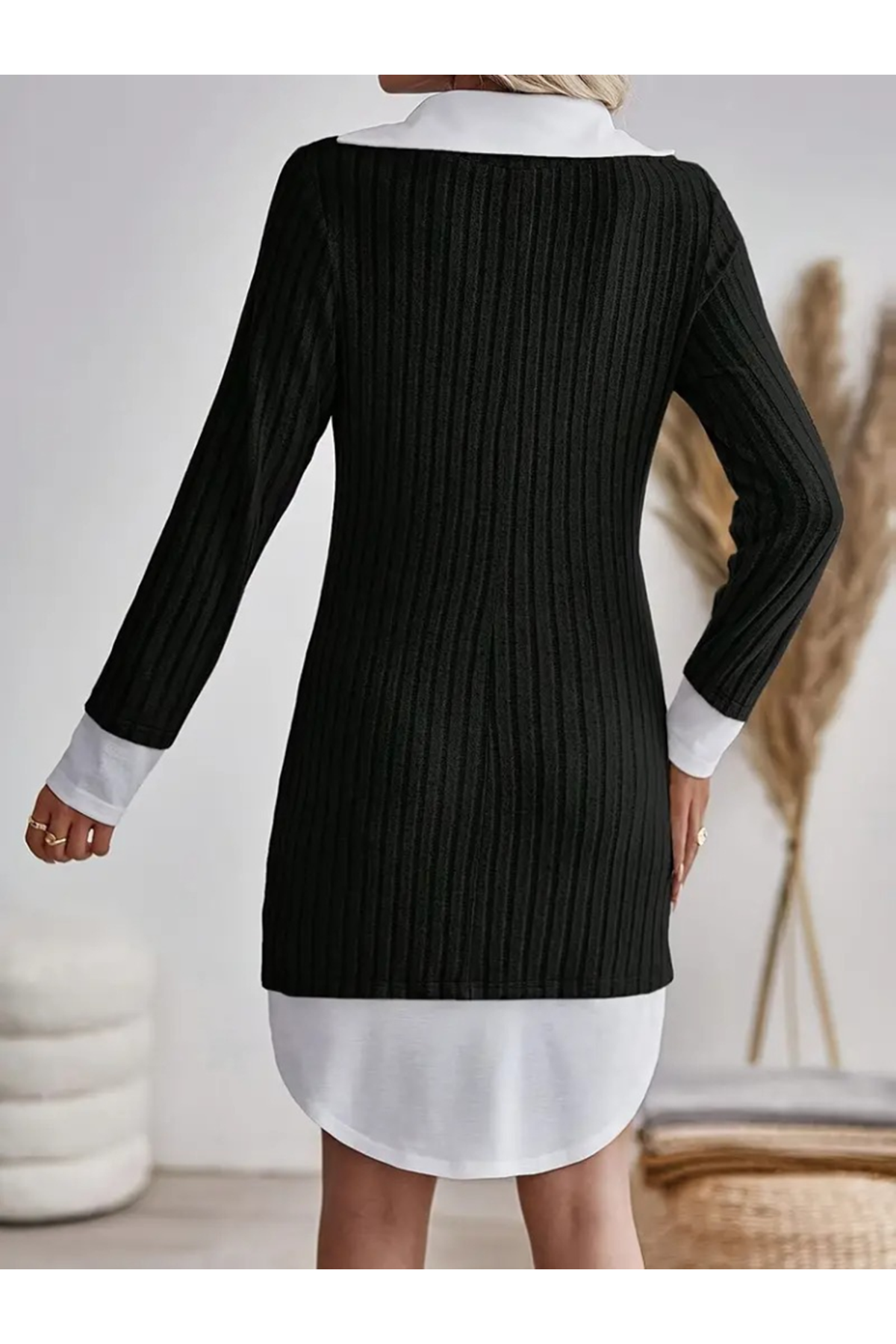 Kadın Uzun Kollu Yakalı şardonlu Kaşkorse Dokuma Detaylı Elbise