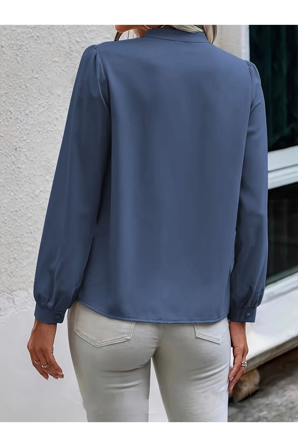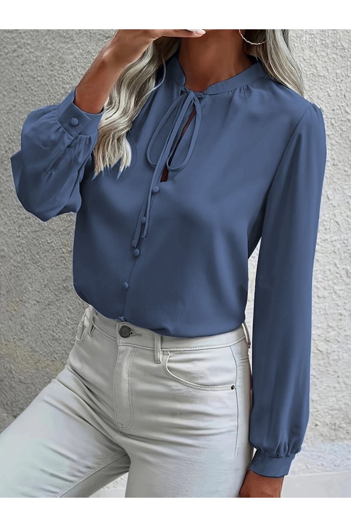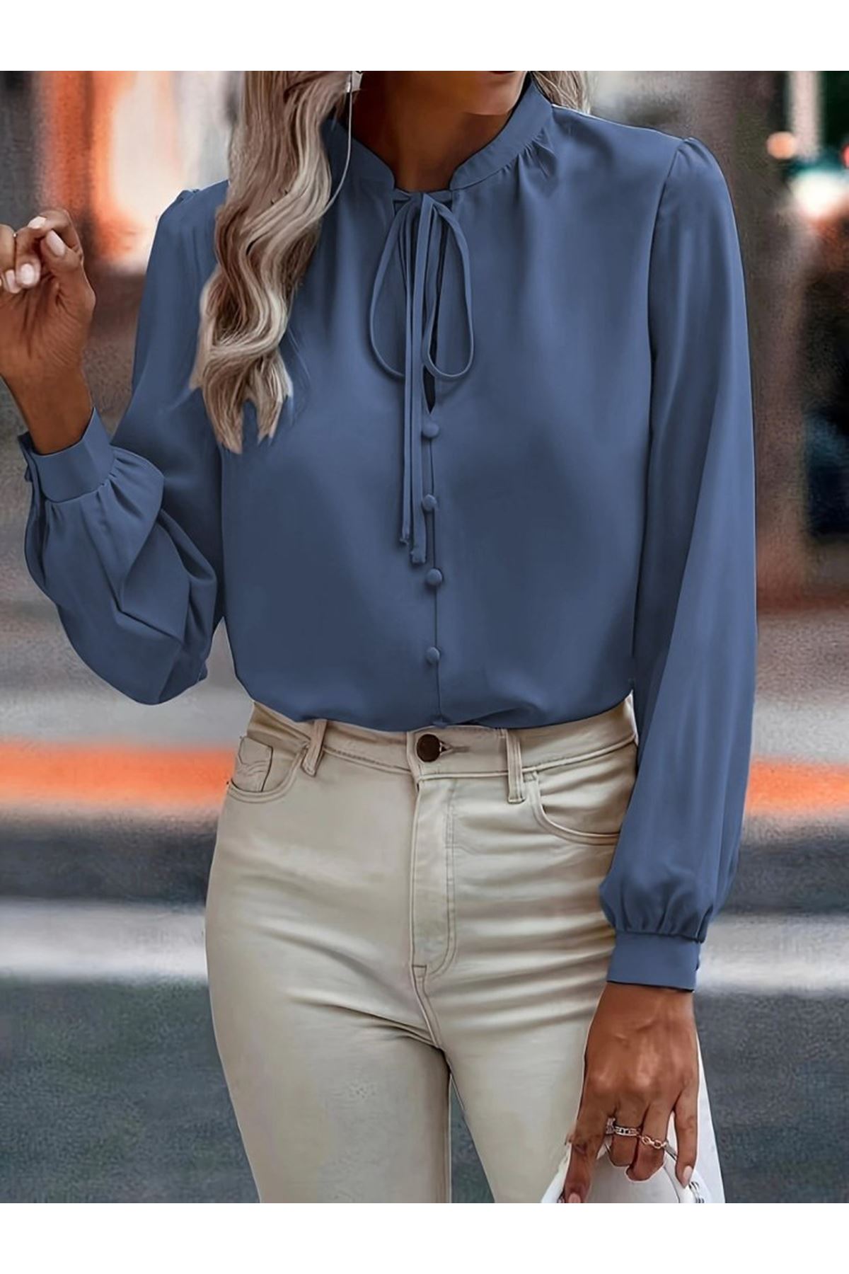 Kadın Uzun Kollu Yakalı Yakadan Bağcıklı Düğmeli Sandy Bluz