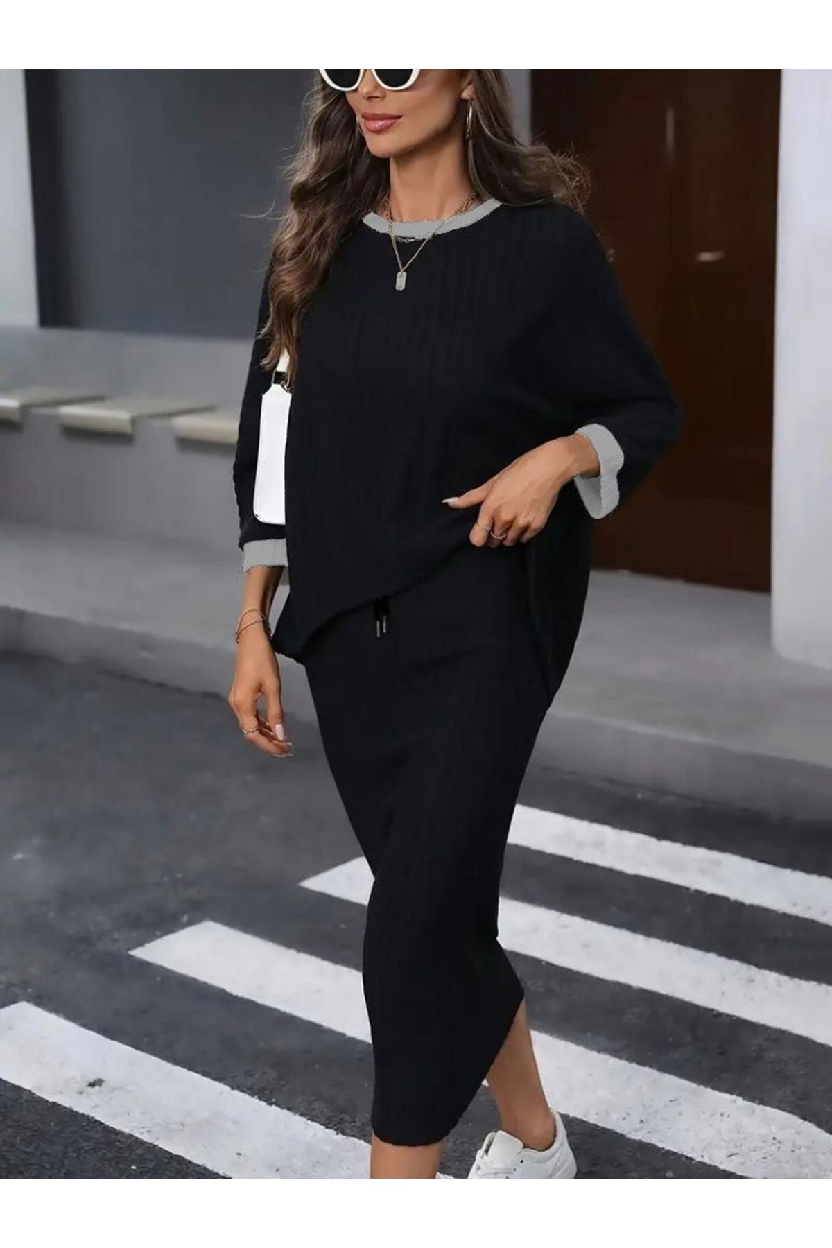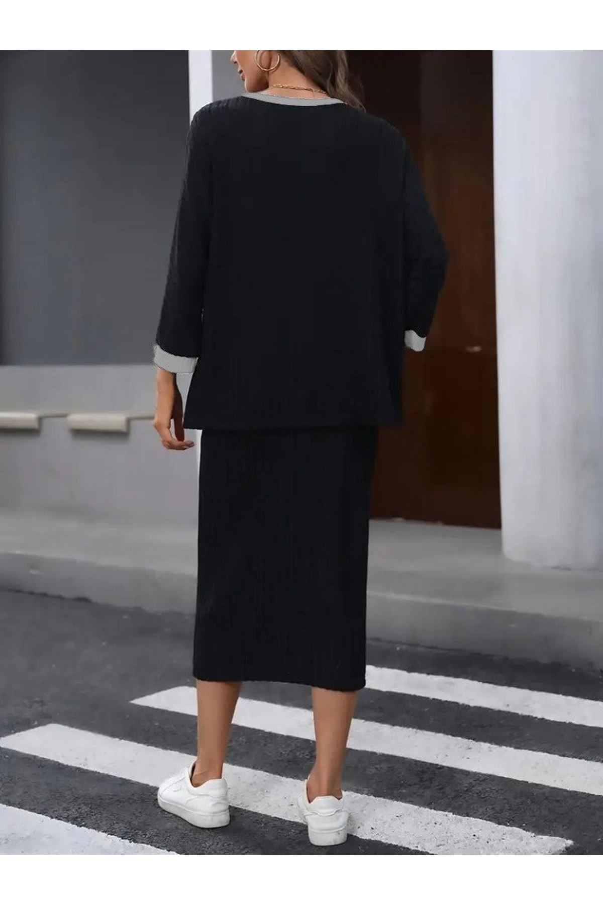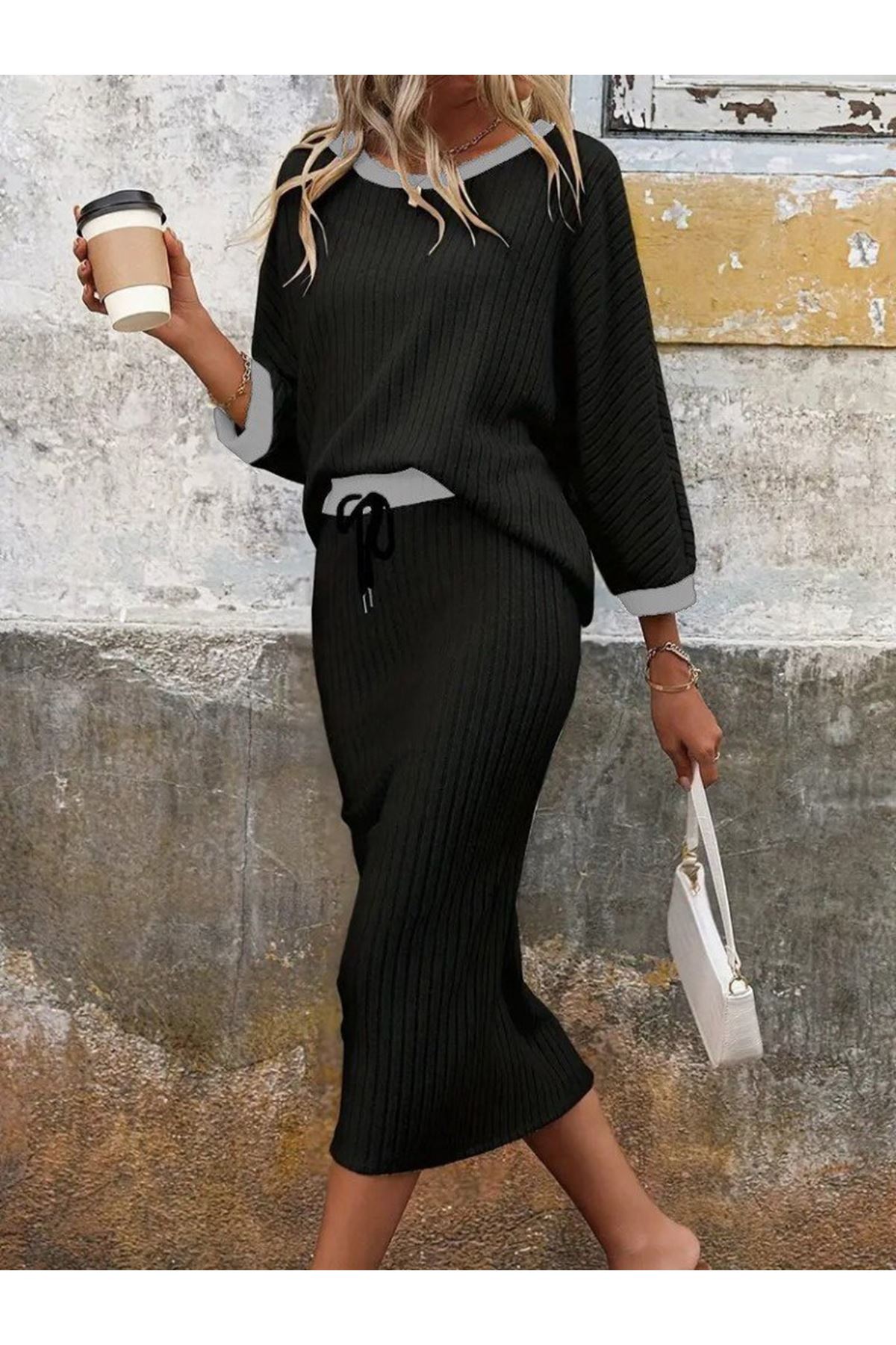 Kadın Uzun Kollu Yakası Açık şardonlu Kaşkorse Bluz Ve Eteği Bağcıklı Ikili Takım