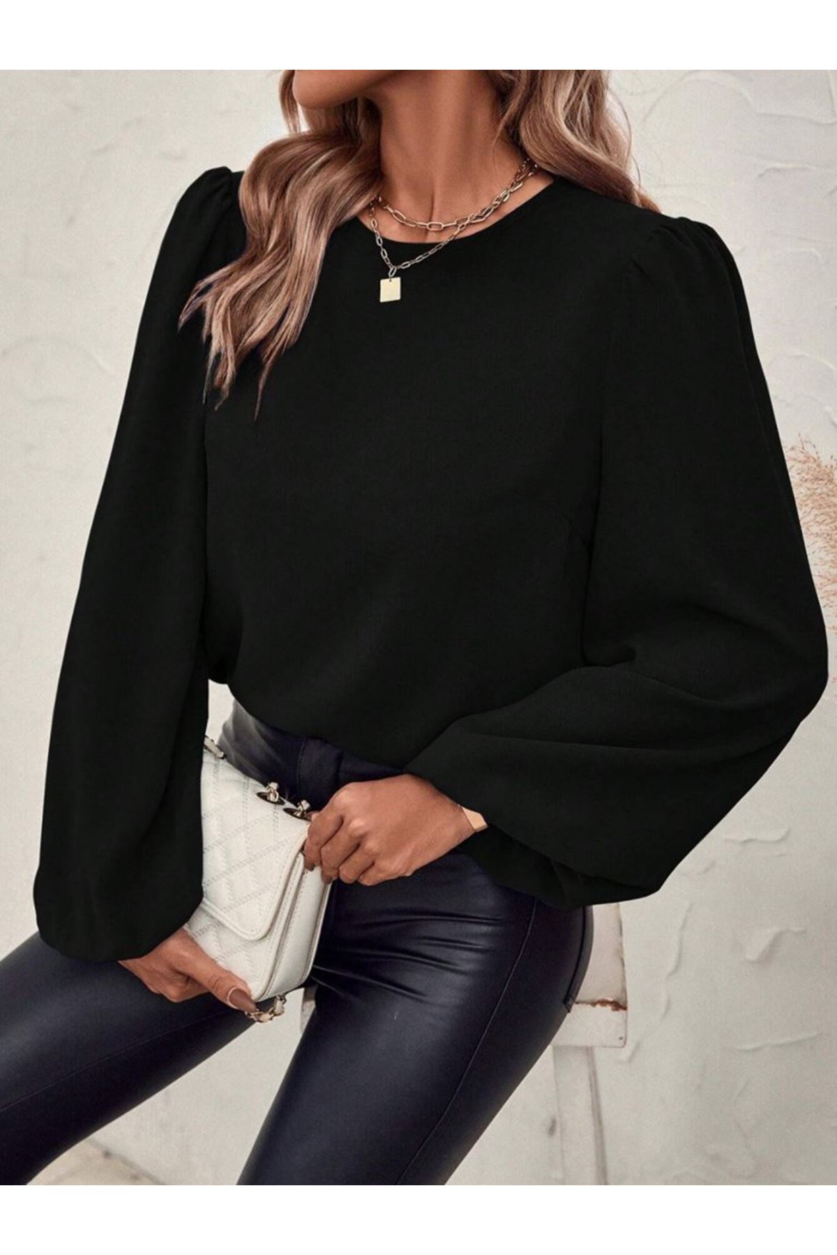 Kadın Uzun Kollu Yuvarlak Yaka Arkadan Bağcıklı Salaş Ithal Krep Bluz